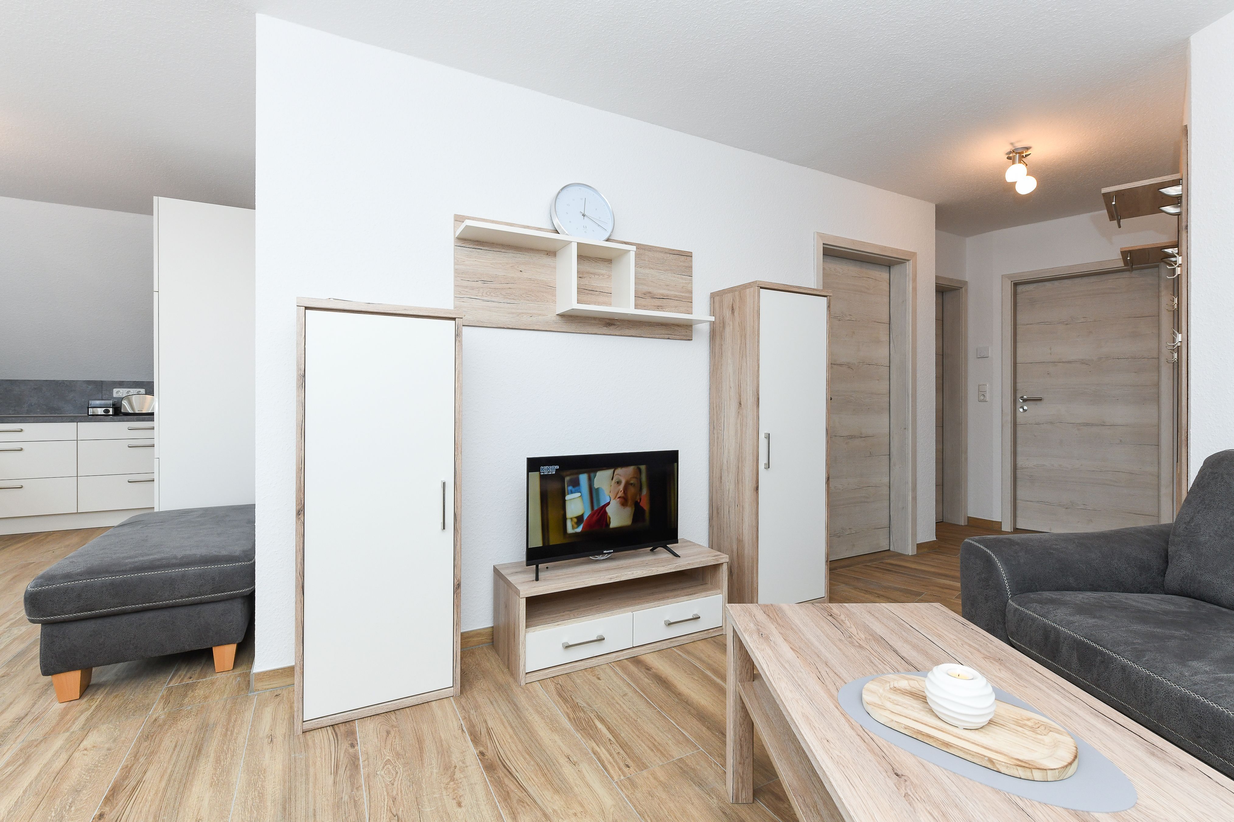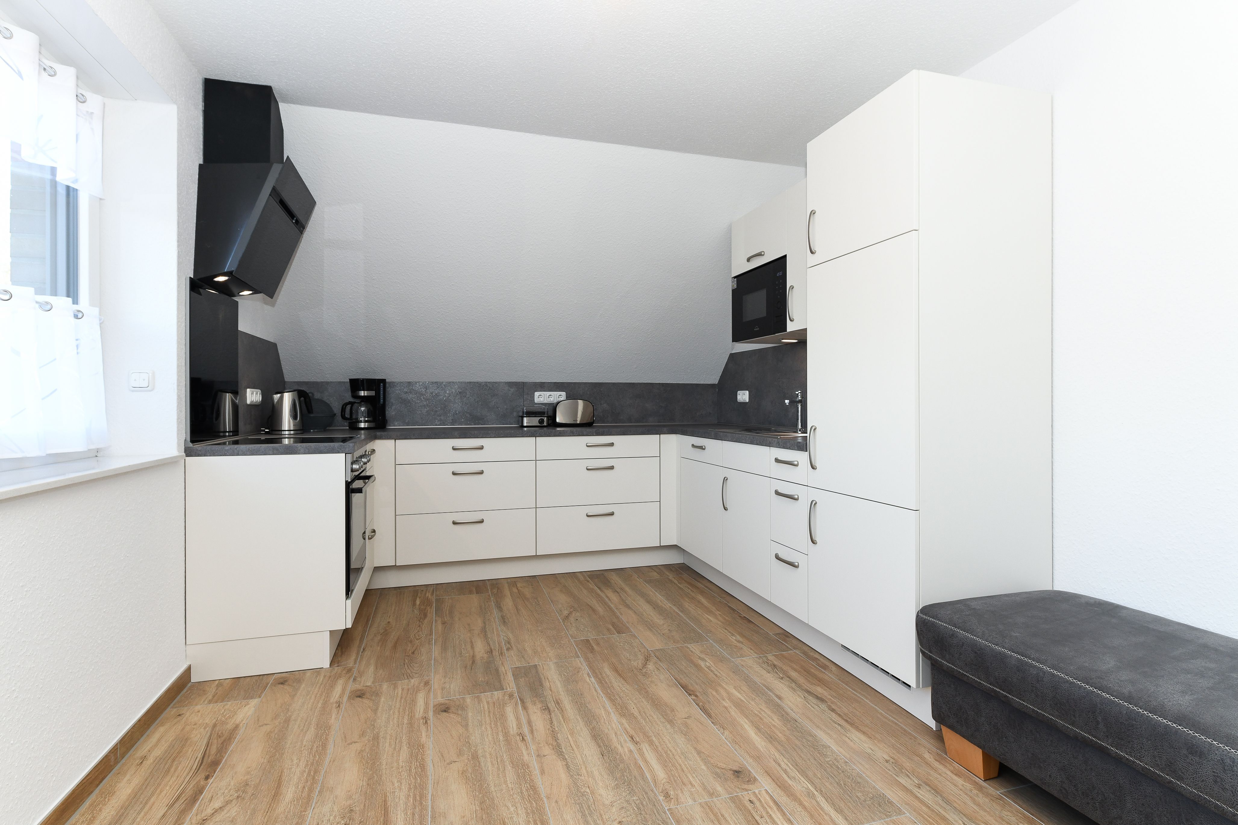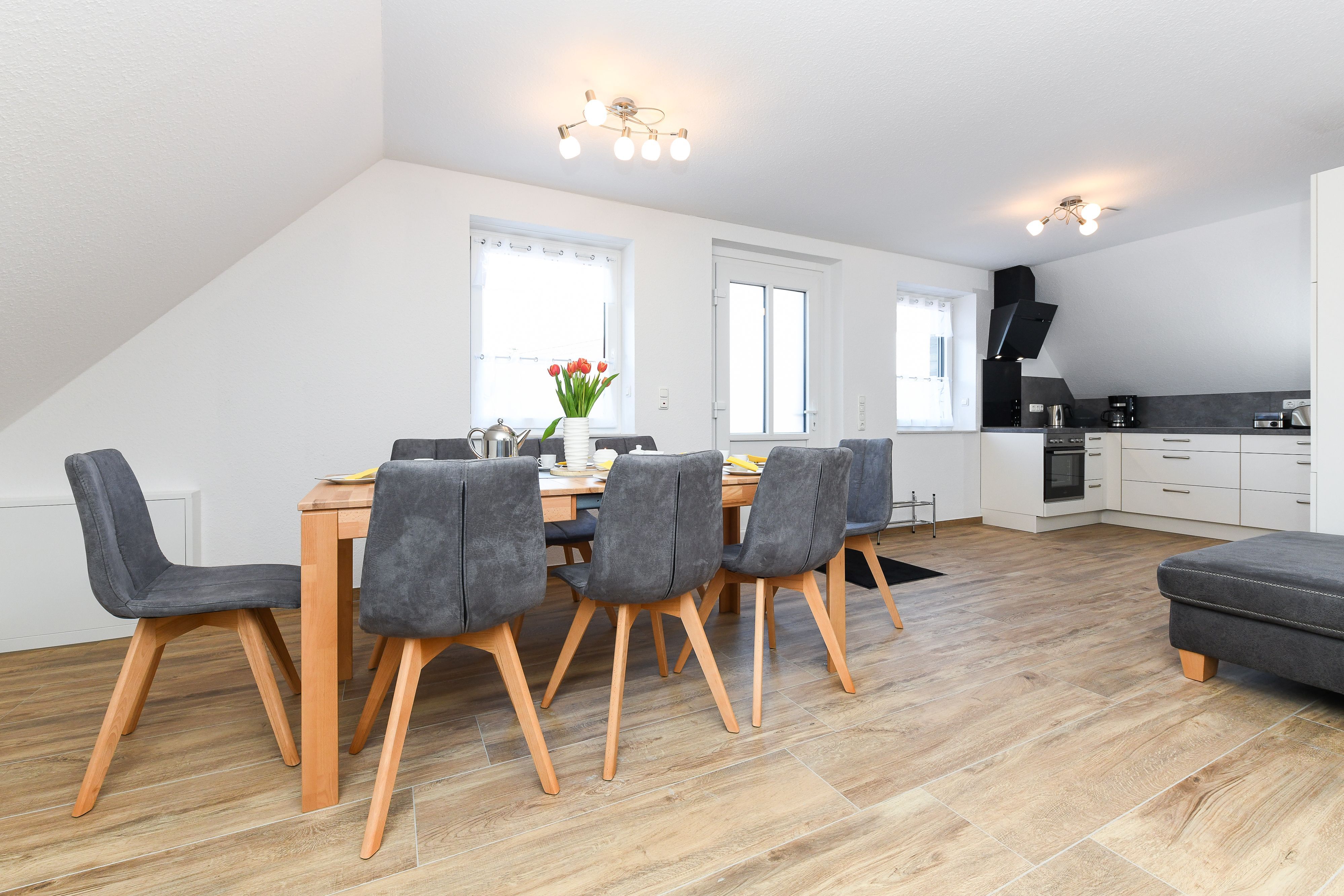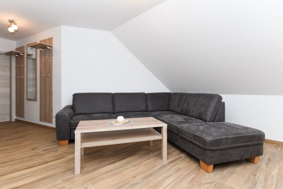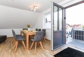 Größe ca. 60 Quadratmeter, Wohnzimmer mit integrierter Küche, Schlafzimmer, zweites separates Schlafzimmer, Badezimmer mit Dusche, Waschtisch und WC, Obergeschoss, Balkon, Hauswirtschaftsraum mit Waschmaschine und Wäschetrockner, Internetzugang über WLAN möglich, optimal für 2 bis 4 Personen und zusätzlich ein Kleinkind.