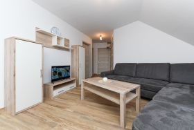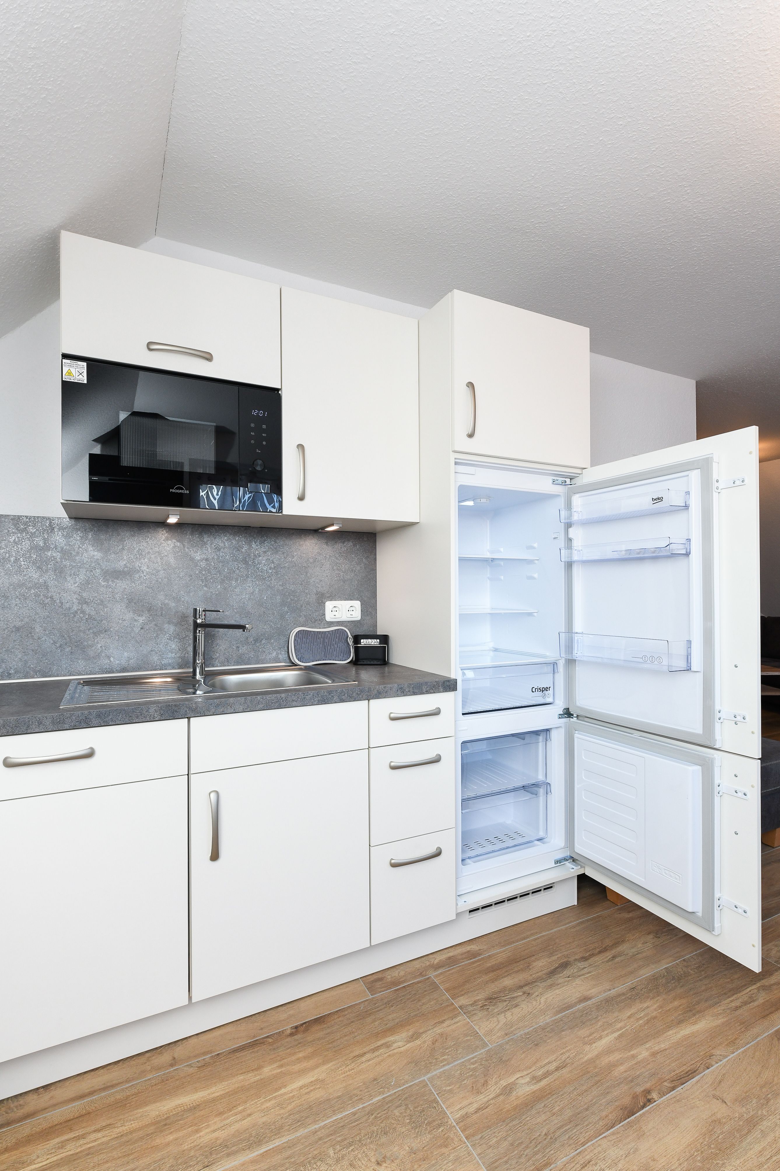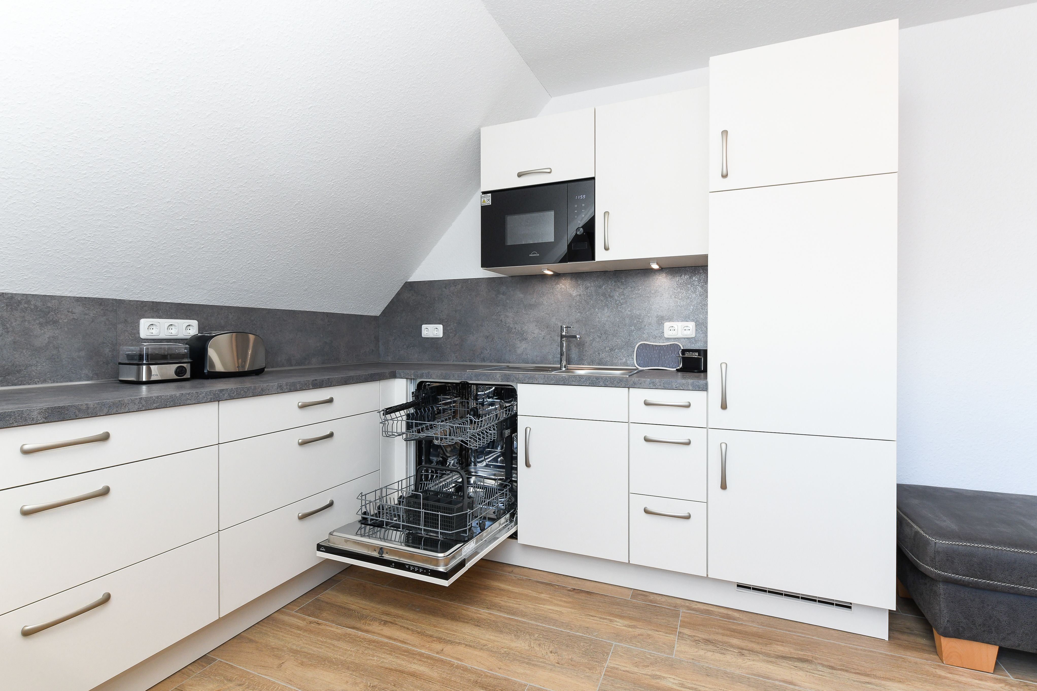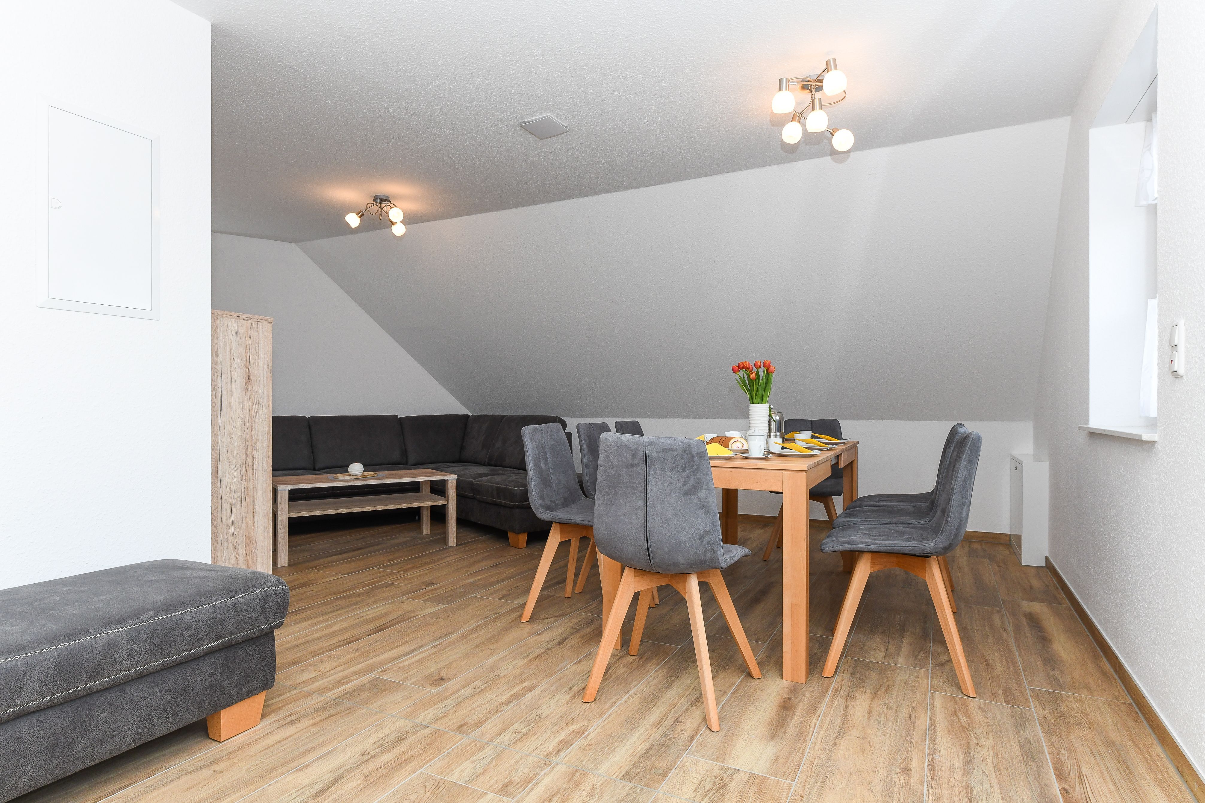 Größe ca. 60 Quadratmeter, Wohnzimmer mit integrierter Küche, Schlafzimmer, zweites separates Schlafzimmer, Badezimmer mit Dusche, Waschtisch und WC, Obergeschoss, Balkon, Hauswirtschaftsraum mit Waschmaschine und Wäschetrockner, Internetzugang über WLAN möglich, optimal für 2 bis 4 Personen und zusätzlich ein Kleinkind.
