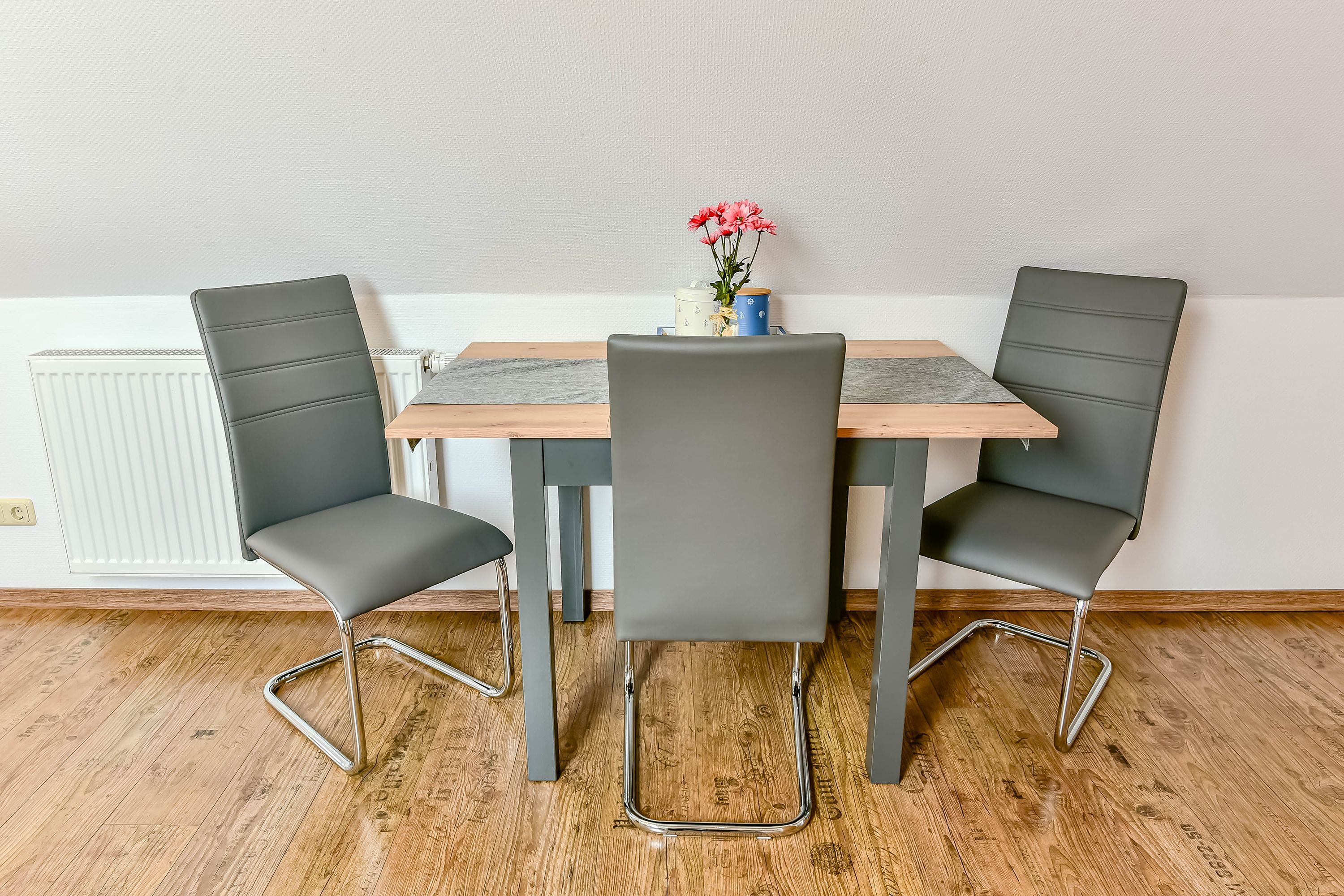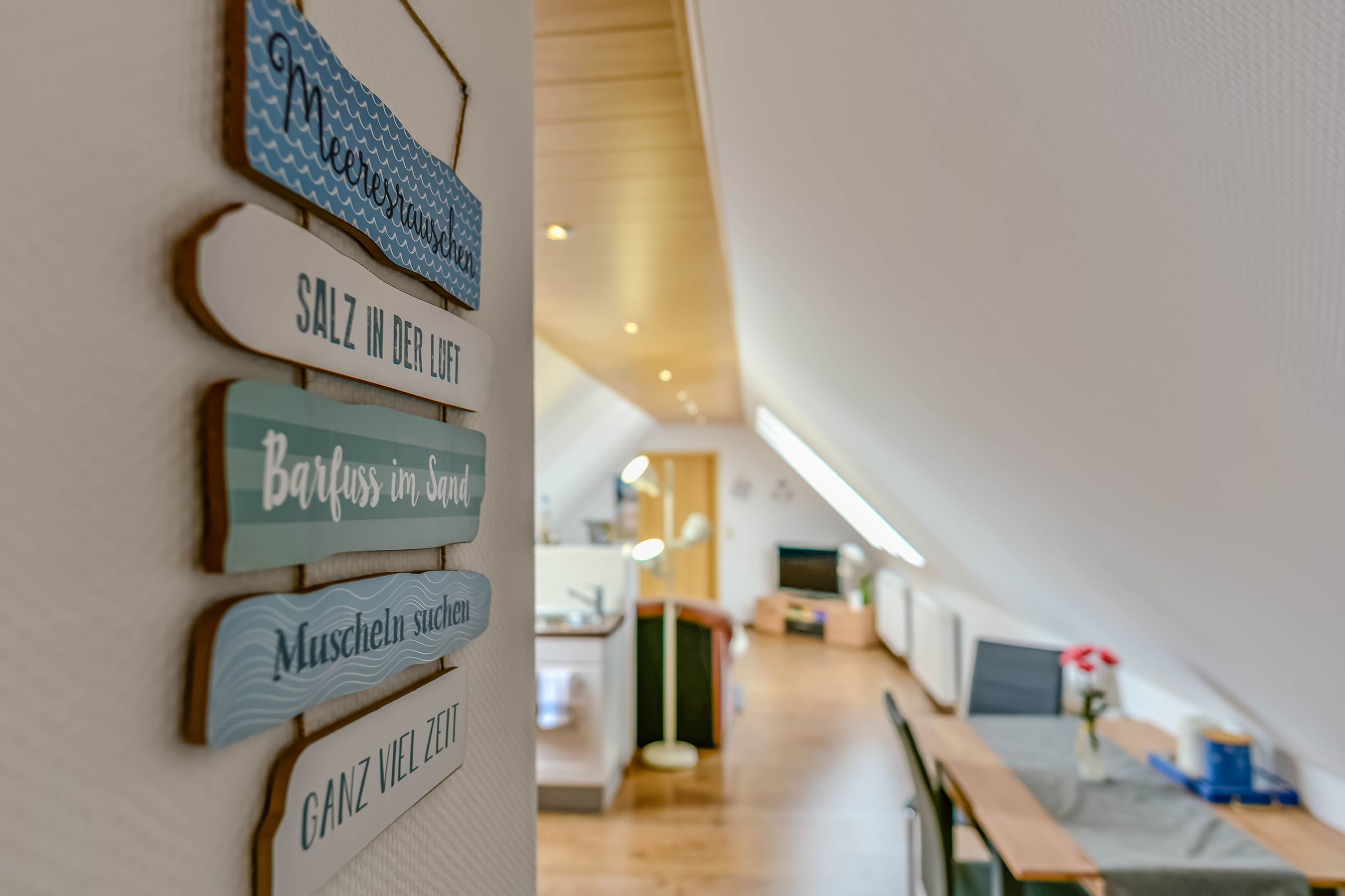 Unsere Ferienwohnung „Meer“ im zweiten Stock bietet auf großzügigen 72 Quadratmetern Platz für bis zu fünf Personen. Sie verfügt über ein helles und geräumiges Wohnzimmer mit einer gemütlichen Küchenzeile, ein separates Schlafzimmer, ein Kinderzimmer und ein Badezimmer.