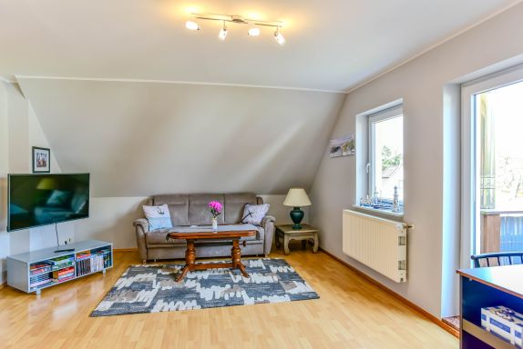 Unsere Ferienwohnung „Wald“ ist ein echtes Zuhause auf Zeit im ersten Stockwerk, perfekt für bis zu vier Personen. Auf 42 Quadratmetern bietet sie ein helles und geräumiges Wohnzimmer, das nahtlos in eine komfortable Küchenzeile übergeht. Vom Balkon aus kannst du entspannt die Sonnenuntergänge genießen. Ein separates, gemütliches Schlafzimmer und ein Badezimmer runden das Angebot ab.