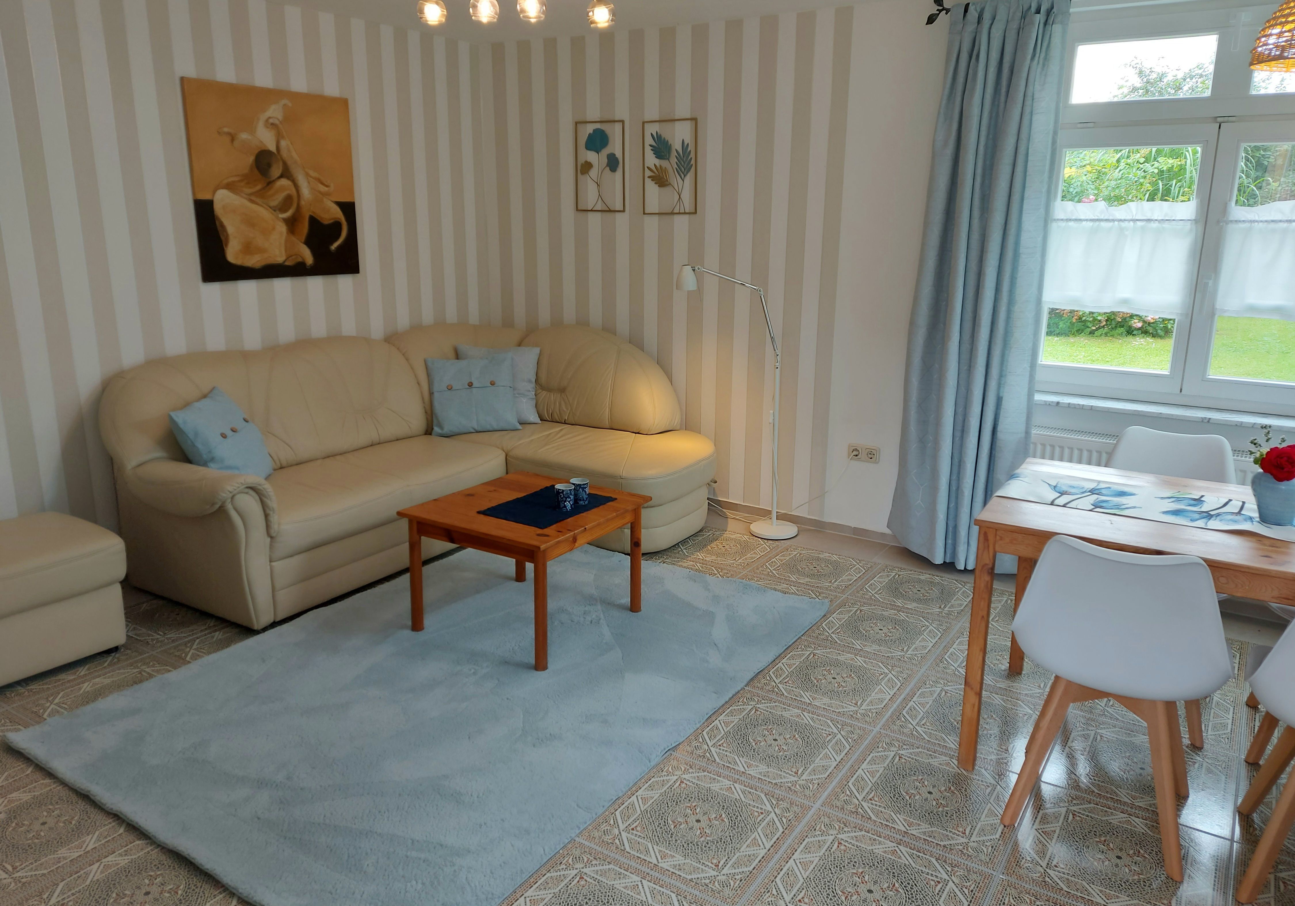 Ein Grill, den Sie im Garten an einem der vorhandenen Sitzecken platzieren können wird Ihnen Zur Verfügung gestellt. Ein kostenloser Parkplatz am Haus ist vorhanden. W-Lan vorhanden. Haustiere auf Anfrage.