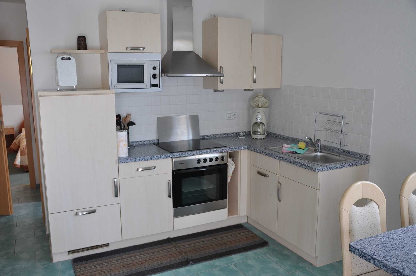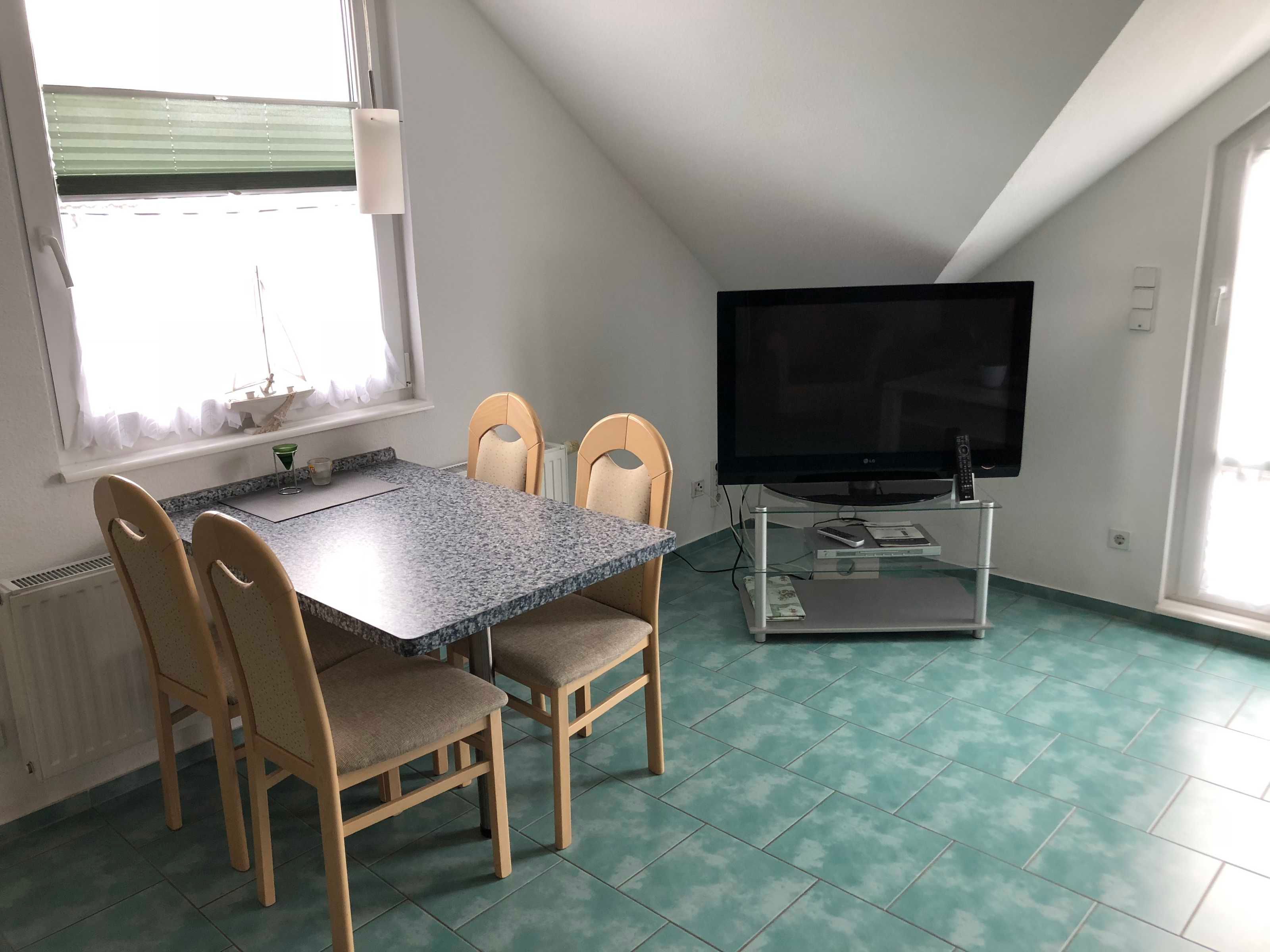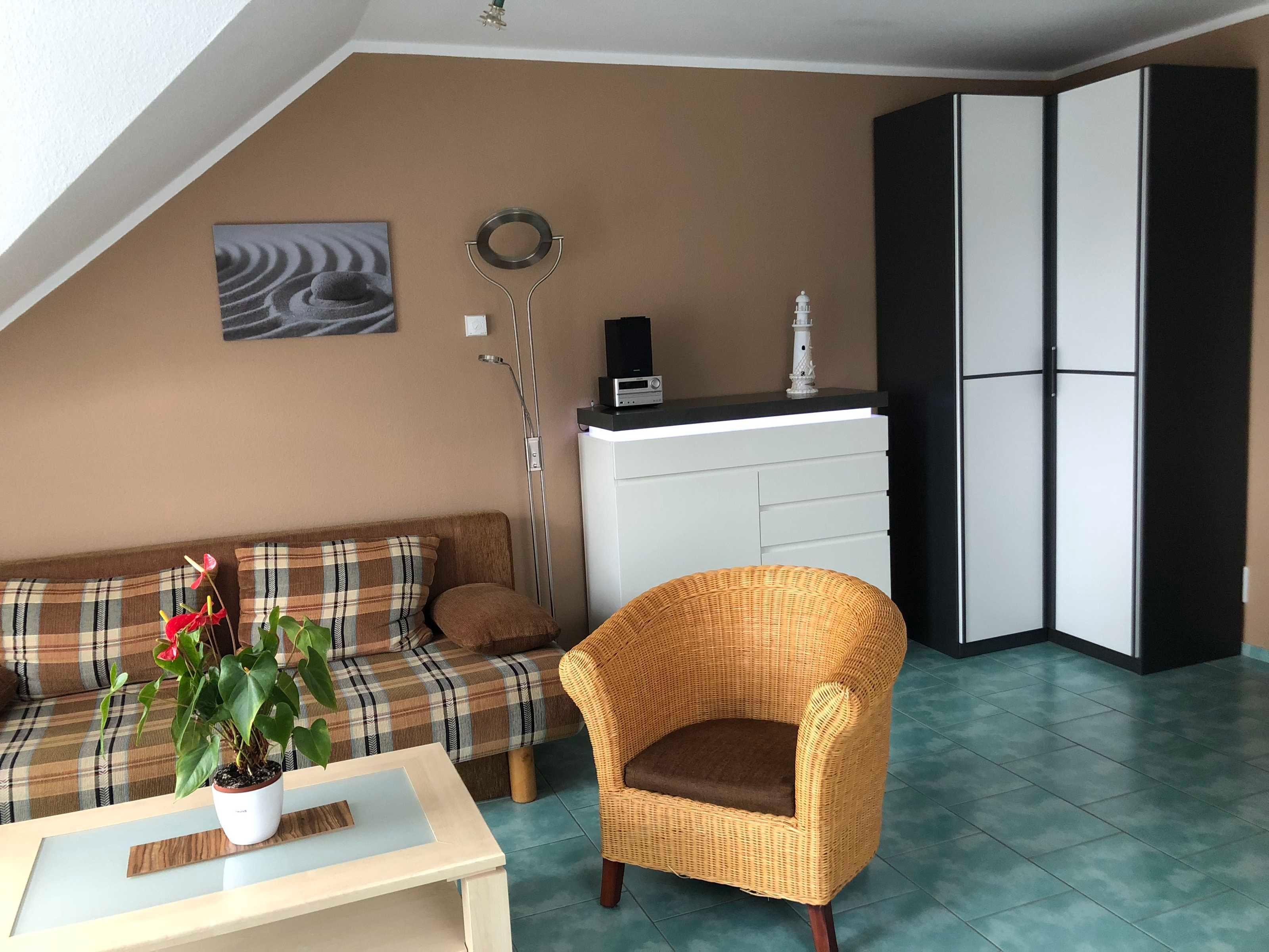Die helle 2-Raum-Wohnung GREEN ist im Obergeschoss unseres Ferienhauses gelegen und bietet Ihnen mit 47 m² die perfekte Unterkunft für Ihren Urlaub am Meer. Hier finden Sie alles, was Sie für Ihren erholsamen Urlaub benötigen. Die Räumlichkeiten teilen sich in ein Schlafzimmer mit Doppelbett, ein Wohnzimmer mit offener, komplett ausgestatteter Einbauküche und Doppelbettcouch (Übernachtungsmöglichkeit für 2 weitere Personen) sowie ein Tageslichtbad mit Dusche und WC auf. Bestenfalls wohnen Sie hier zu weit, aber auch 4 Personen sind möglich.