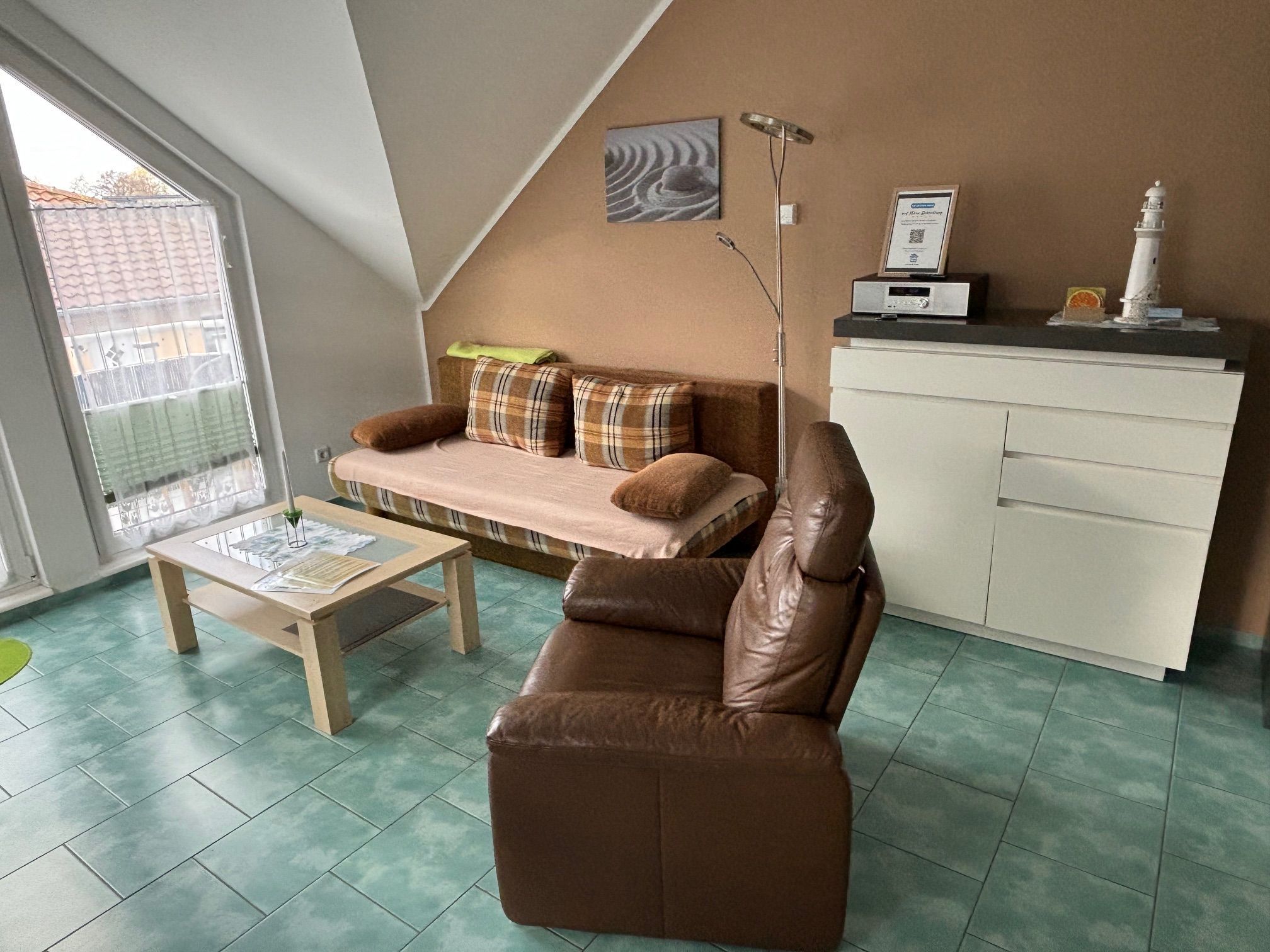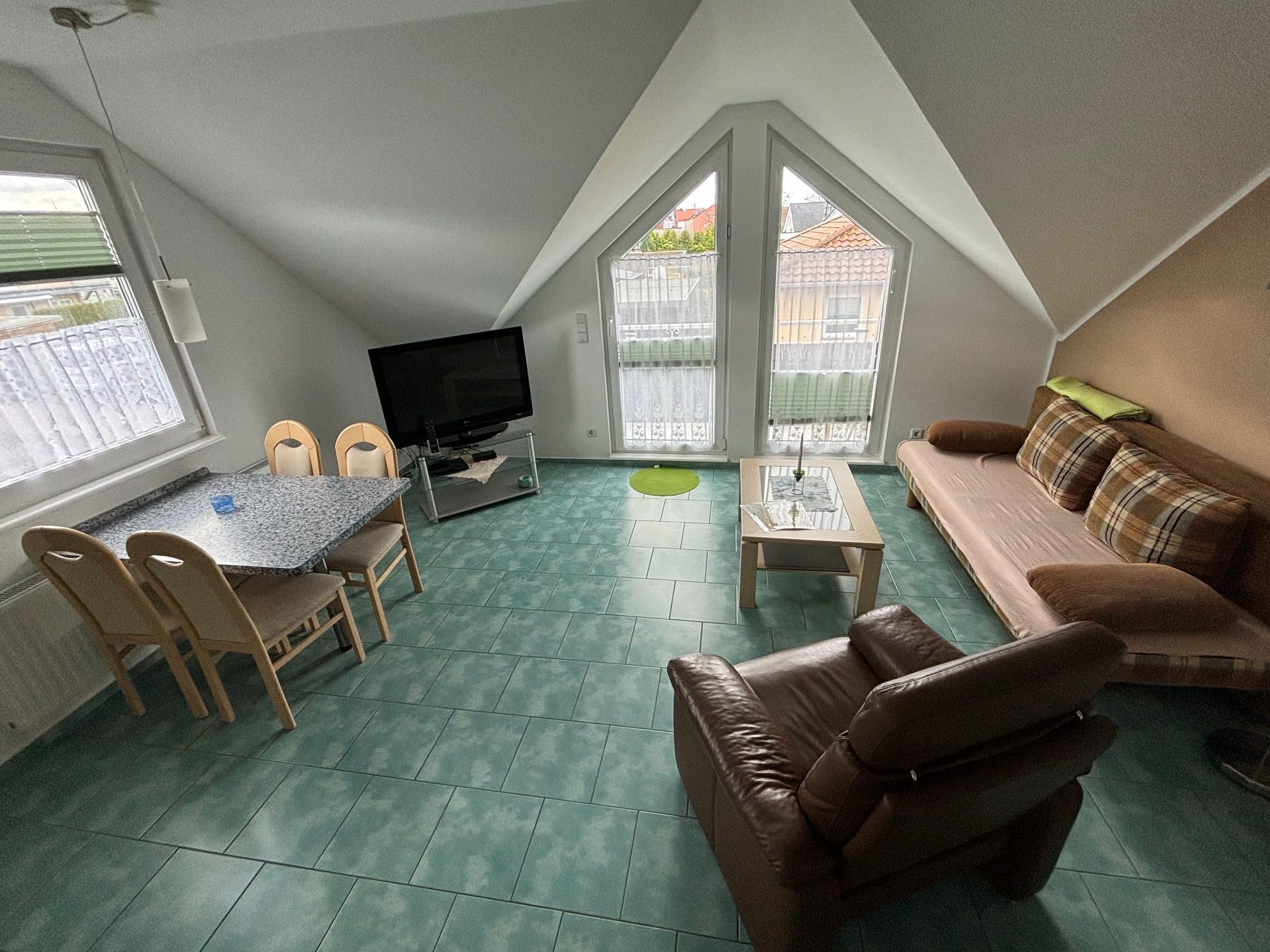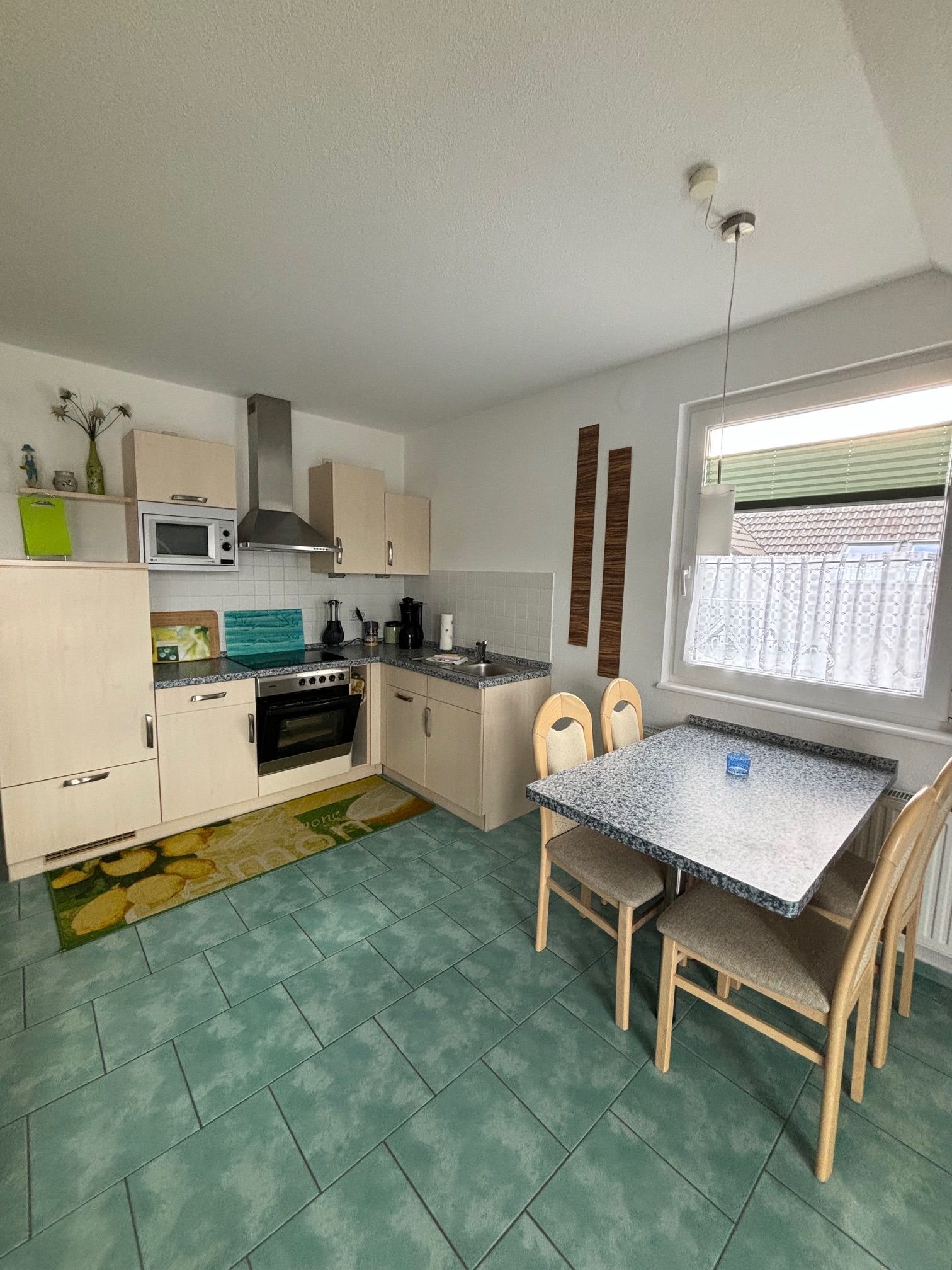 Die helle 2-Raum-Wohnung GREEN ist im Obergeschoss unseres Ferienhauses gelegen und bietet Ihnen mit 47 m² die perfekte Unterkunft für Ihren Urlaub am Meer. Hier finden Sie alles, was Sie für Ihren erholsamen Urlaub benötigen. Die Räumlichkeiten teilen sich in ein Schlafzimmer mit Doppelbett, ein Wohnzimmer mit offener, komplett ausgestatteter Einbauküche und Doppelbettcouch (Übernachtungsmöglichkeit für 2 weitere Personen) sowie ein Tageslichtbad mit Dusche und WC auf. Bestenfalls wohnen Sie hier zu weit, aber auch 4 Personen sind möglich.