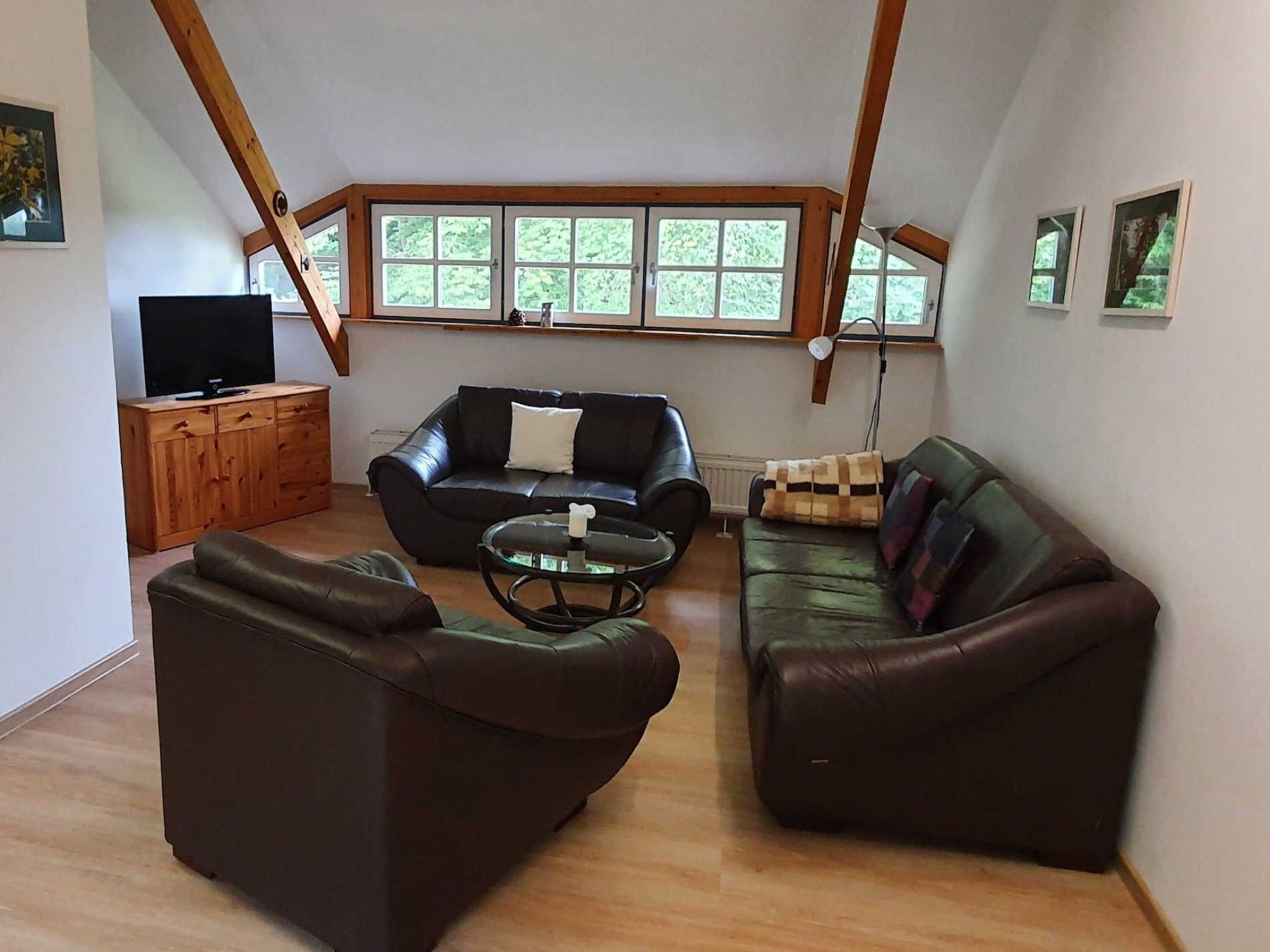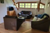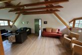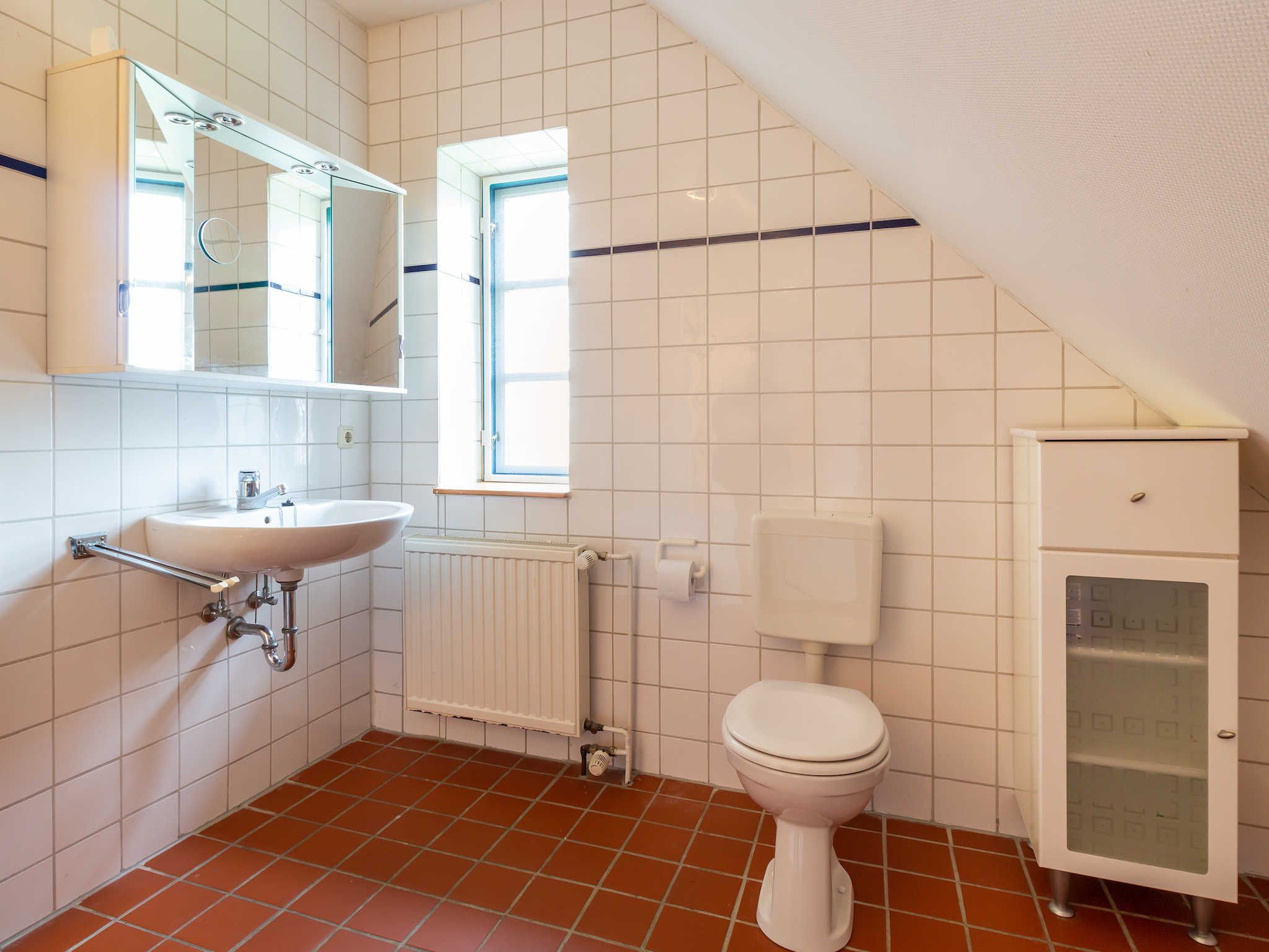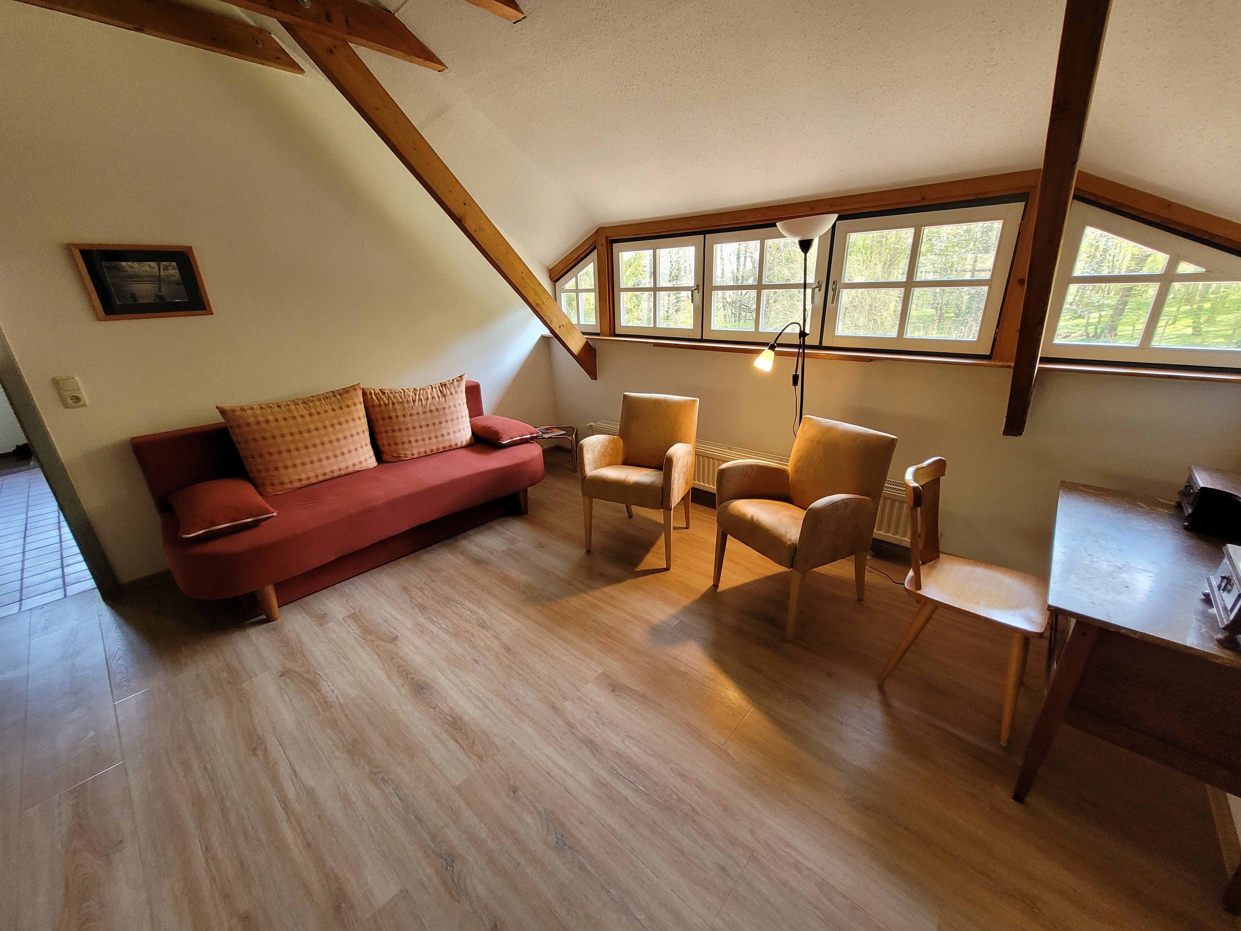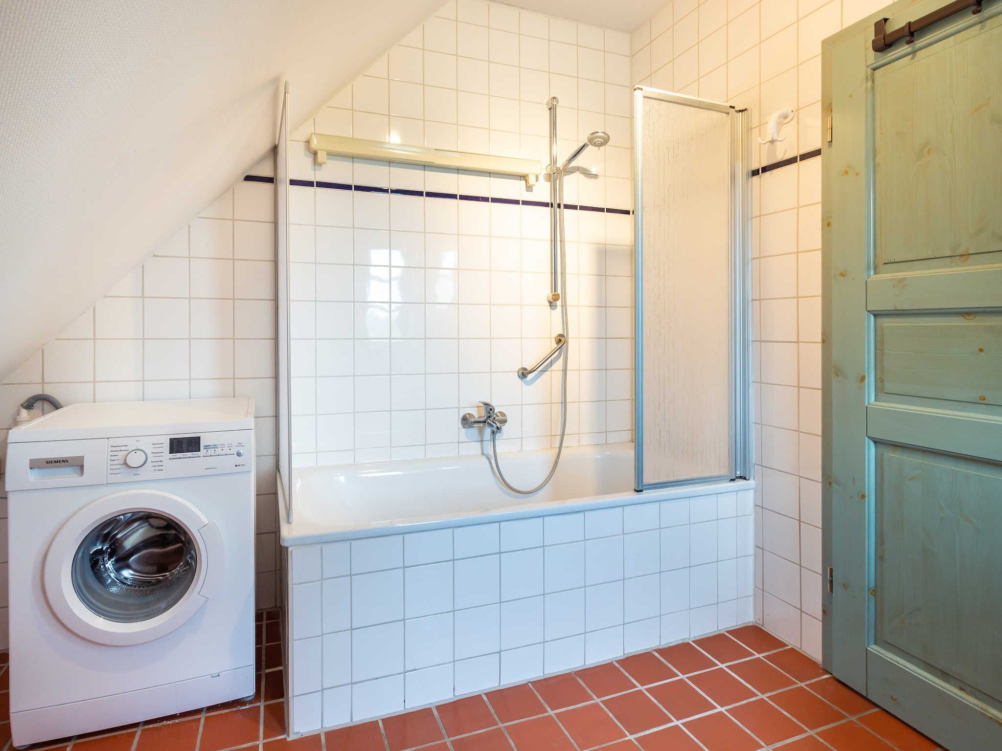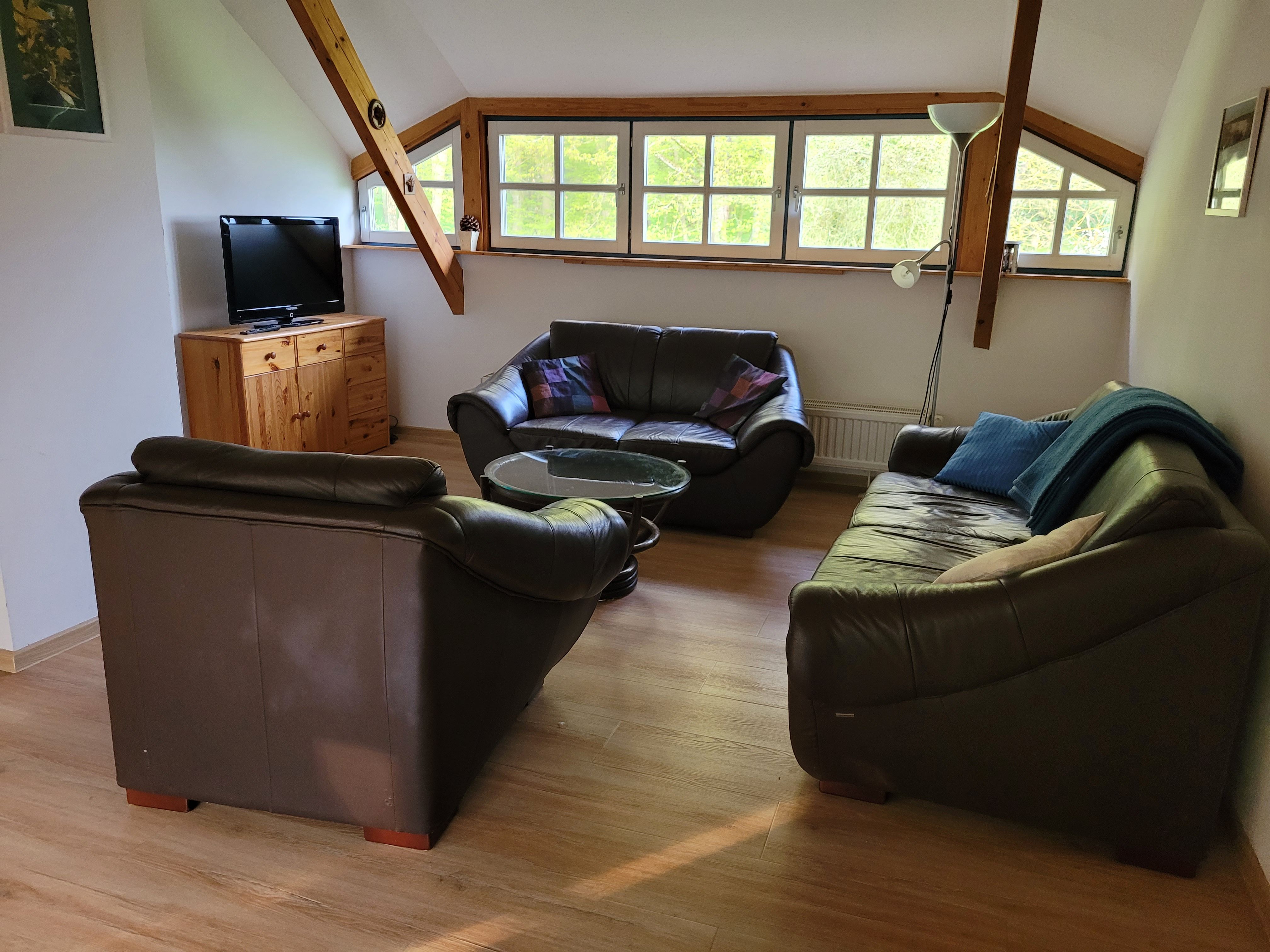 Die ca. 70 m² große Ferienwohnung liegt im Obergeschoss des reetgedeckten Hauses und verfügt über einen separaten Zugang von außen.