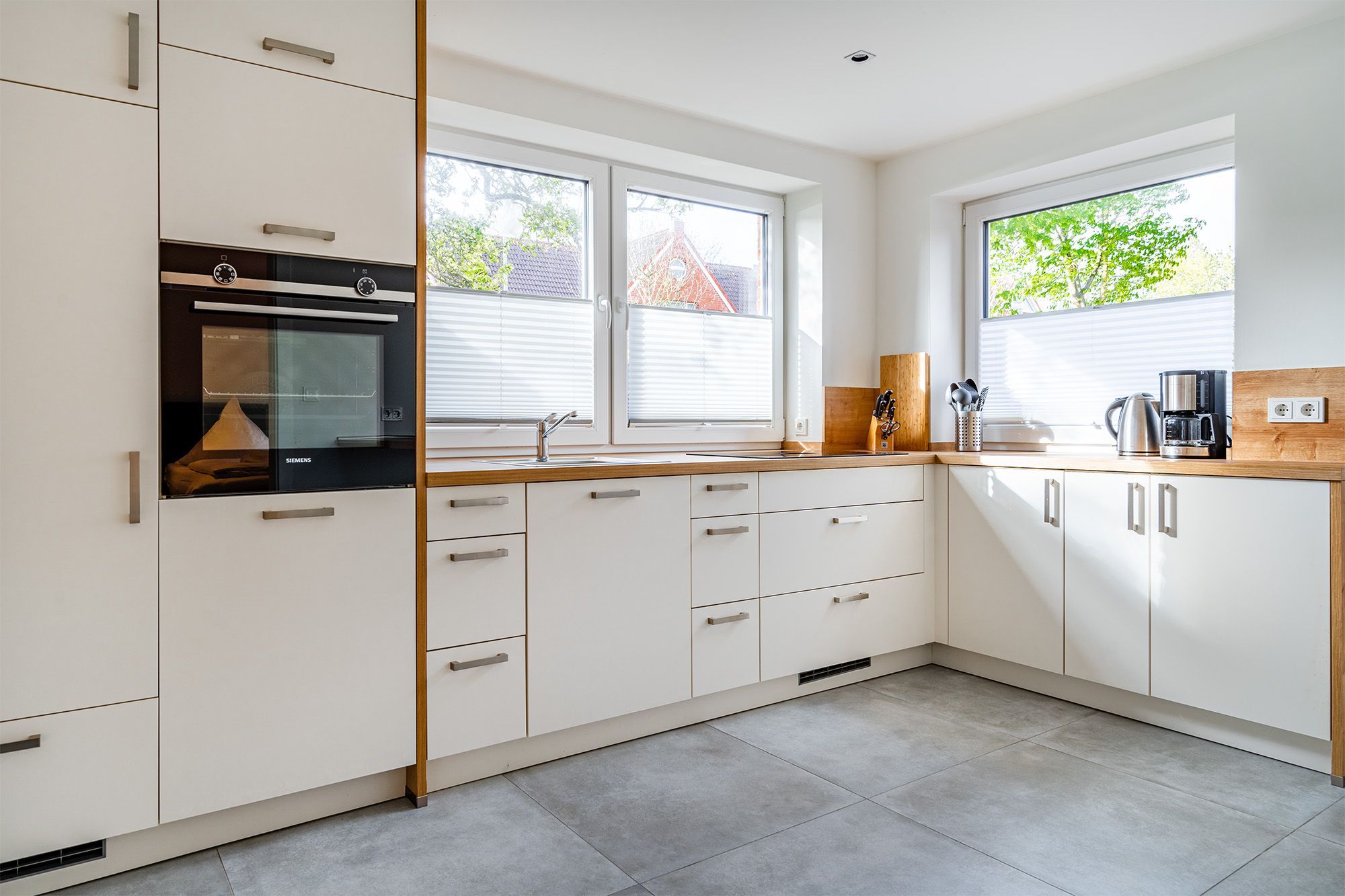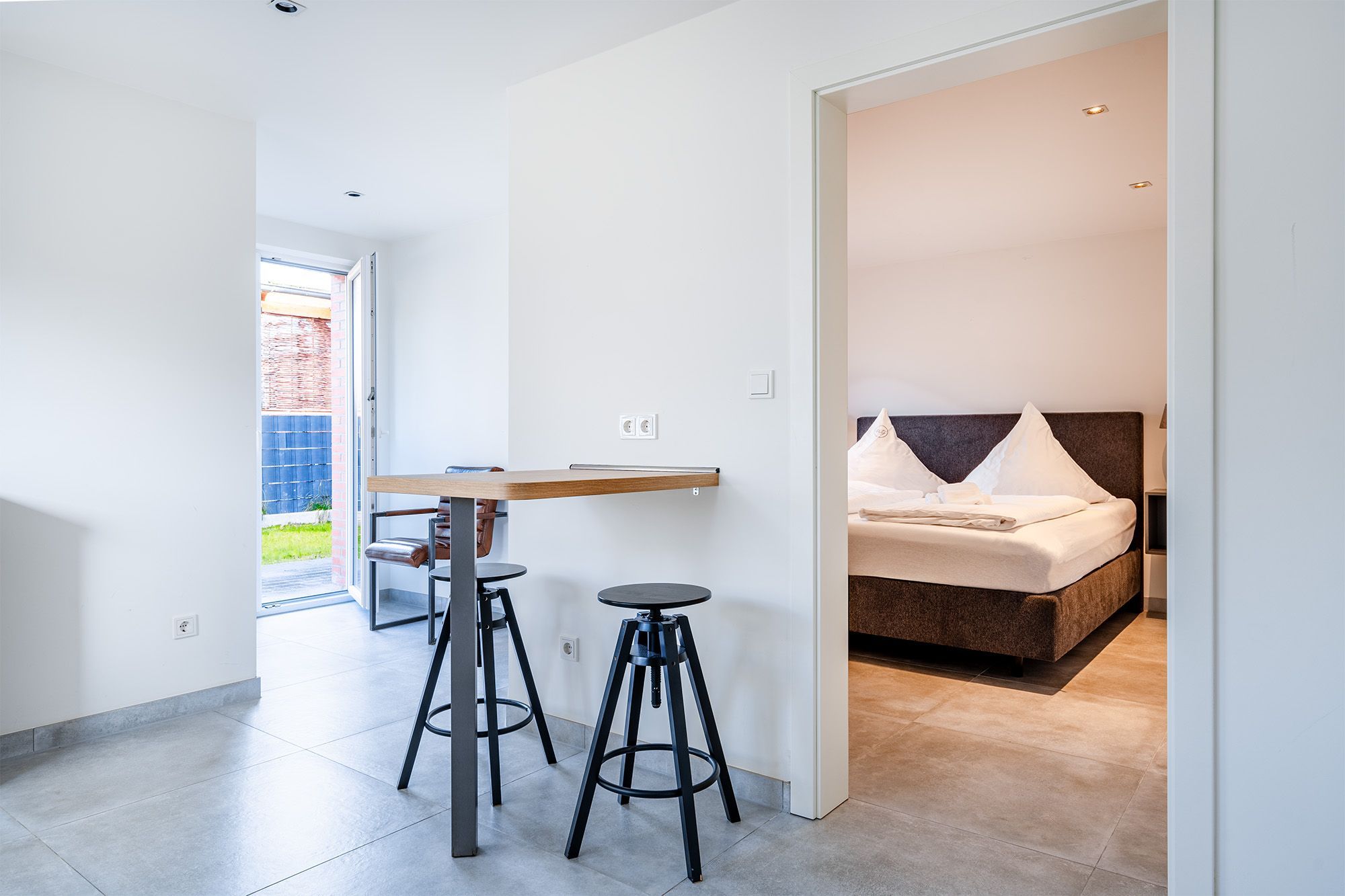 Verbringen Sie Ihren Greetsiel Aufenthalt in unserer kürzlich komplett sanierten Erdgeschoss Wohnung Die Zimmerei 1. Auf etwa 70qm finden Sie in zentralster Lage einen hellen und geräumigen Wohn-Ess-Bereich mit einer voll ausgestatteten und großzügigen Küche, ausreichend Sitzmöglichkeiten für den gemeinsamen Urlaub mit Freunden oder der Familie, zwei Schlafzimmer mit hochwertigen Boxspringbetten und ausreichend Ablagefläche, sowie ein Badezimmer mit ebenerdiger Dusche. Auf der Terrasse, die Sie durch den Wohnbereich erreichen lässt es sich nach ereignisreichen Tagen entspannen und die frische Luft genießen. Auch Ihr Vierbeiner wird sich hier wohlfühlen. Durch die ausgezeichnete zentrale und dennoch ruhige Lage erreichen Sie alles gut zu Fuß. Selbstverständlich steht Ihnen ein eigener Parkplatz am Haus zur Verfügung. Sollten Sie mit einem E-Auto anreisen, verfügt das Objekt auch über eine Ladesäule, die Sie hinzu buchen können.