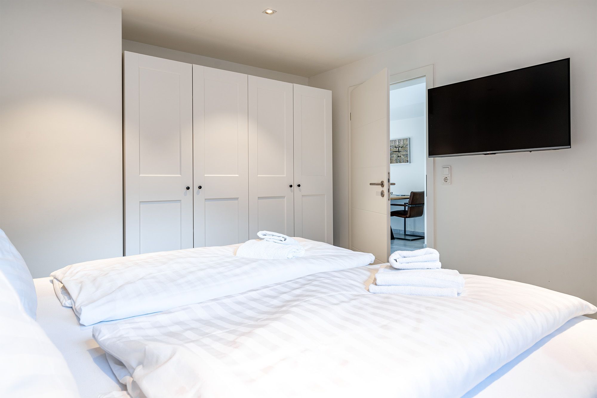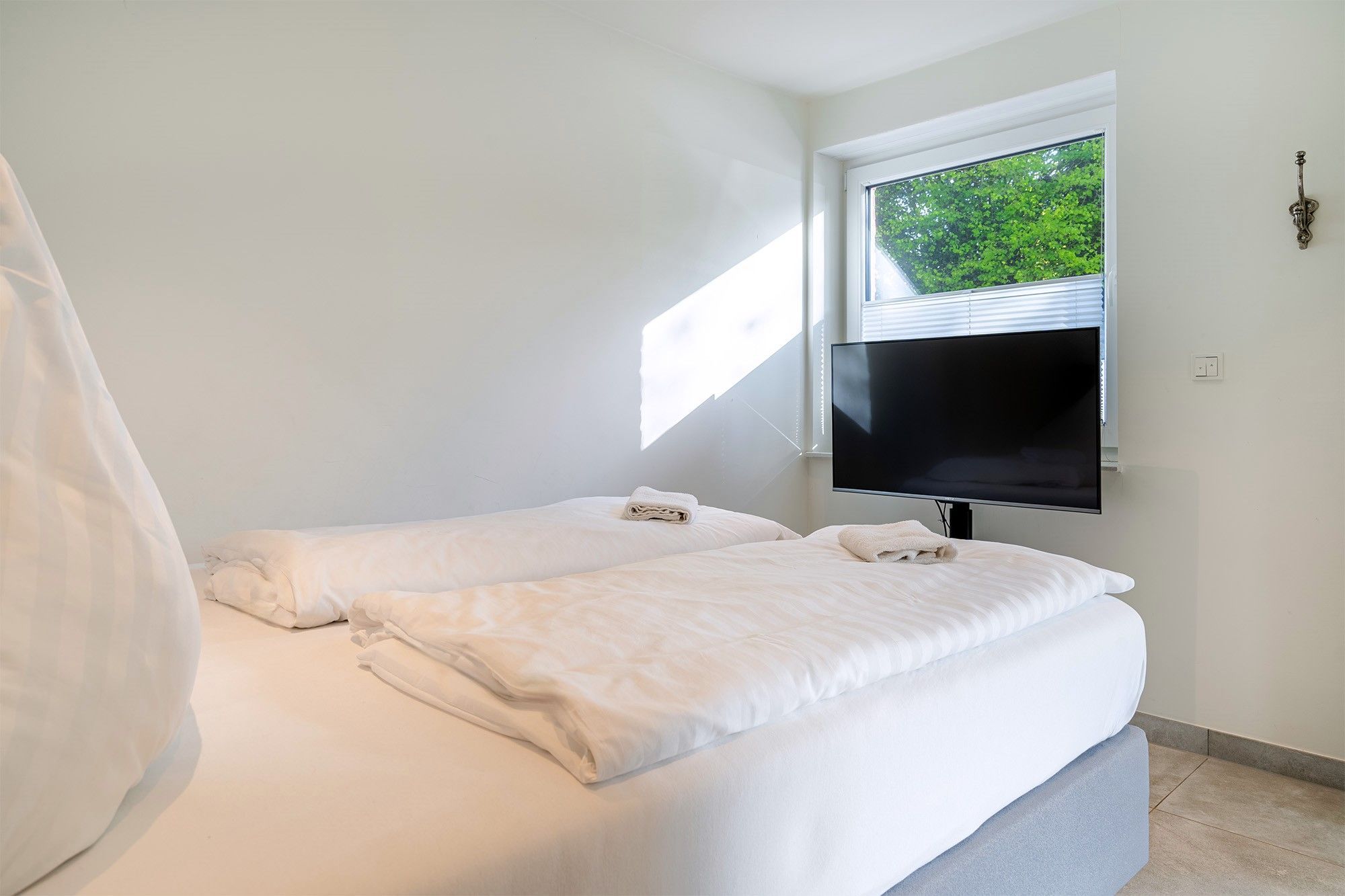 * Gerne bieten wir Ihnen unser Wäschepaket für Ihren Aufenthalt an, welches bezogene Betten, sowie Handtücher (Duschtuch, zwei Handtücher, Duschvorleger und ein Geschirrtuch) umfasst und Euro 19,50 p.P. kostet. Sie können dieses in der Buchungsstrecke unter dem Punkt Ihr Mietpreis hinzu buchen. *