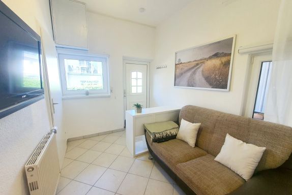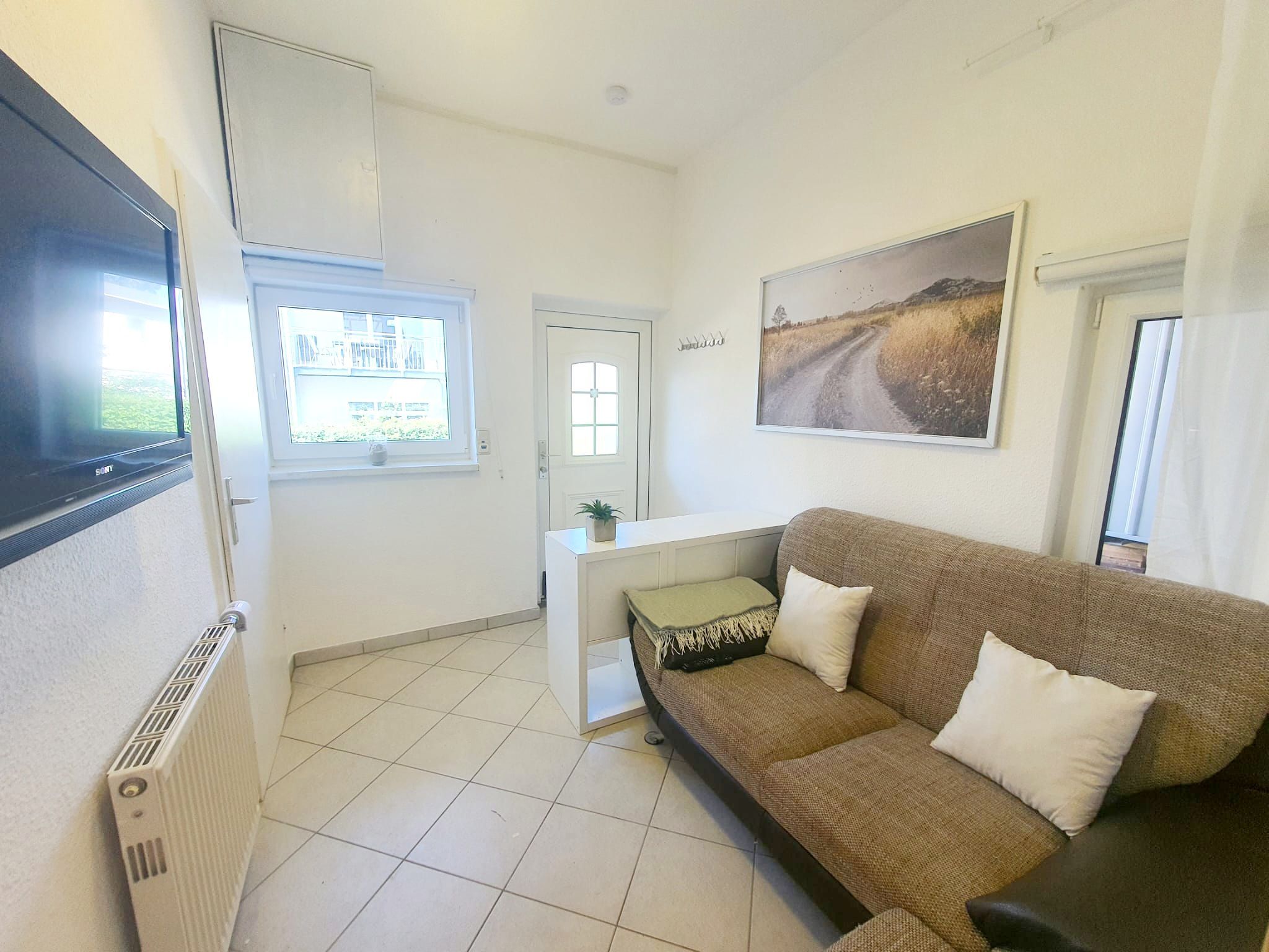 Das Miniwohnzimmer ist mit einem TV ausgestattet.
