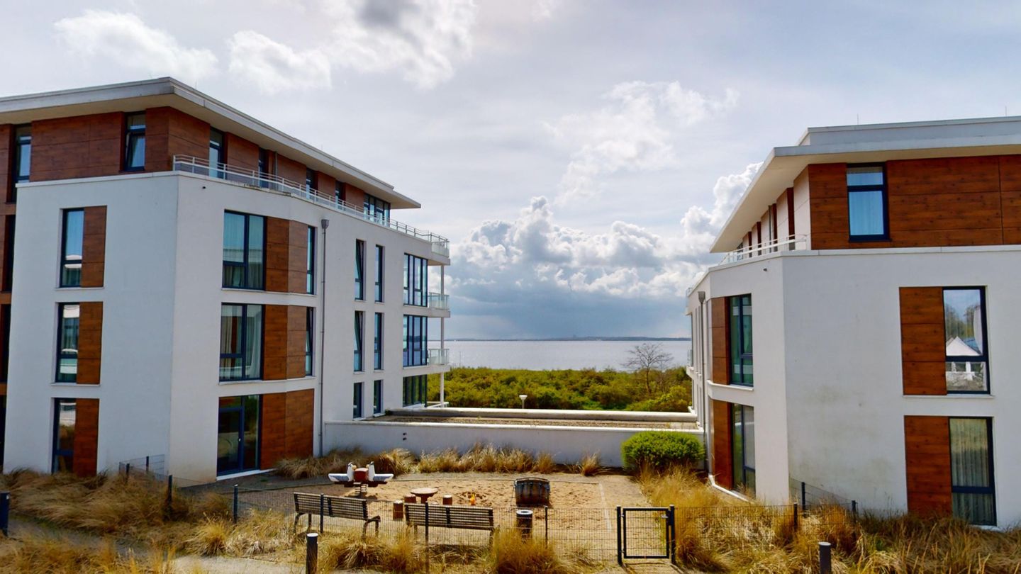 Alle Wohnungen haben große Terrassen/Balkone mit direktem oder eingeschränktem Meerblick. Jedes Haus verfügt über einen Aufzug, mit dem man barrierefrei direkt aus der Tiefgarage zu seiner Wohnung gelangen kann.