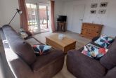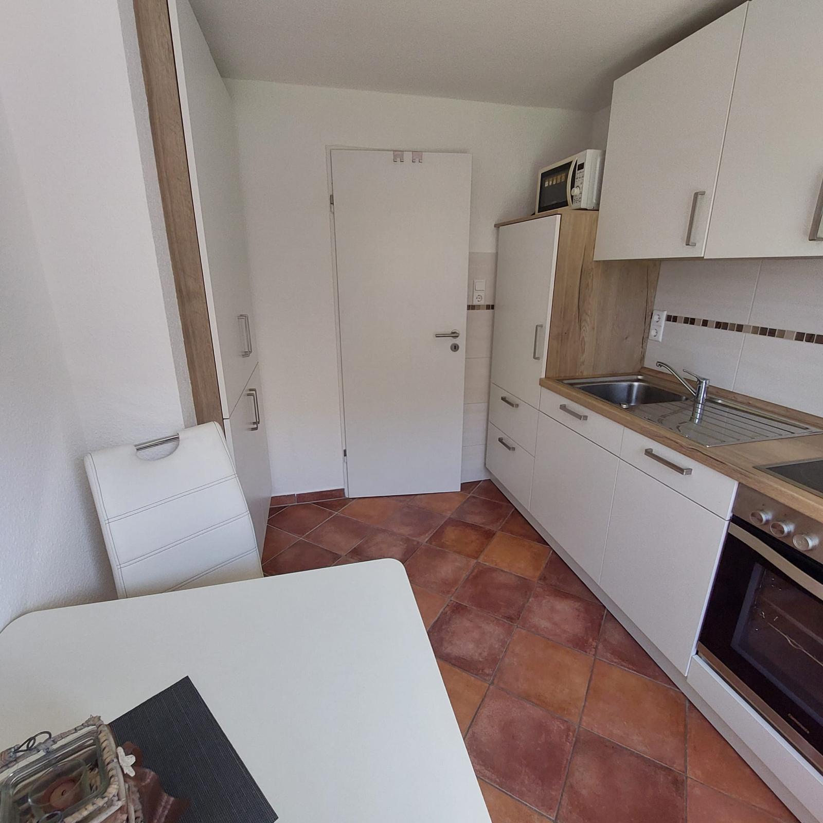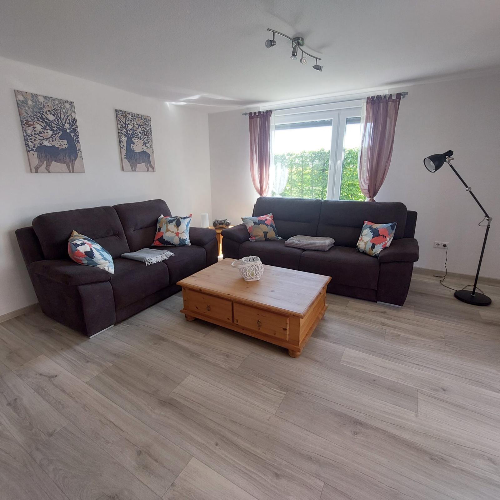 Die Ferienwohnung Vorne (ca. 80 m²) erstreckt sich über das Erd- und Obergeschoß unseres Ferienhauses. Vom gemütlichen Wohn-/Essbereich mit integrierter Küchenzeile gelangen Sie auf die Terrasse mit Gartenmöbeln. Die Schlafzimmer teilen sich in zwei mit jeweils einem Doppel- und das Weitere mit einem Einzelbett auf.