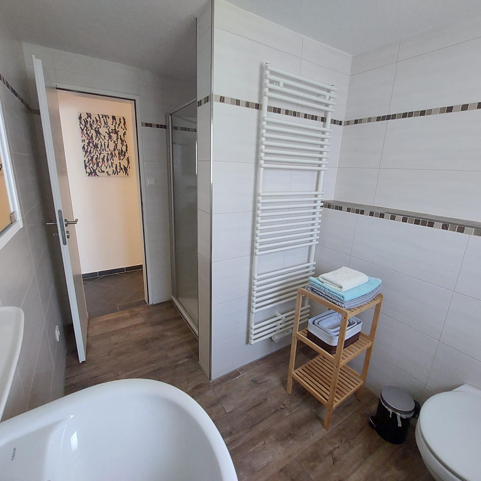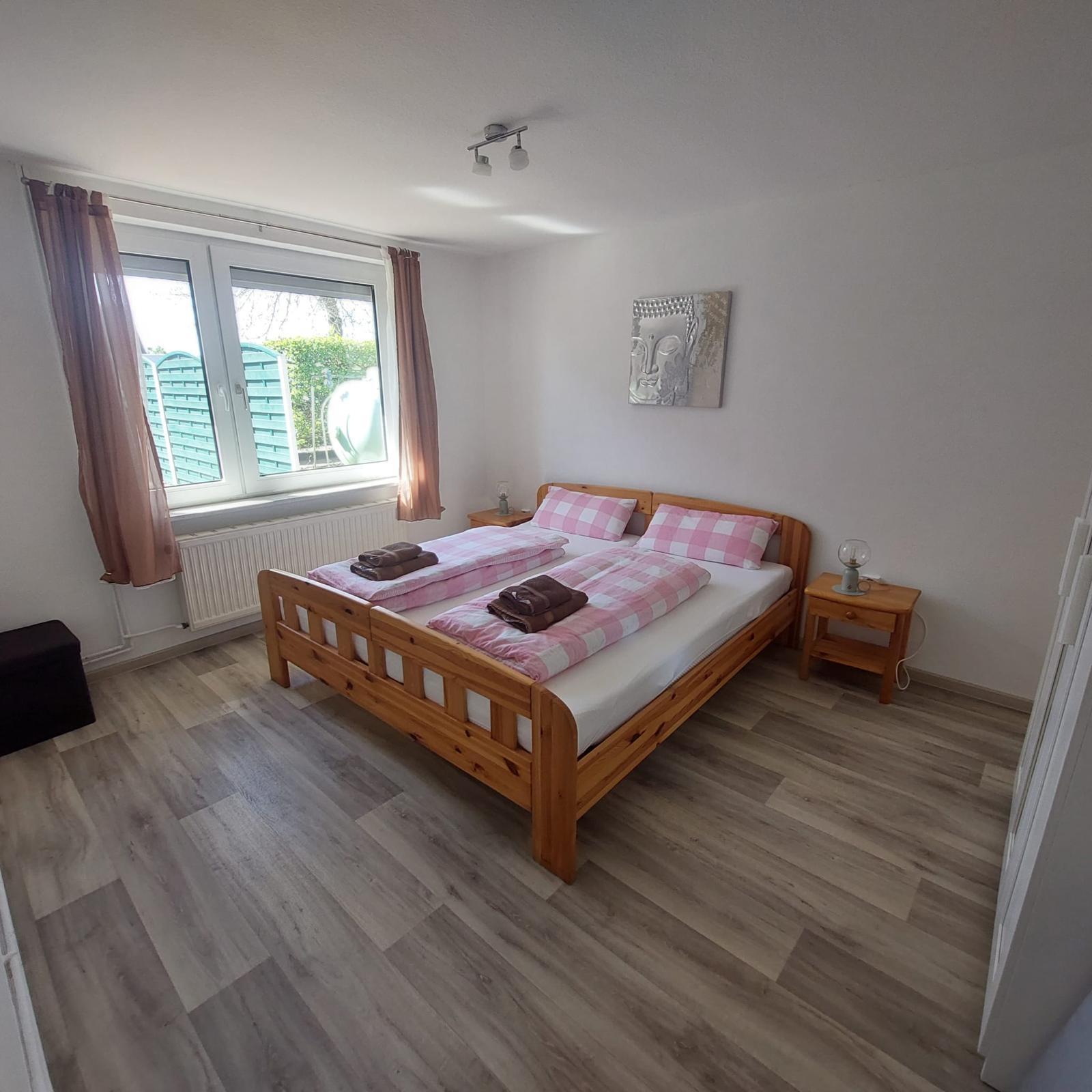 Unsere Ferienwohnung Kleeblatt hat eine Wohnfläche von ca. 65 m². Im Erdgeschoss befinden sich eine komplett eingerichtete Küche mit Backofen, Cerankochfeld, Kühlschrank mit Gefrierfach, Spülmaschine und diversen elektrischen Geräten wie Kaffeemaschine, Wasserkocher, Toaster etc. Des Weiteren werden Sie hier ein Bad mit Dusche/WC vorfinden. Im Obergeschoss erwarten Sie ein gemütlich eingerichteter Wohnbereich mit Flachbildschirm, 2 Schlafzimmer (Doppel- und Einbettzimmer) sowie ein weiteres Bad mit Badewanne/WC.