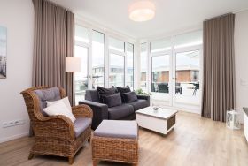Das lichtdurchflutete Penthouse-Appartement befindet sich im 3. OG der Ferienanlage direkt an der Strandpromenade der Lübecker Bucht. Es ist 62 m² groß und für eine Belegung mit 4 Personen ausgelegt - auch Ihr Hund ist willkommen!