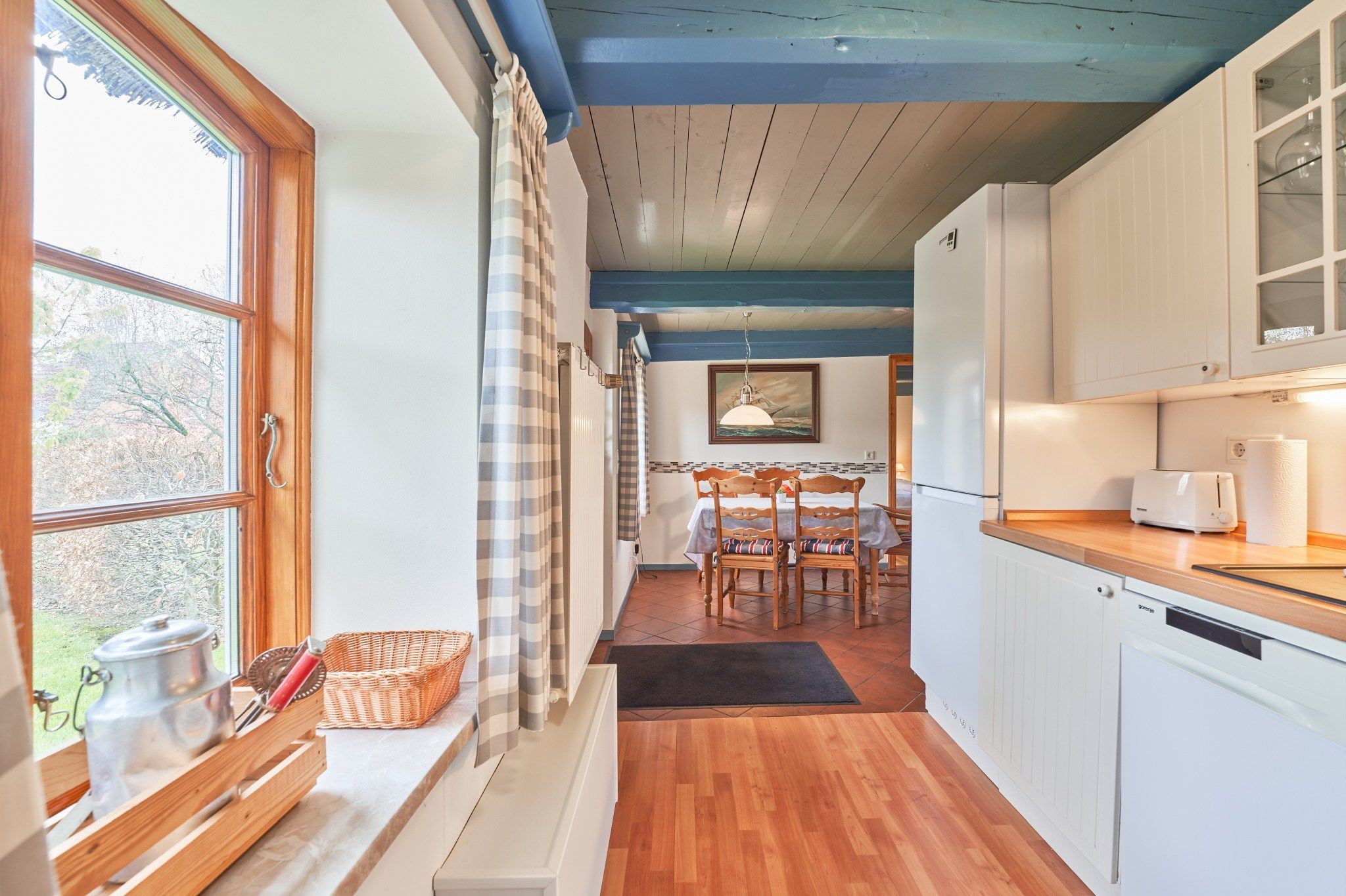 Küche: Die gut ausgestattete Küche lässt keine Wünsche offen und ermöglicht es Ihnen, in der eigenen Unterkunft kulinarische Genüsse zu zaubern. Zur Ausstattung gehören eine Kühl-/Gefrierkombination, ein Backofen, ein Ceranfeld, eine Kaffeemaschine (Filtergröße 4), ein Wasserkocher, ein Toaster sowie ein Geschirrspüler. Ein gemütlicher Essbereich rundet den Raum ab.