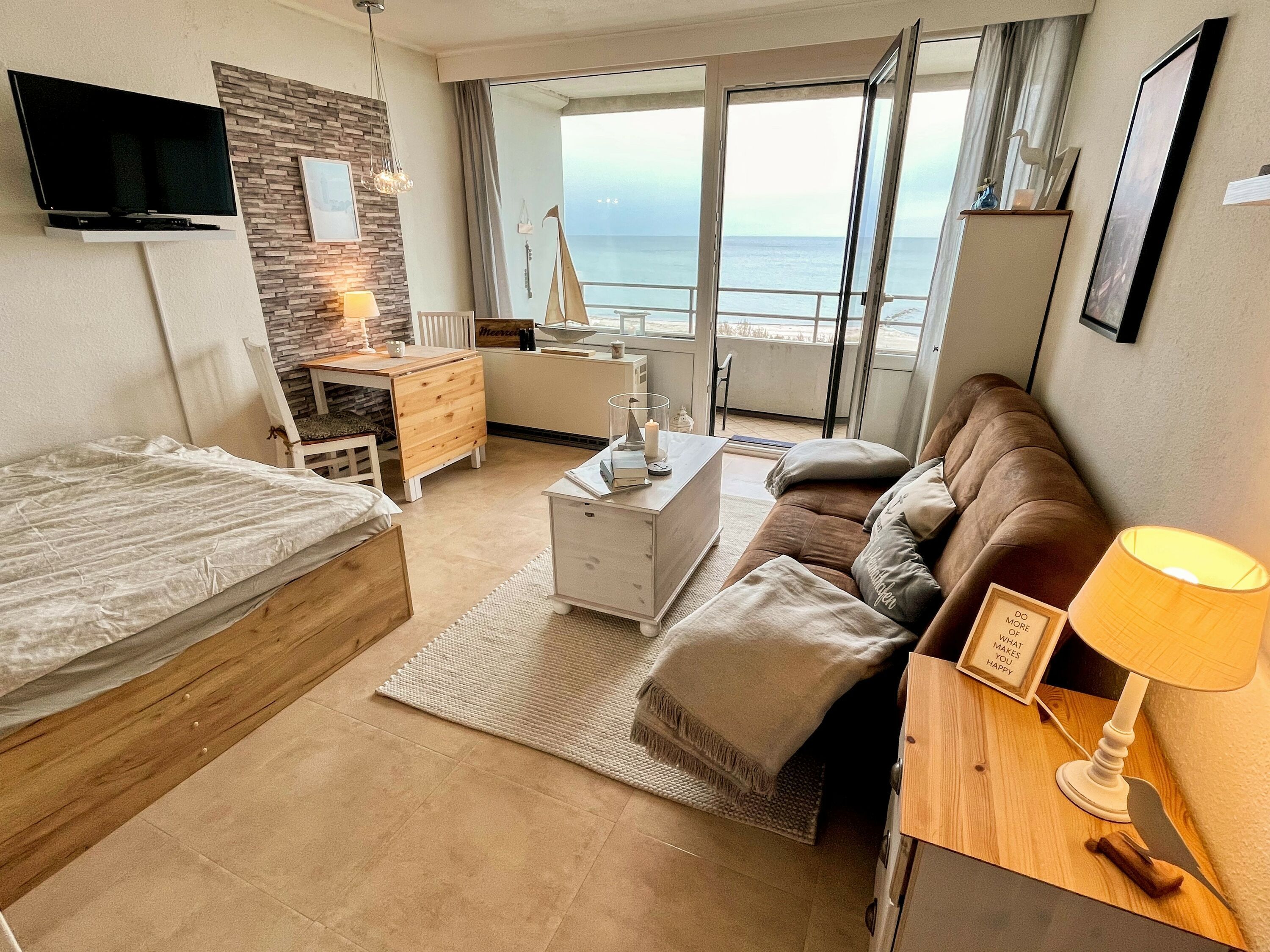 Die Ferienwohnung Heimathafen, Steinwarder 37 (Haus Schöne Aussicht), Wohnung 8 in Heiligenhafen bietet auf 38 m² Platz für maximal 2 Personen. Genießen Sie den fantastischen Ostseeblick bei einer Tasse Kaffee und beobachten Sie die Surfer und Kiter bei Ihren Tricks.