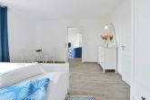 In der Außenansicht mit Backsteinen verkleidet, noch ganz charmantes Fischerhäuschen, bietet es innen den kompletten Komfort der heutigen Zeit mit allen Annehmlichkeiten, wie der vollausgestatteten Küche inklusive freistehendem Küchenblock mit Herd, ein Schlafzimmer mit Doppelbett, ein Kinderschlafzimmer mit Doppelbett, welches aber auch durch Erwachsene gut nutzbar ist und ein vollsaniertes Bad mit ebenerdiger Dusche. Das Ganze wird geschmückt durch eine Vielzahl maritimer Accessoires, die den Besucher auf charmante Art erinnern, wo er sich befindet.
