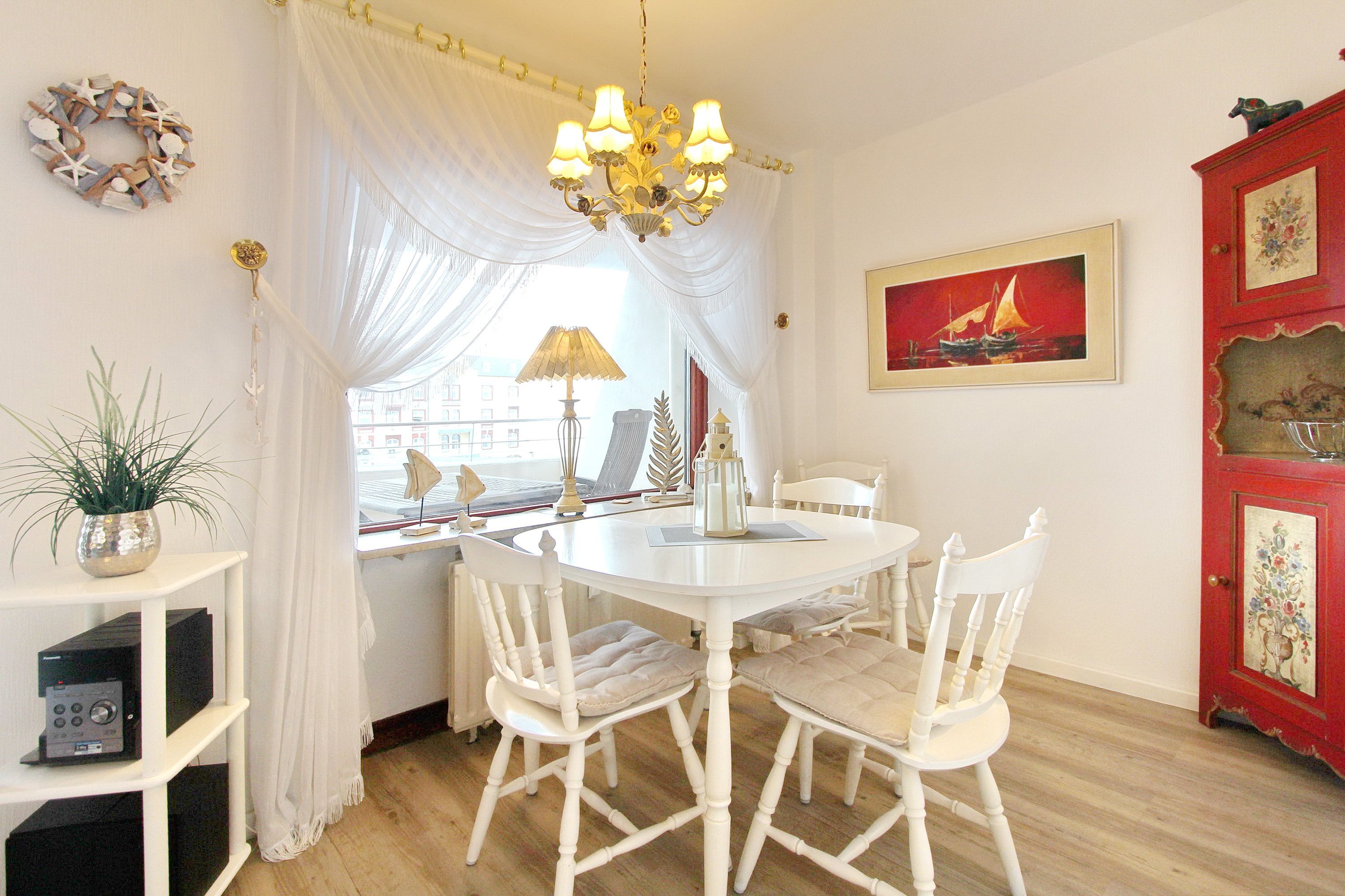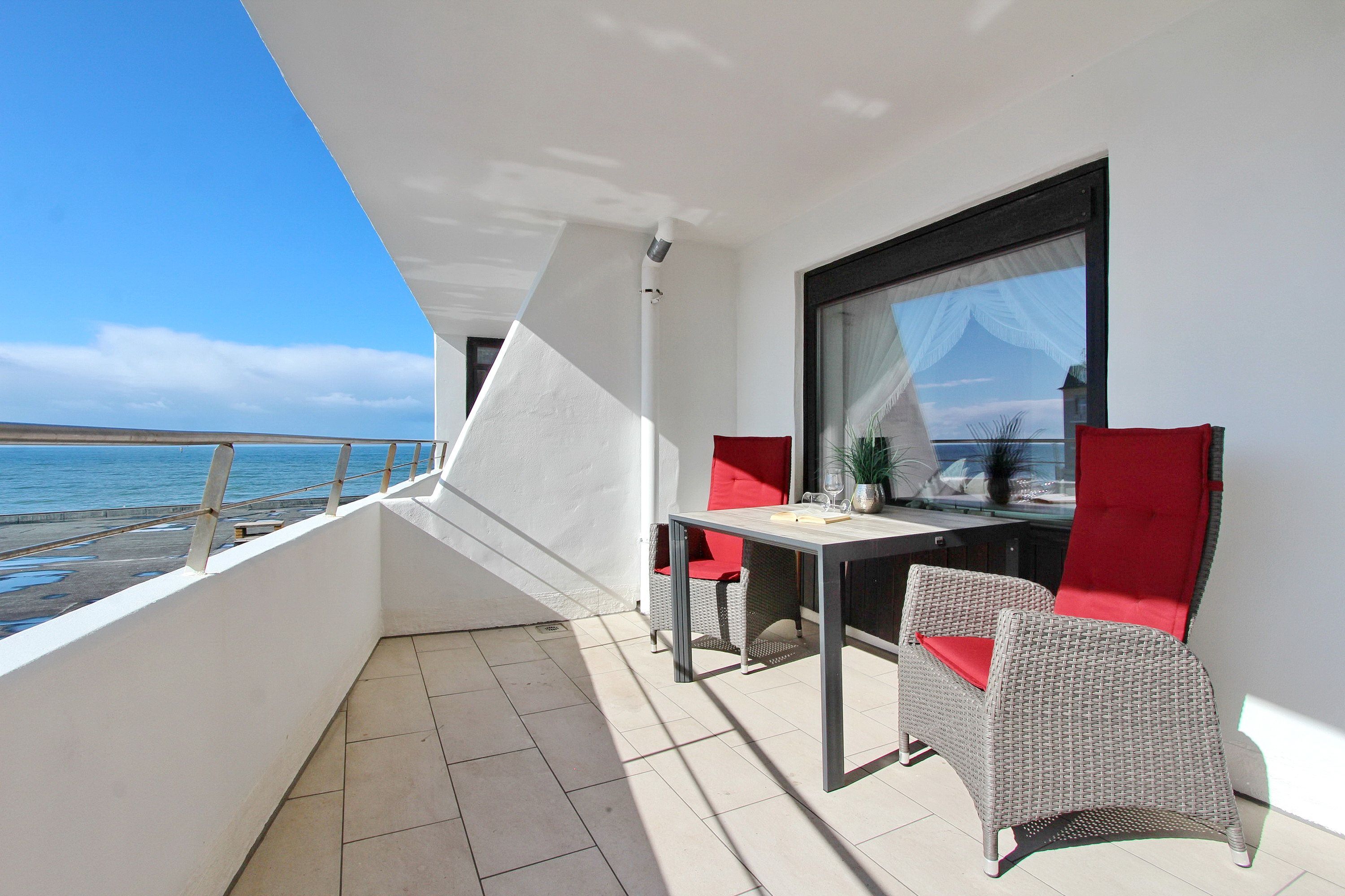 Die schöne, freundlich eingerichtete Zweizimmerwohnung in der 1. Etage im Haus Metropol bietet Ihnen einem schönen Blick auf die Nordsee. Das Wohnzimmer ist aufgrund der großen Fensterfronten und des Balkons lichtdurchflutet und verfügt über eine gemütliche Couchgarnitur mit Schlaffunktion und einem Tisch, zwei Cocktail-Sessel, sowie einem großen Smart TV. Der Essplatz mit vier Stühlen befindet sich zwischen der Durchreiche zur Küche und dem möblierten Südbalkon. Das separate Schlafzimmer mit eigenem Ostbalkon ist mit einem Doppelbett und einem Schrank mit reichlich Stauraum ausgestattet. Das Bad ist vom Flur und Schlafzimmer begehbar und verfügt über eine Eckdusche und ein Bidet und einem großem Handtuchheizkörper In der Küche mit Geschirrspüler, Mikrowelle, Backofen und Ceranfeld können Sie sich selbst verpflegen und die Speisen durch die Durchreiche bequem zum Essplatz weitergeben. Zur technischen Ausstattung dieser Nichtraucherwohnung gehört: ein Radio mit CD Player. Haustiere sind nicht gestattet. Der freie WLAN Hot Spot des Hauses (WEG Haus Metropol - Passwortfrei - ohne Gewähr) steht Ihnen kostenfrei zur Verfügung. Die Wohnung hat eine Größe von ca. 74 m².