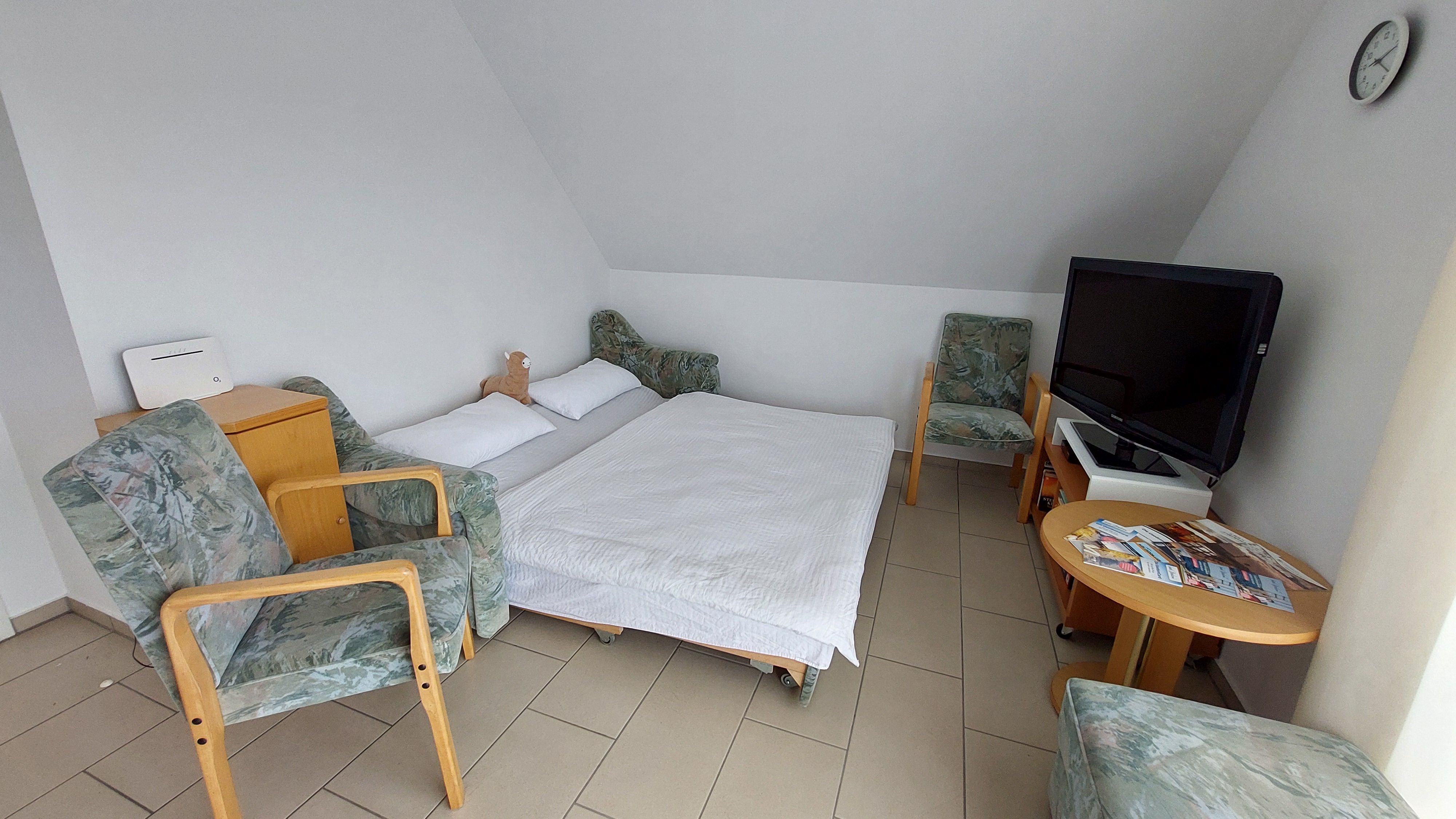 Zwei Ventilatoren sorgen an warmen Tagen für Abkühlung. Ein Keyboard sowie Videos und Bücher können während des Aufenthaltes gerne von Ihnen genutzt werden.