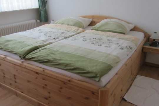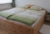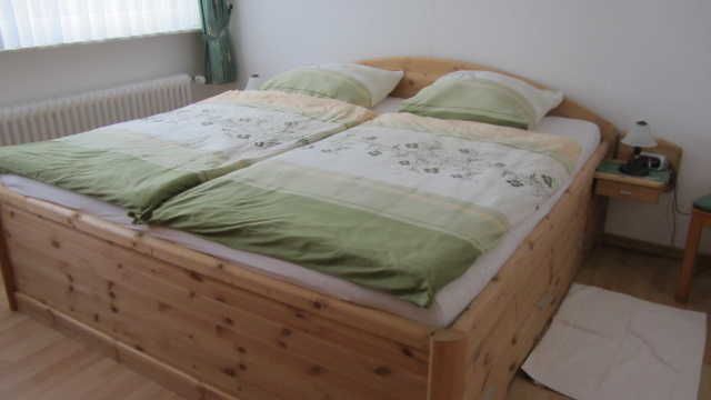 Raumaufteilung: 1 Schlafraum (1 Doppelbett 2x2m mit übergroßen Bettdecken, 1 Babybett), 1 komb. Wohn-/Schlafraum (1 Doppelschlafcouch auf 1,80x2,00 ausziehbar), 1 Wohnküche, 1 Badezimmer mit Dusche.