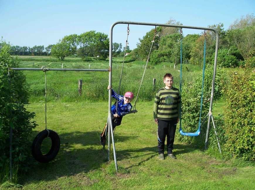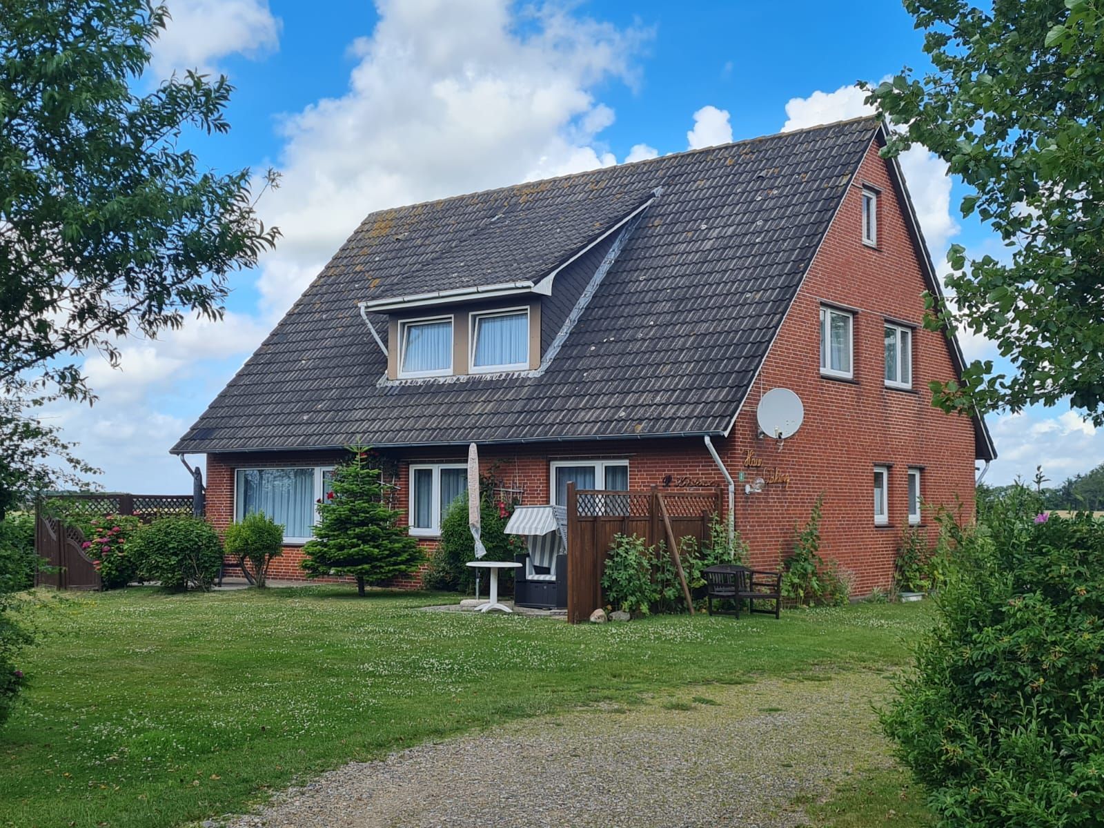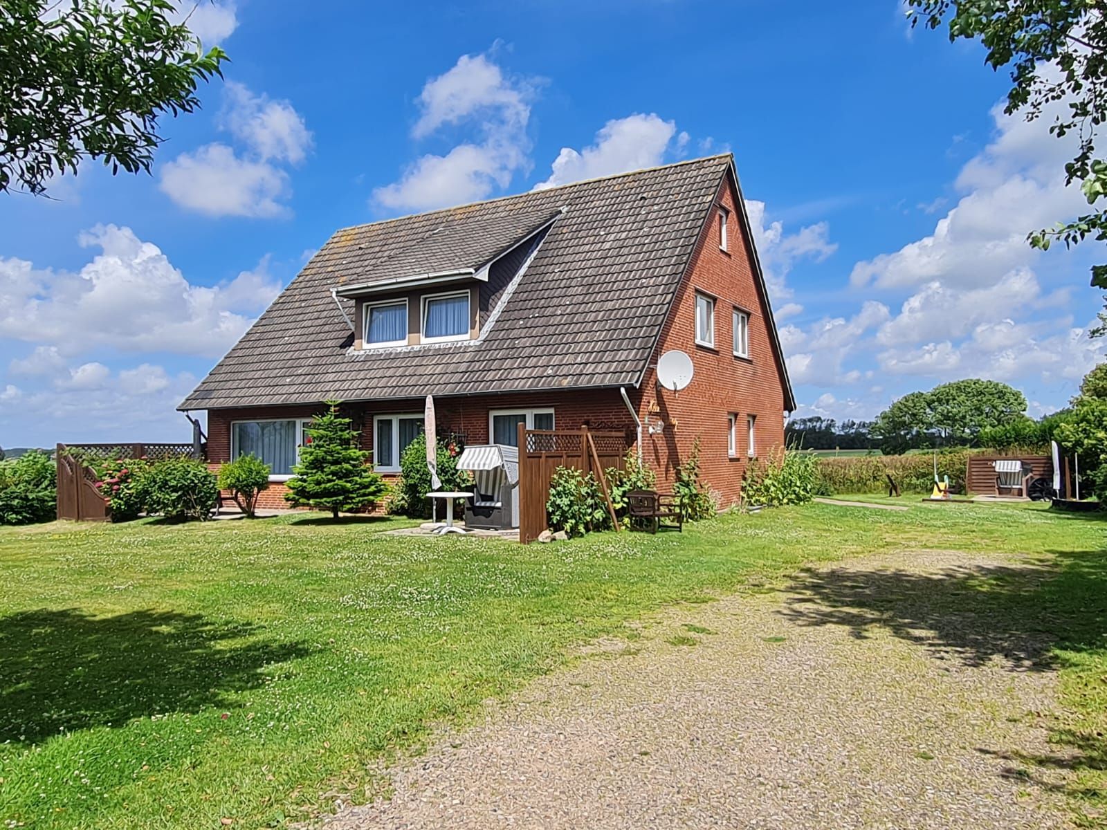 Spielplatz ist am Haus!Für jede Familie steht im Garten eine Terrasse mit Strandkorb,Liegestühlen,Tisch und Stühlen bereit. 200m zum Strand/sehr ruhige Lage/ teiweise Meeresblick! Bett 2x2m mit übergroßen Bettdecken von 155/220m. Parkplatz ist am Haus.