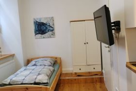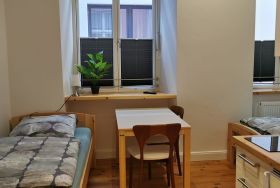 - 1 Wohn-/ Schlafzimmer für 2 Personen (2 Einzelbetten 0,90 x 2,00 Meter), Flat-TV, Schrank, Esstisch für 2 Personen