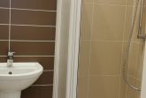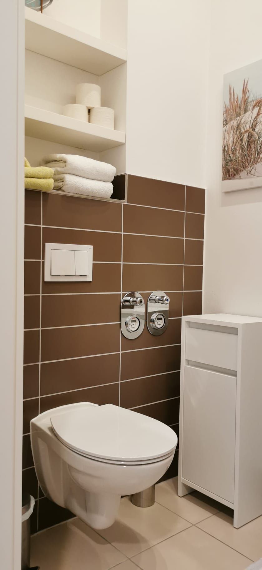 - 1 Bad mit Dusche / WC, Handtuchhalter, Spiegel, Ablage, Fön