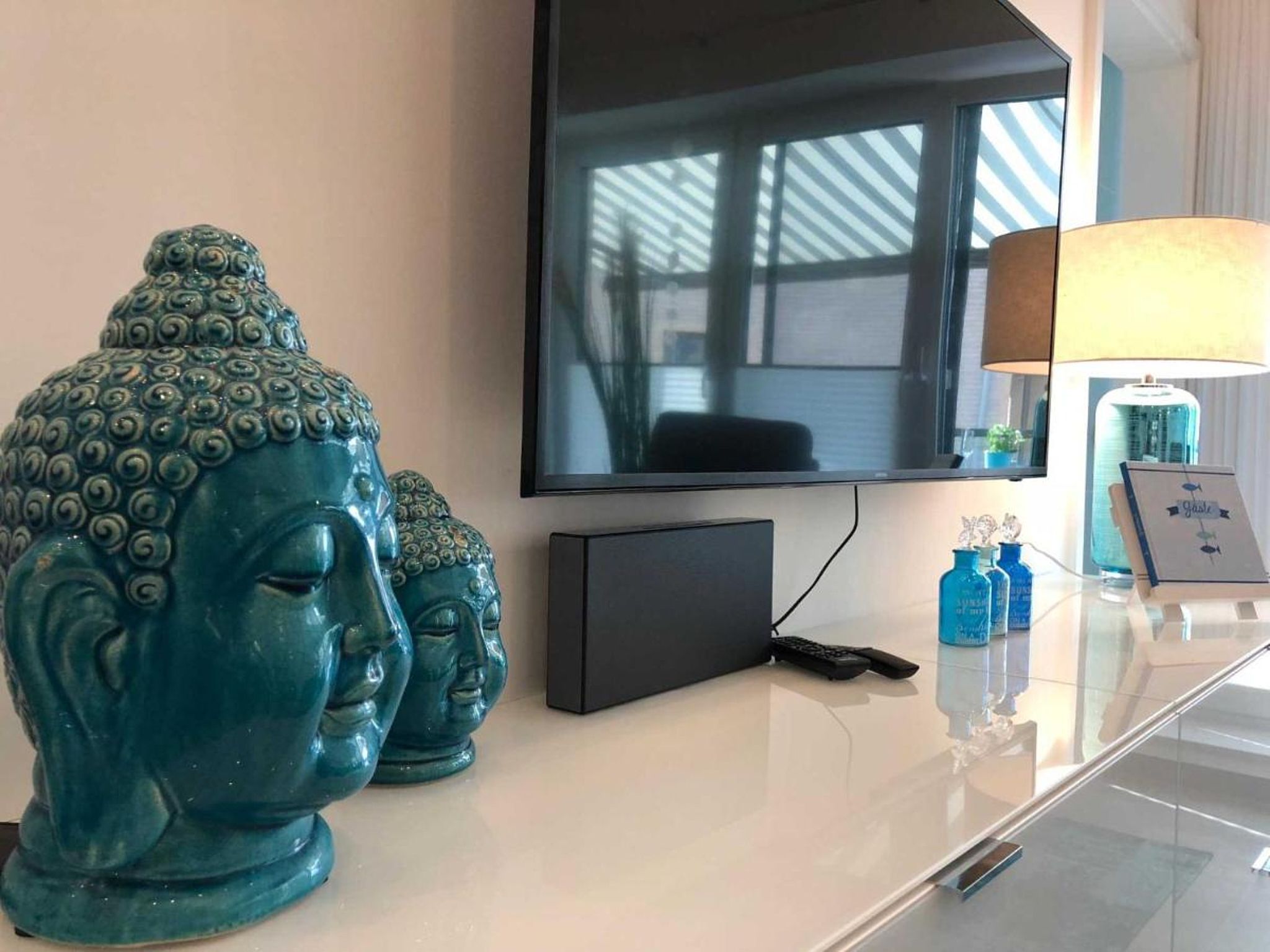 LCD-Fernseher und hochwertige Stereoanlage (mit CD, MP3, iPod-Dock, USB-Anschluss)