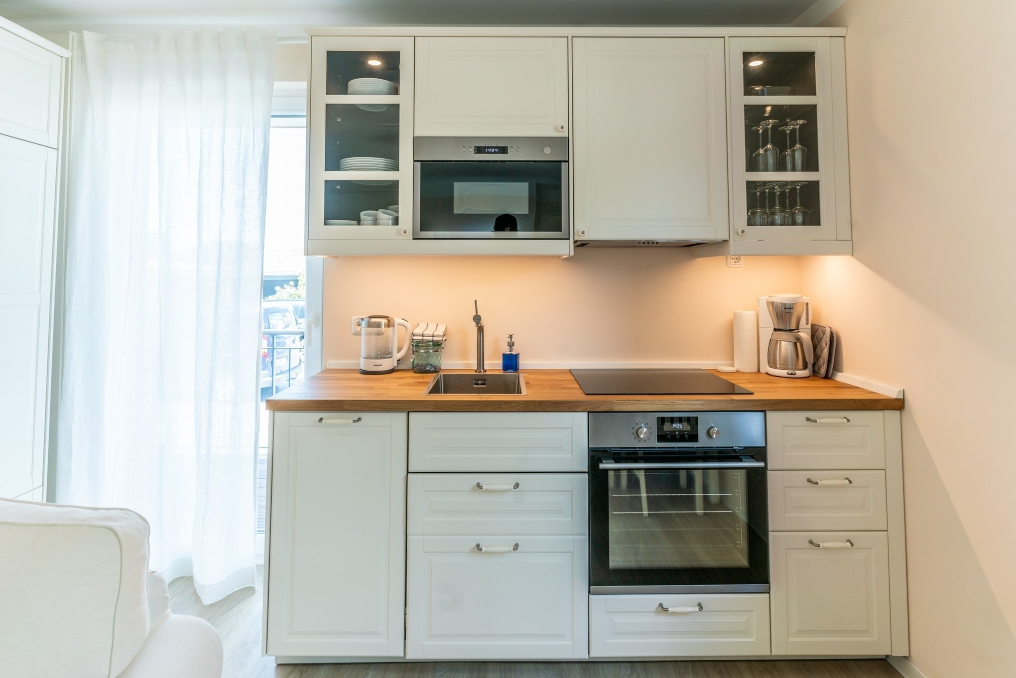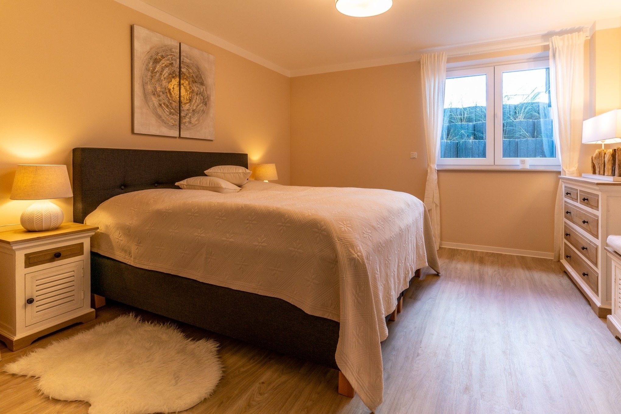 Die Wohnung besteht mit ihren 60m² aus zwei Schlafzimmern mit hochwertigen Boxspring- Betten und einem Wohn- Essbereich. Eine voll ausgestattete Küche, Balkon zur Hofseite mit Abendsonne und alles was das Herz im Urlaub begehrt.