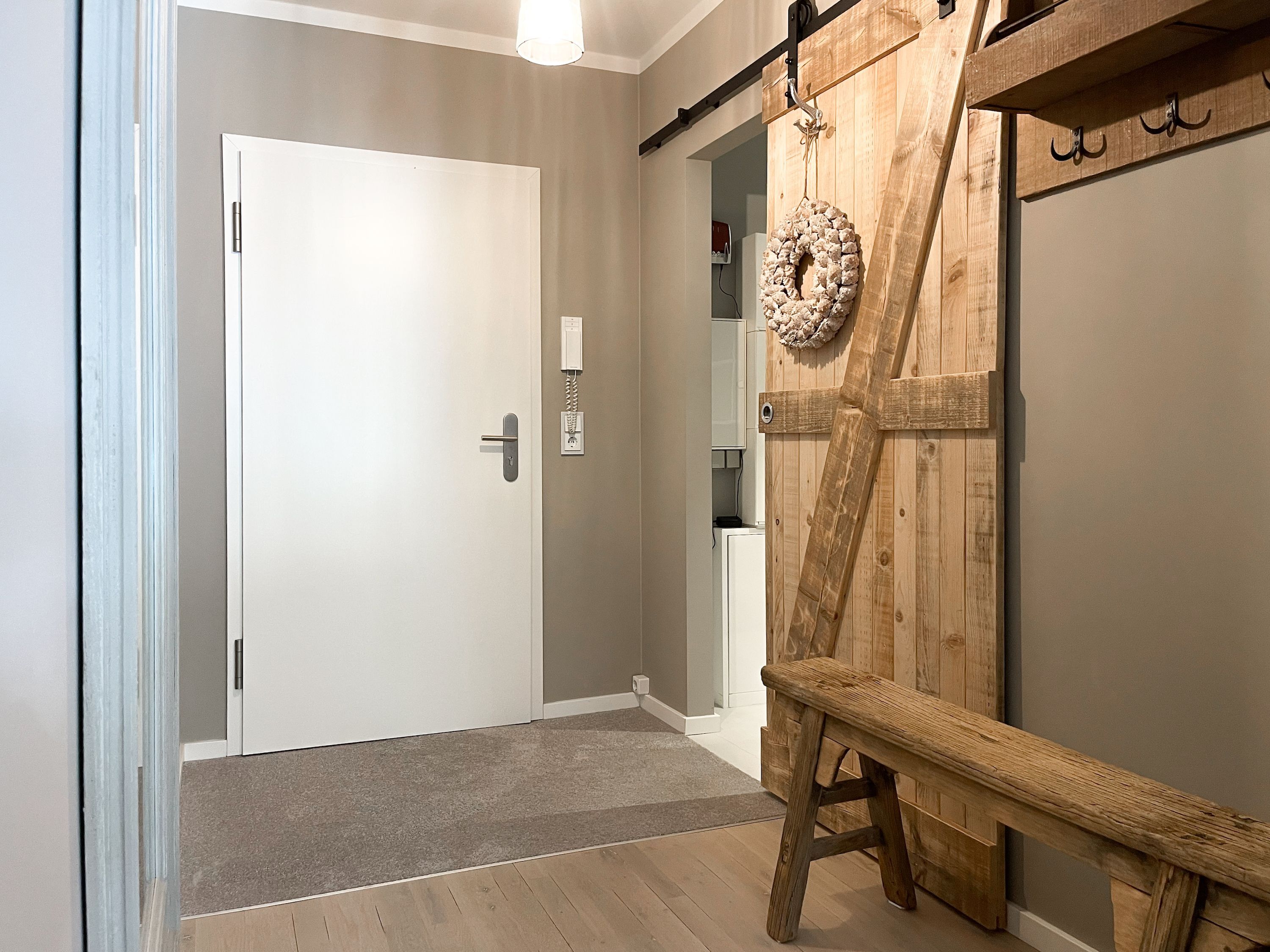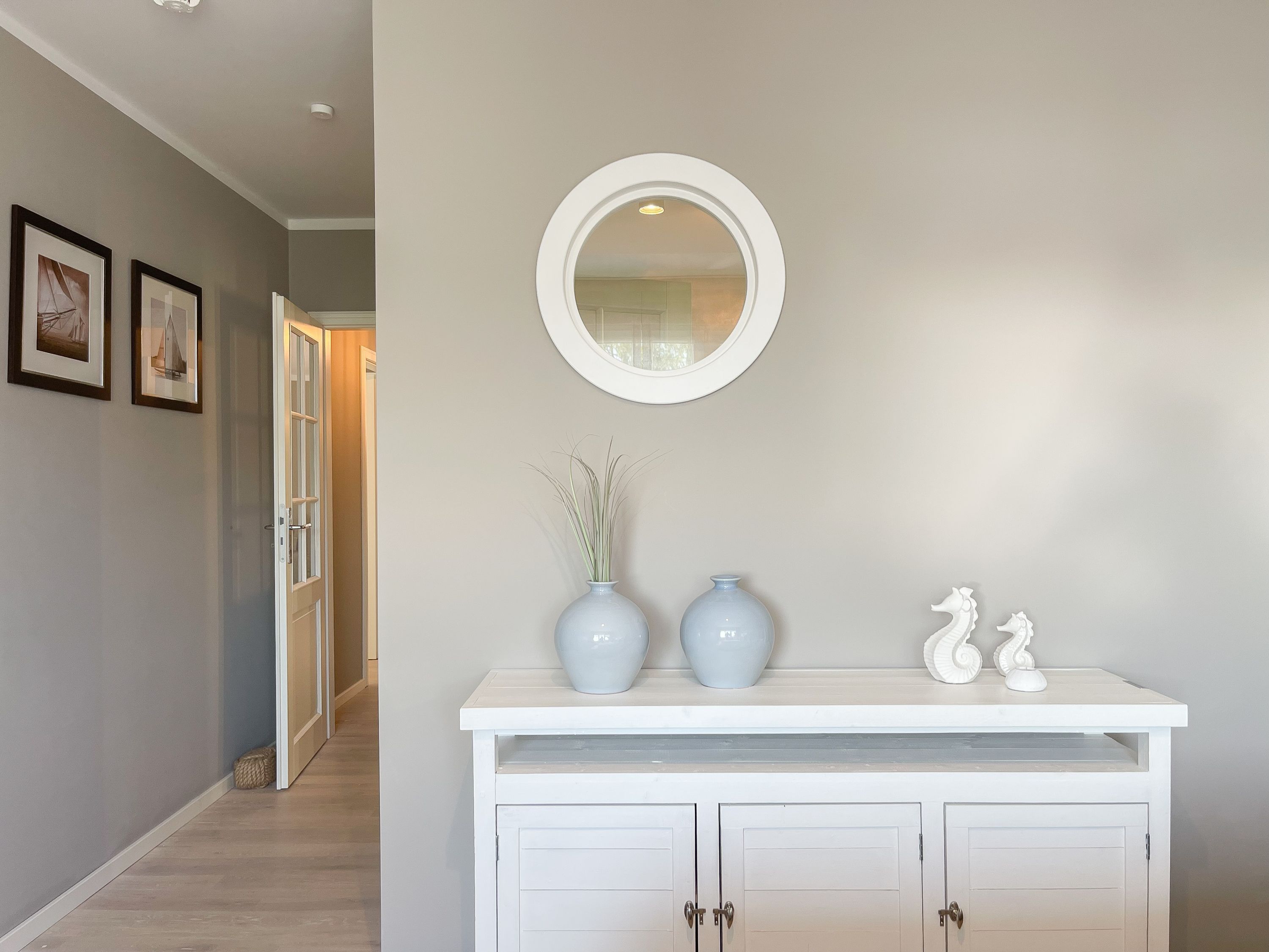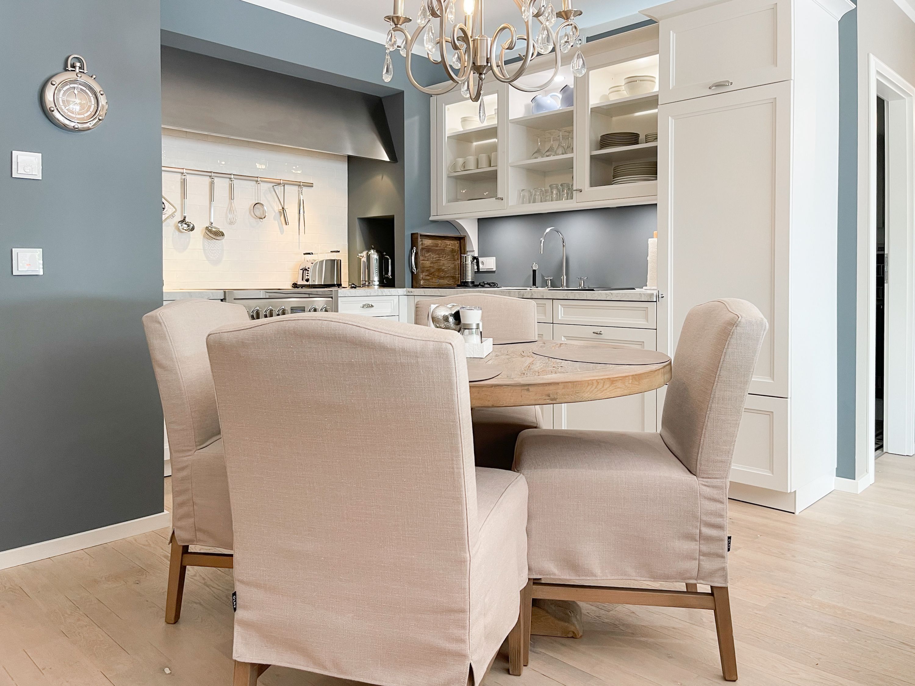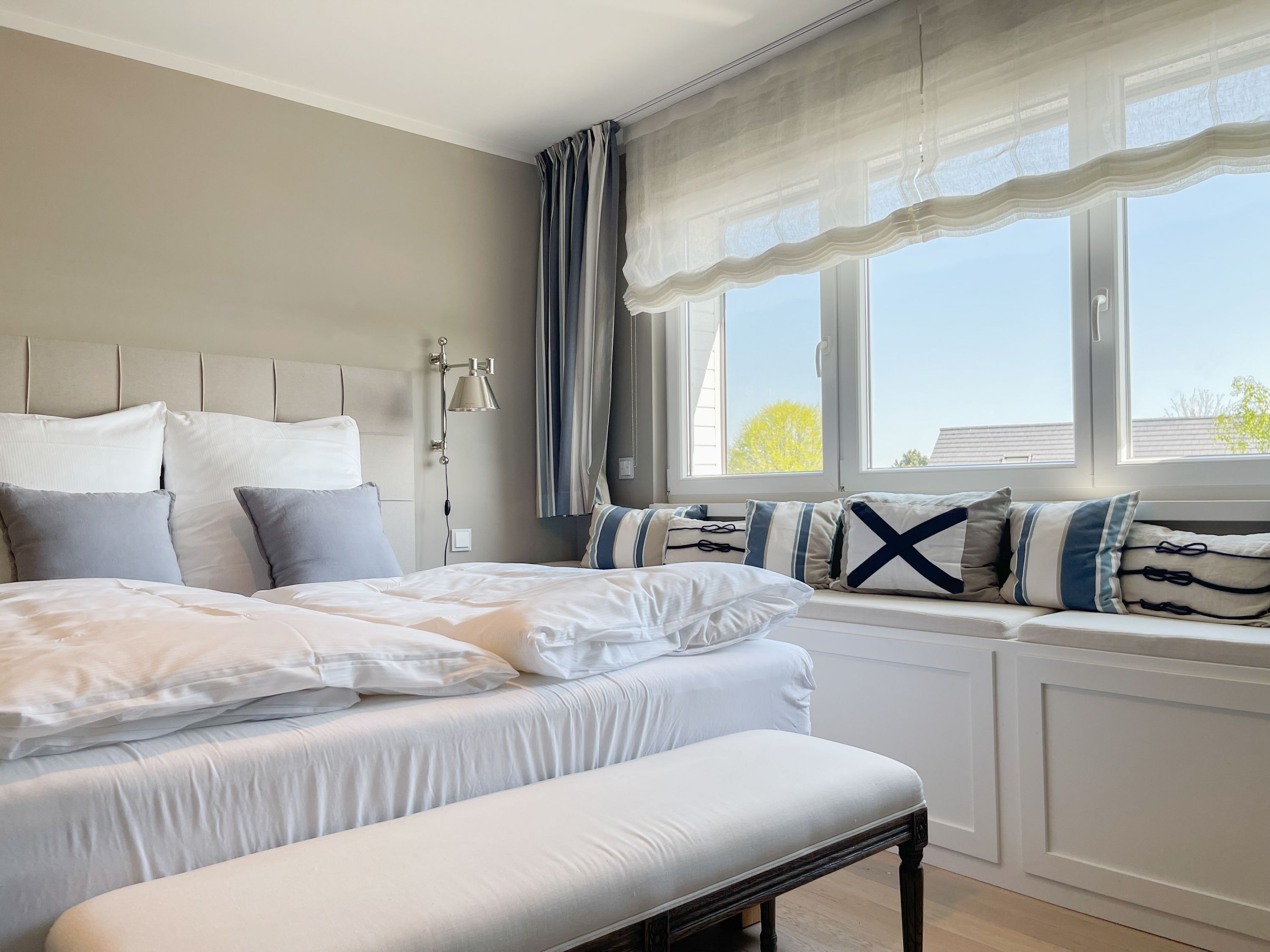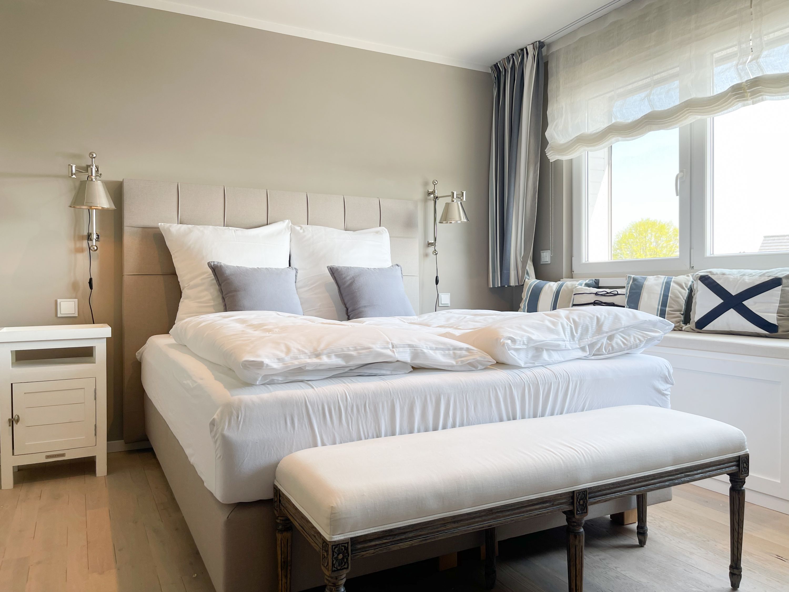 Das Penthouse „Maison Plage” bietet Ihnen zeitgemäßen Luxus im Hampton Style auf über 100 m² Wohnfläche und jeglichen Komfort, den Sie sich wünschen können. Dazu gehören Fußbodenheizung, elektrische Außenjalousien, Echtholzböden, Insektenschutz und Sauna. Mit zwei Schlafzimmern und zwei Bädern ist es perfekt für vier Personen geeignet, um einen entspannten Ostseeurlaub in Strandnähe zu verleben. Die äußerst geschmackvolle Einrichtung und hochwertige Ausstattung garantiert höchsten Wohnstandard in wunderschönem Ambiente. Es erwartet Sie ein gemütlicher Wohnbereich mit einem XL-Sofa; TV, Radio und WLAN sind selbstverständlich vorhanden. Die vorgelagerte Dachterrasse in Südausrichtung bietet Ihnen einen herrlichen Blick bis auf die Ostsee und lockt mit frischer Seeluft, Gartenmöbeln und Sonnenliege ins Freie. Hobbyköche können sich in der perfekt ausgestatteten, offenen High-End-Küche austoben. Der anschließende Essbereich bietet ausreichend Platz für gemeinsame Mahlzeiten und gemütliches Beisammensein. Die beiden Schlafzimmer sind großzügig bemessen und mit Boxspringbetten und Einbauschränken eingerichtet. In einem Schlafzimmer ist eine Infrarotsauna eingebaut, die bestens gegen Verspannungen und zur Entschlackung wirkt. Im Schlafzimmer 2 gibt es einen Schreibtisch für das Home Office und einen weiteren Fernseher. Die liebevoll gestalteten Duschbäder verfügen über Handtuchtrockner, Fußbodenheizung, Dusch-WCs und Fön. Eines der Bäder ist zusätzlich mit einer Badewanne ausgestattet. Im Flurbereich befindet sich ein separater Hauswirtschaftsraum, in dem auch Waschmaschine und Trockner untergebracht sind.