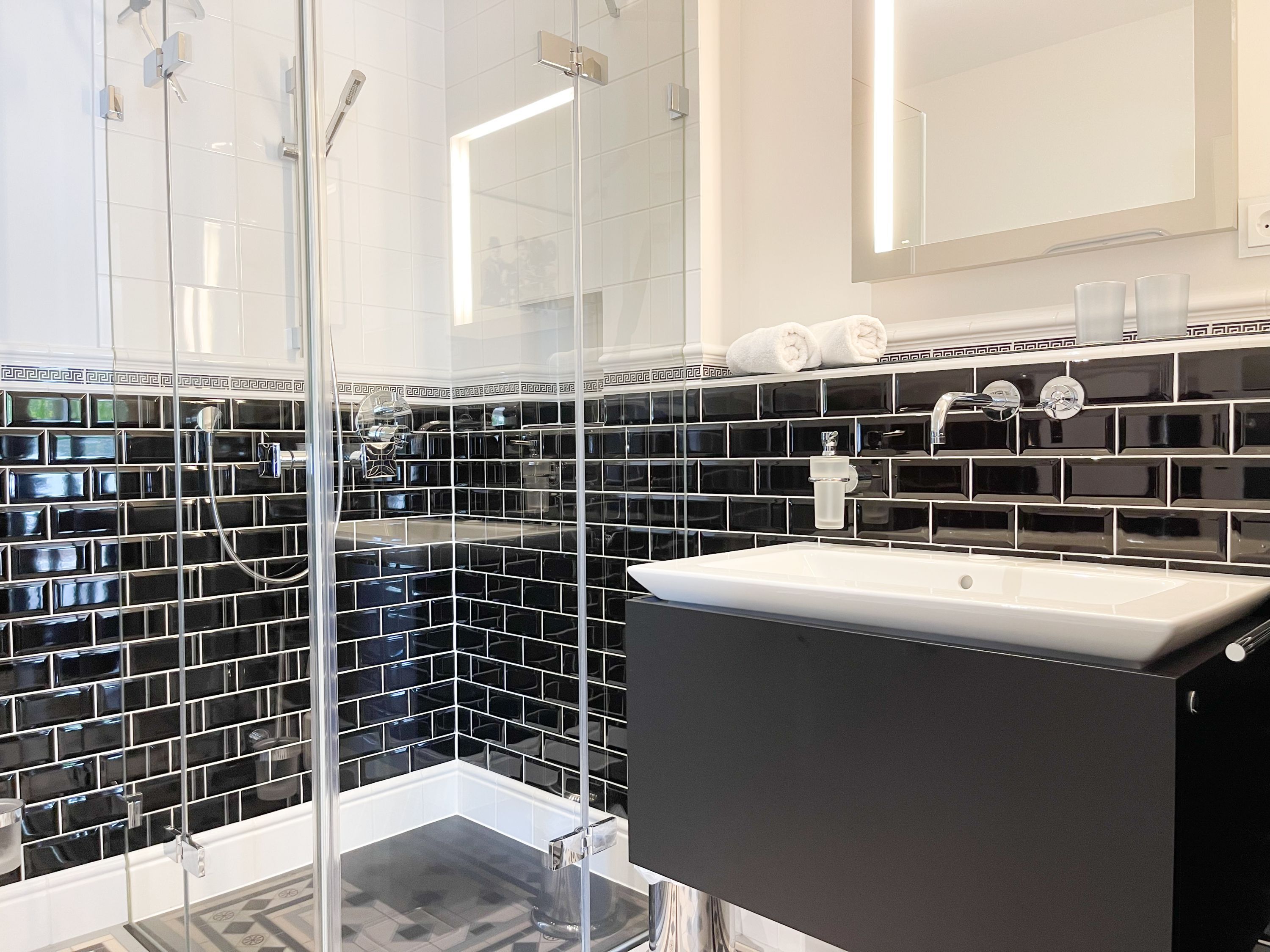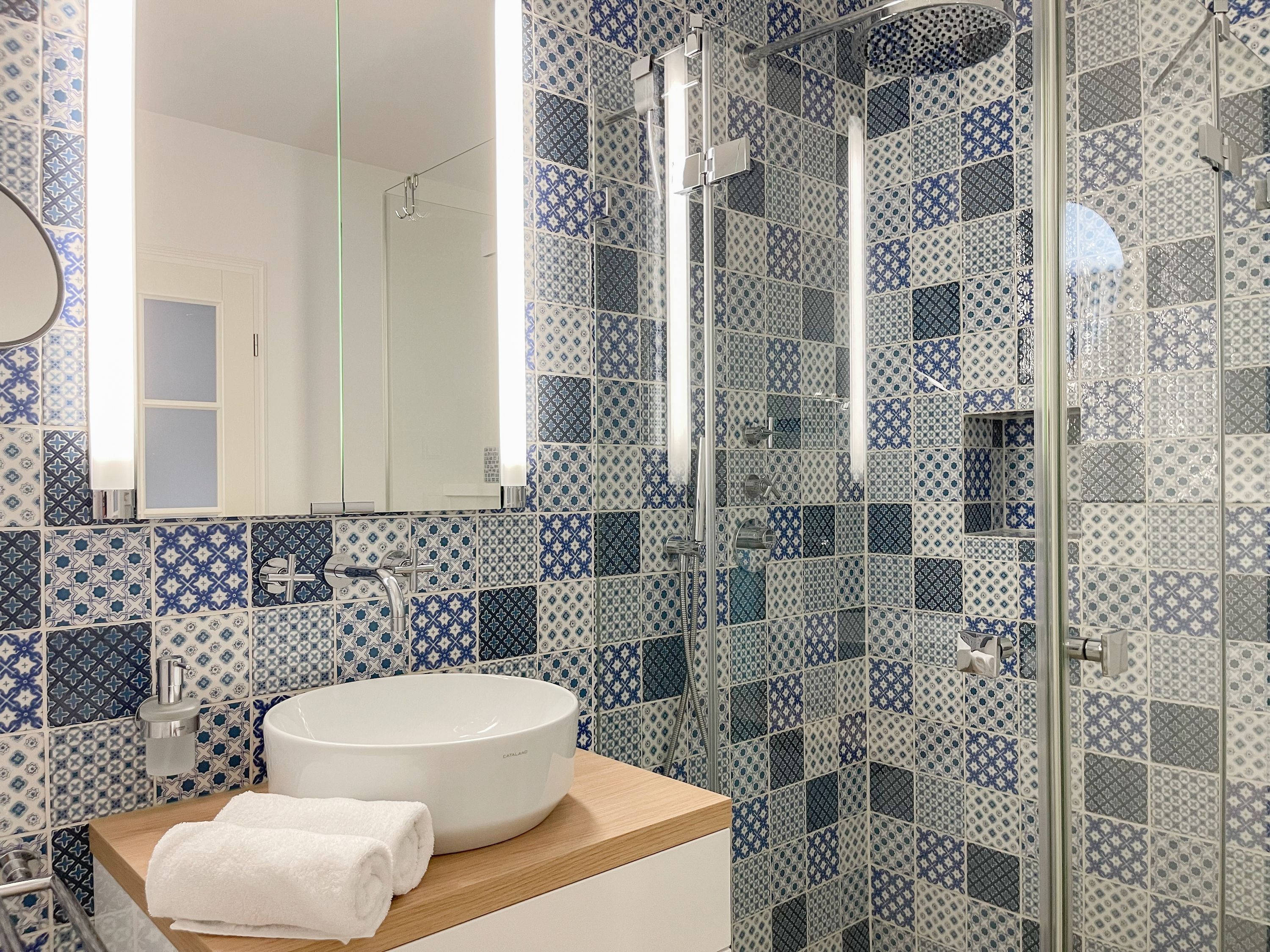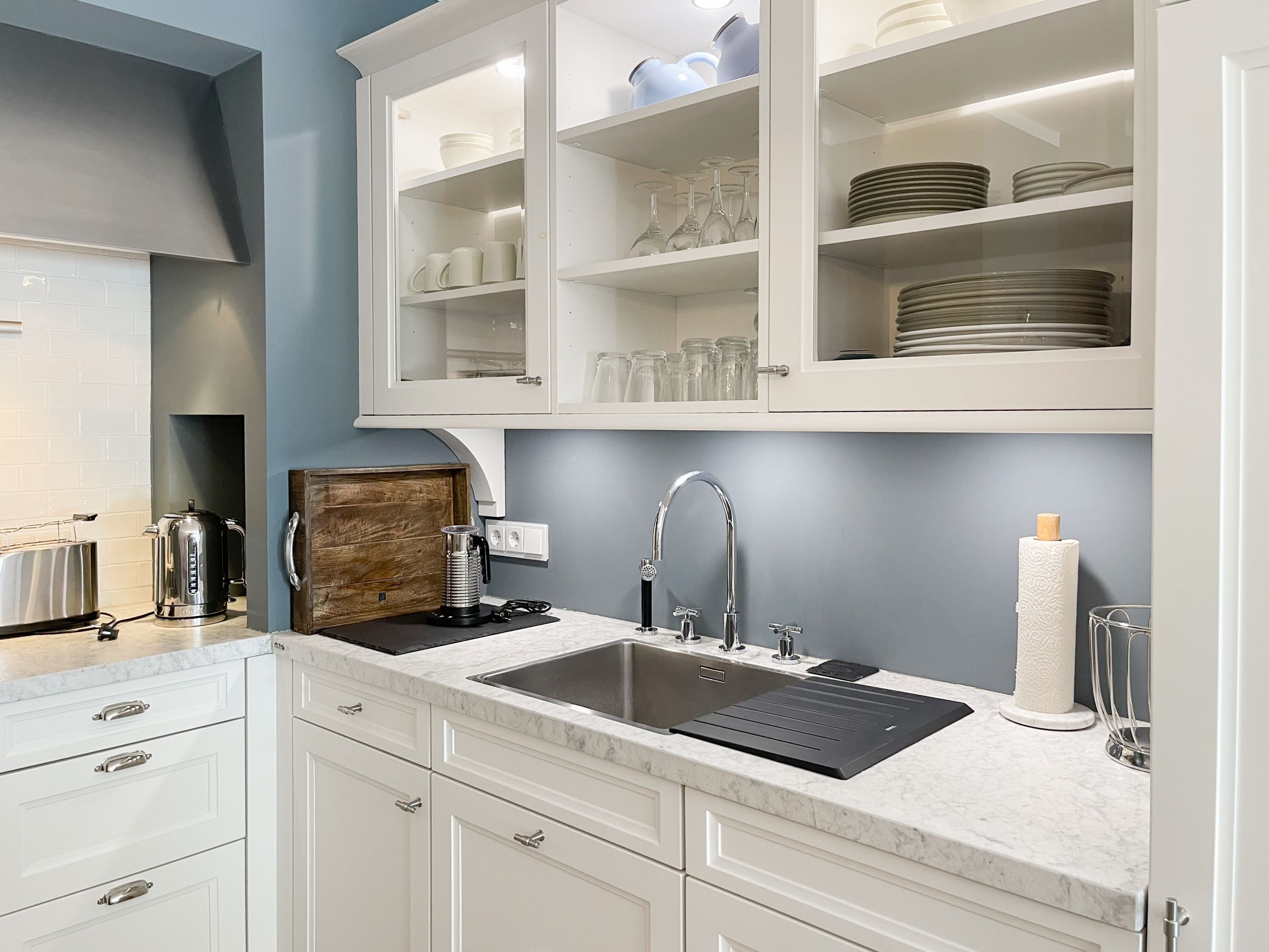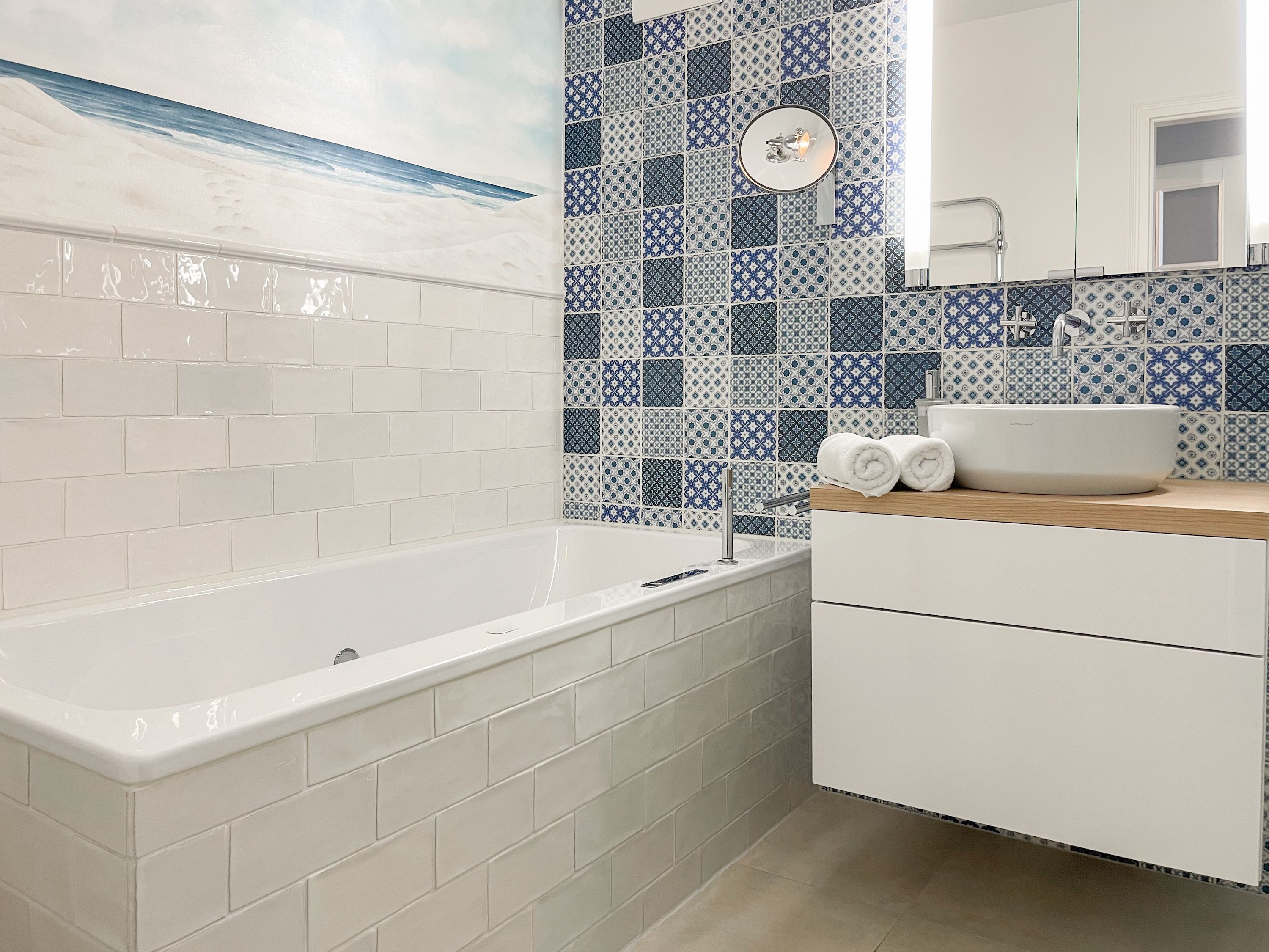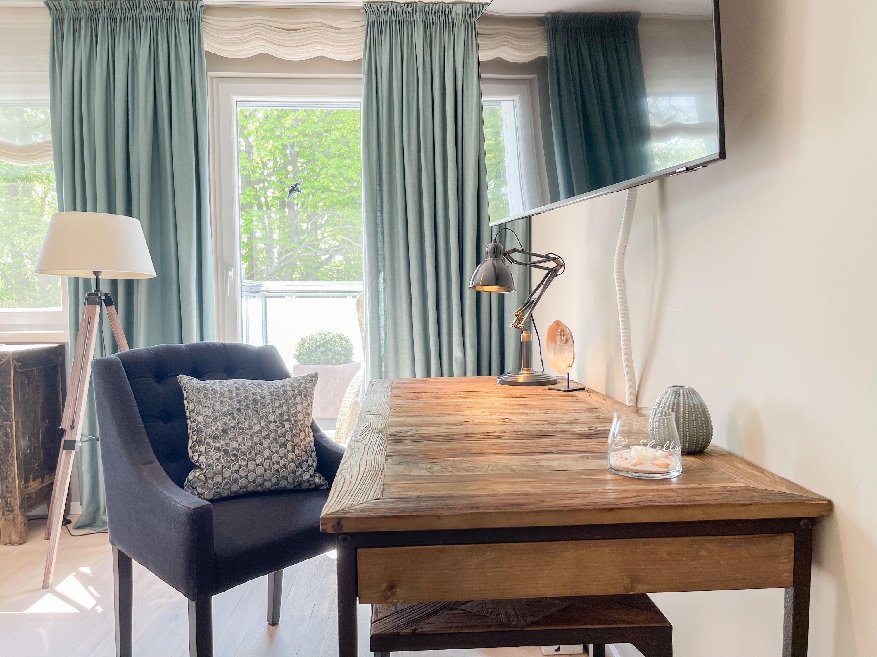 Das Penthouse „Maison Plage” bietet Ihnen zeitgemäßen Luxus im Hampton Style auf über 100 m² Wohnfläche und jeglichen Komfort, den Sie sich wünschen können. Dazu gehören Fußbodenheizung, elektrische Außenjalousien, Echtholzböden, Insektenschutz und Sauna. Mit zwei Schlafzimmern und zwei Bädern ist es perfekt für vier Personen geeignet, um einen entspannten Ostseeurlaub in Strandnähe zu verleben. Die äußerst geschmackvolle Einrichtung und hochwertige Ausstattung garantiert höchsten Wohnstandard in wunderschönem Ambiente. Es erwartet Sie ein gemütlicher Wohnbereich mit einem XL-Sofa; TV, Radio und WLAN sind selbstverständlich vorhanden. Die vorgelagerte Dachterrasse in Südausrichtung bietet Ihnen einen herrlichen Blick bis auf die Ostsee und lockt mit frischer Seeluft, Gartenmöbeln und Sonnenliege ins Freie. Hobbyköche können sich in der perfekt ausgestatteten, offenen High-End-Küche austoben. Der anschließende Essbereich bietet ausreichend Platz für gemeinsame Mahlzeiten und gemütliches Beisammensein. Die beiden Schlafzimmer sind großzügig bemessen und mit Boxspringbetten und Einbauschränken eingerichtet. In einem Schlafzimmer ist eine Infrarotsauna eingebaut, die bestens gegen Verspannungen und zur Entschlackung wirkt. Im Schlafzimmer 2 gibt es einen Schreibtisch für das Home Office und einen weiteren Fernseher. Die liebevoll gestalteten Duschbäder verfügen über Handtuchtrockner, Fußbodenheizung, Dusch-WCs und Fön. Eines der Bäder ist zusätzlich mit einer Badewanne ausgestattet. Im Flurbereich befindet sich ein separater Hauswirtschaftsraum, in dem auch Waschmaschine und Trockner untergebracht sind.