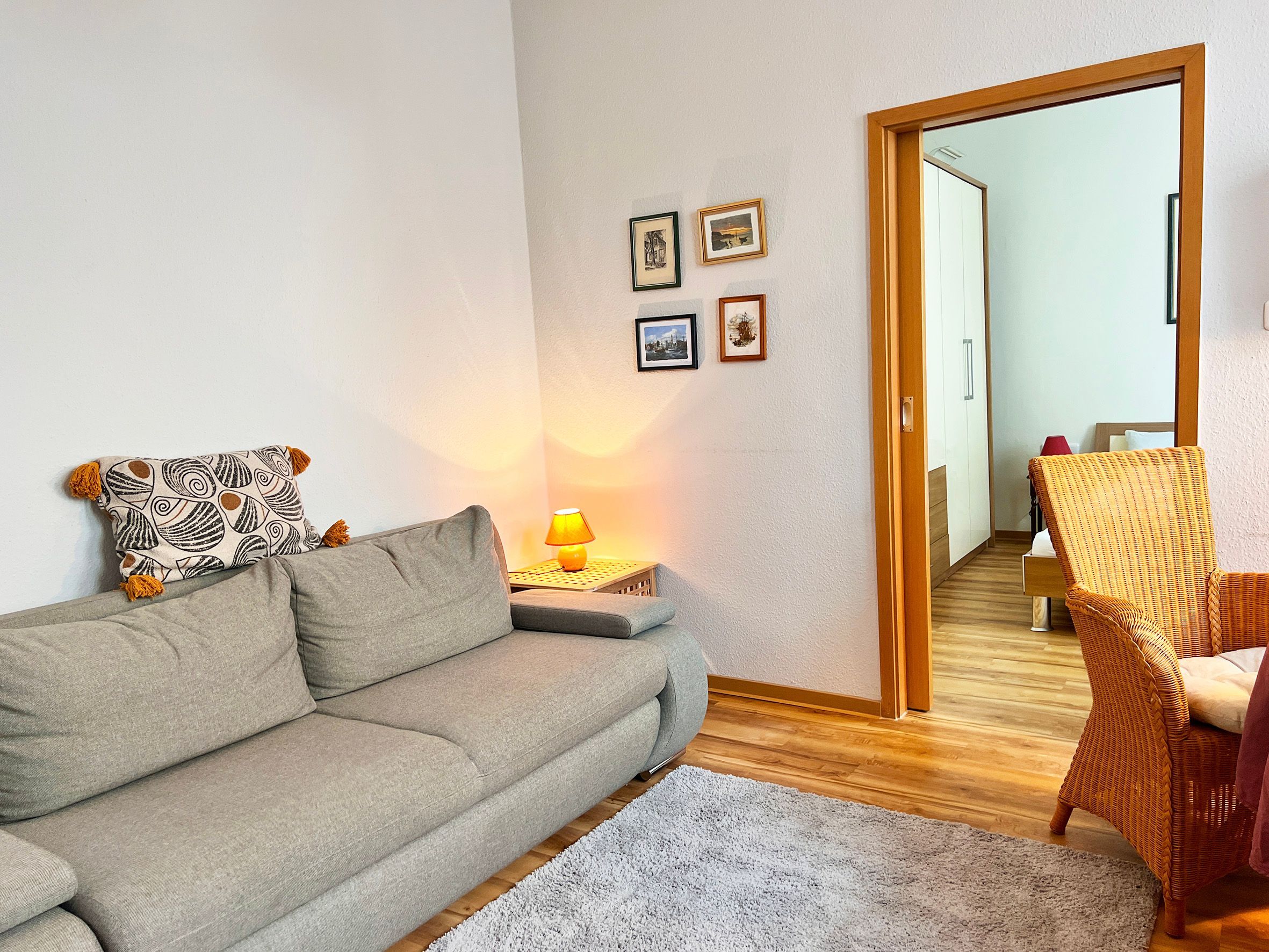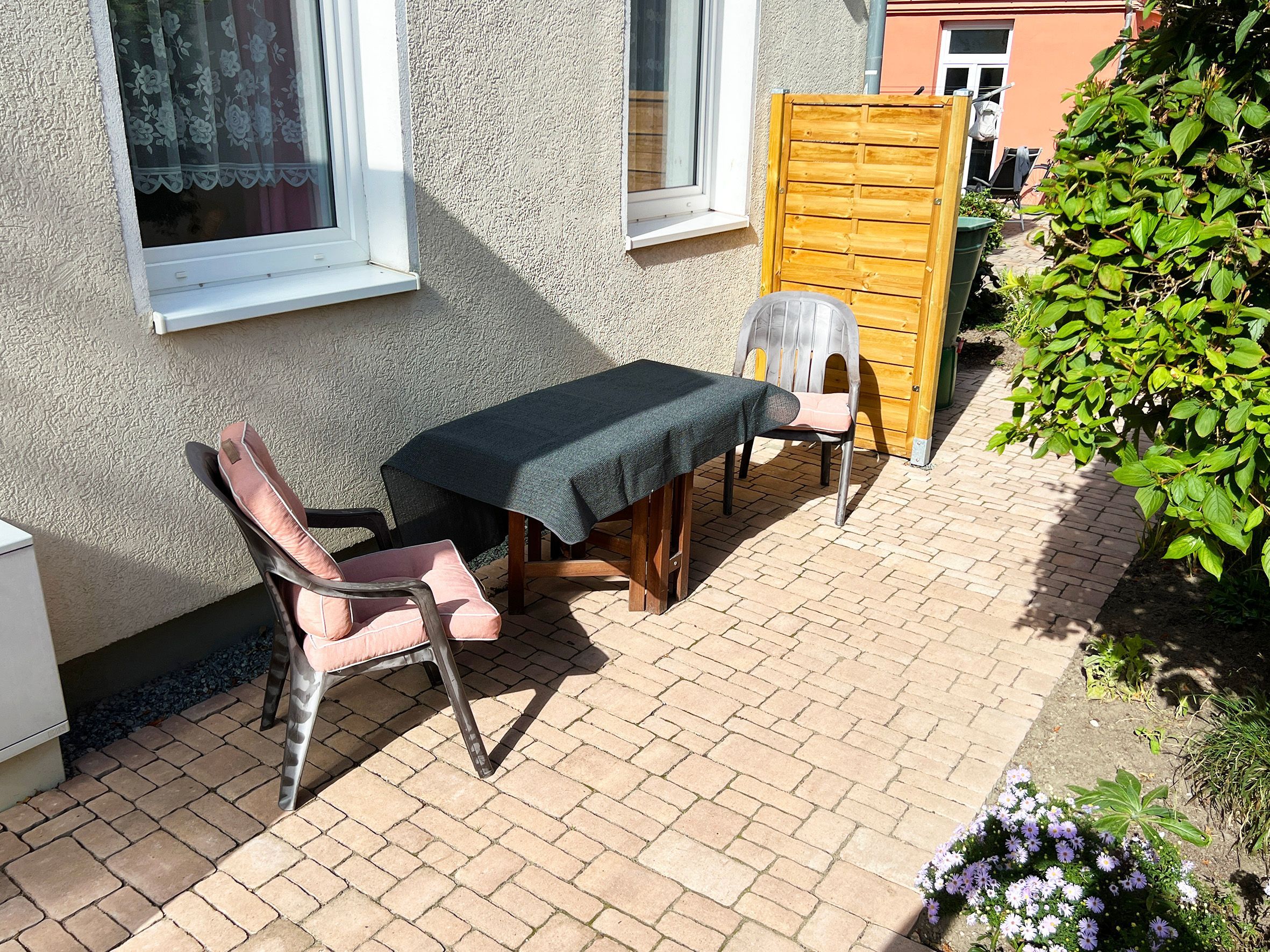 Gemütliche 2-Zimmer Ferienwohnung für 2 Personen im Erdgeschoss eines Hinterhauses, gelegen am ruhigen Teil des alten Stroms. Der Zugang erfolgt über einen Innenhof - ein herrlicher Rückzugsort für lauschige Sommerabende oder zum Frühstück an der frischen Ostseeluft. Die Ferienwohnung besteht aus einem Schlafzimmer mit Doppelbett, ein Wohn-/Esszimmer sowie Küche und DU/WC.