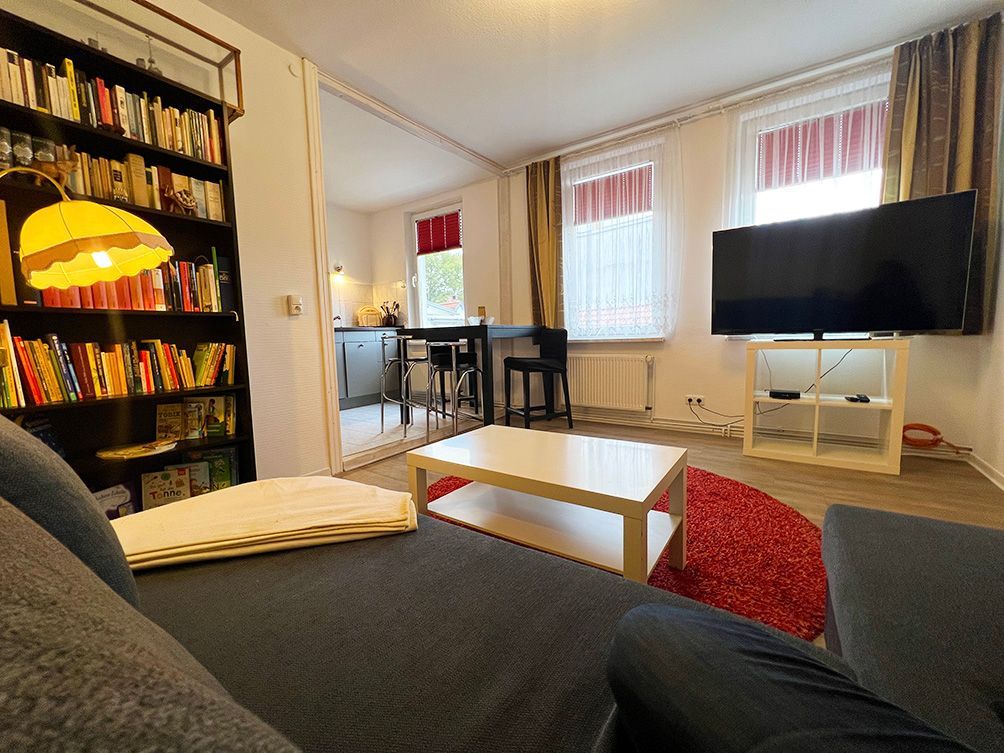 Gemütliche, helle 3-Zimmer Ferienwohnung im 1.OG eines Hinterhauses, gelegen am ruhigen Teil des alten Stroms. Der Zugang erfolgt über den Innenhof des Kapitänshauses sowie eine steile Treppe.