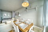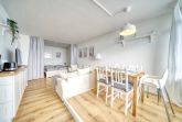 Offener Wohnbereich mit Couch, Flachbild-Smart-TV und Essbereich mit 4 Sitzplätzen