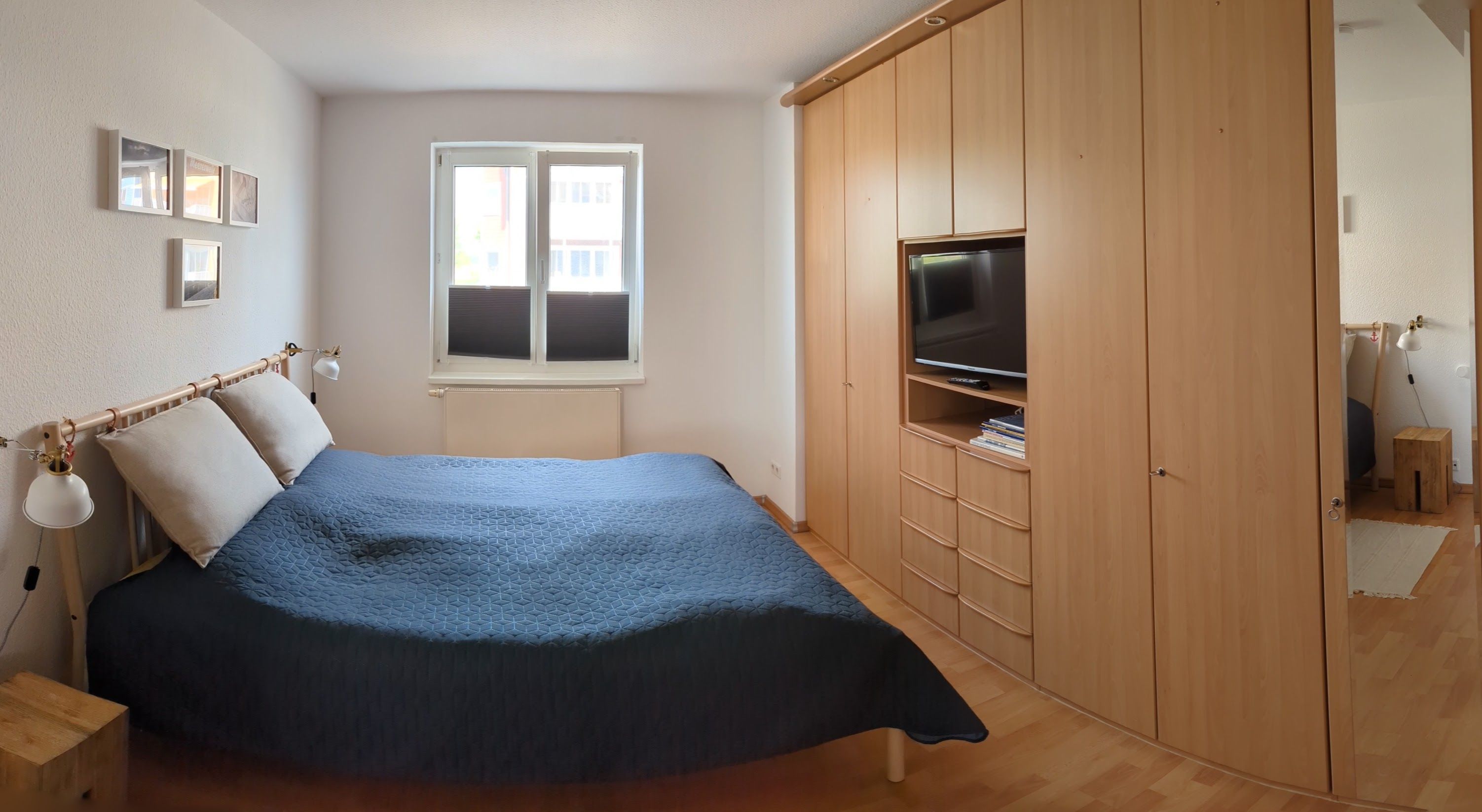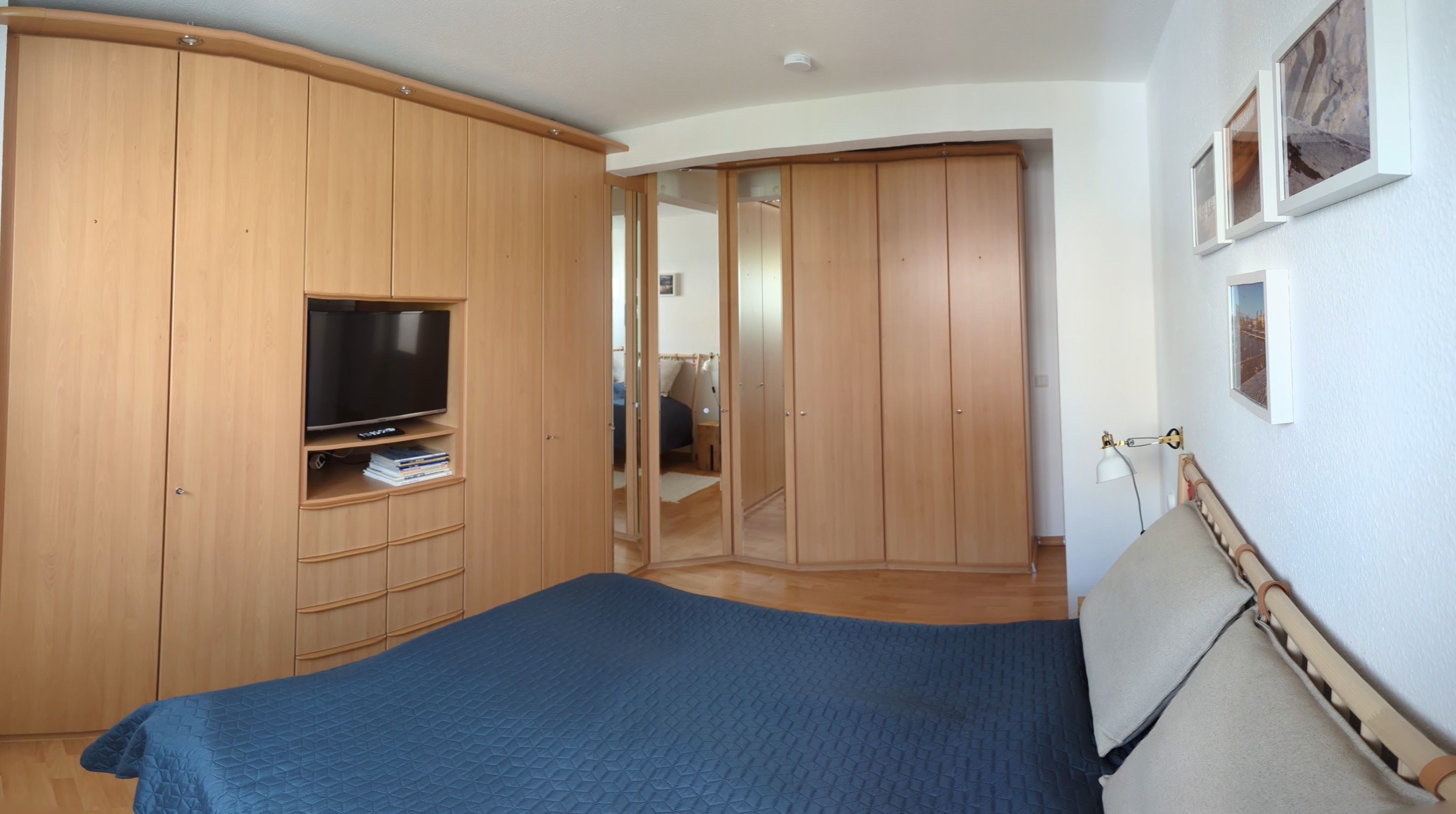 • im nordseitigen Schlafzimmer bettet man sich auf 1,60m x 2,00m, 7-Zonen Taschenfederkern, Härtegrad H2-H3. Fenster mit Mosquitonetz. Großer Einbauschrank mit Ankleidespiegel