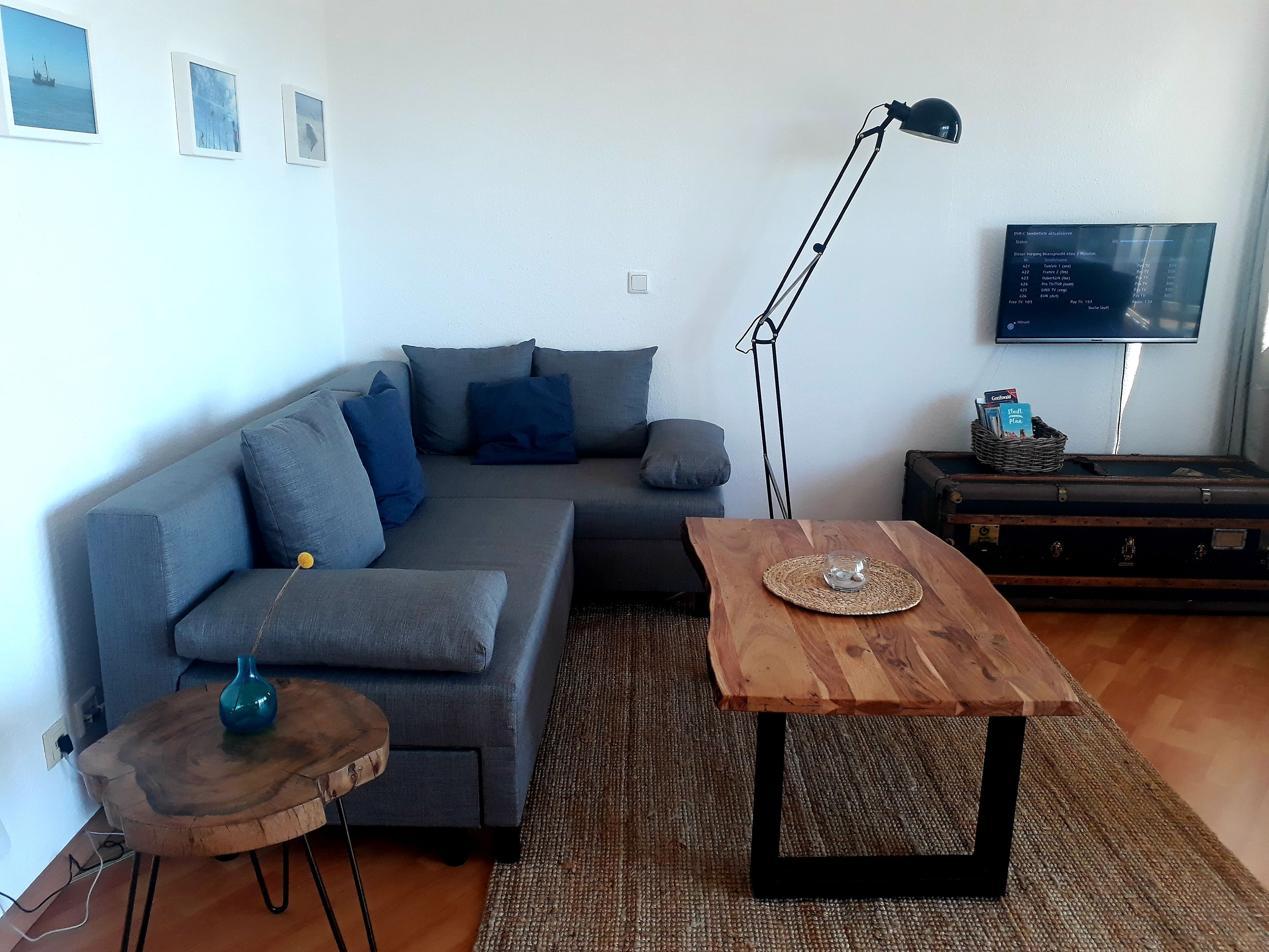 • im Wohnzimmer gibt es ein bequemes auf 1,35m x 2,00m ausklappbares Schlafsofa