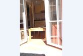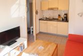 Weiterhin befindet sich im Wohnzimmer die gut ausgestattete, offene Küchenecke mit 2-Feld-Cerankochplatte, Spüle, Wasserkocher, Toaster, Kaffeemaschine.