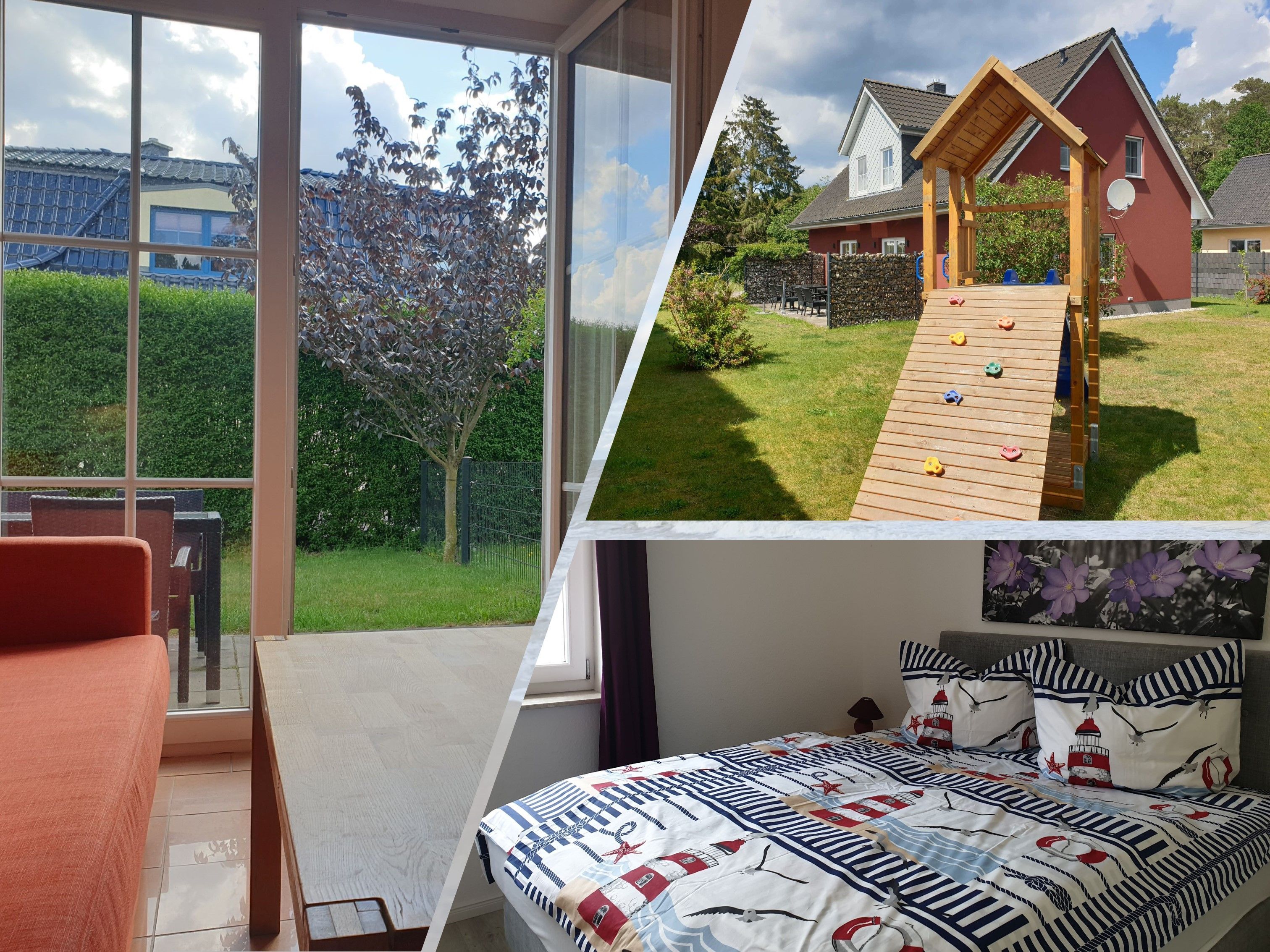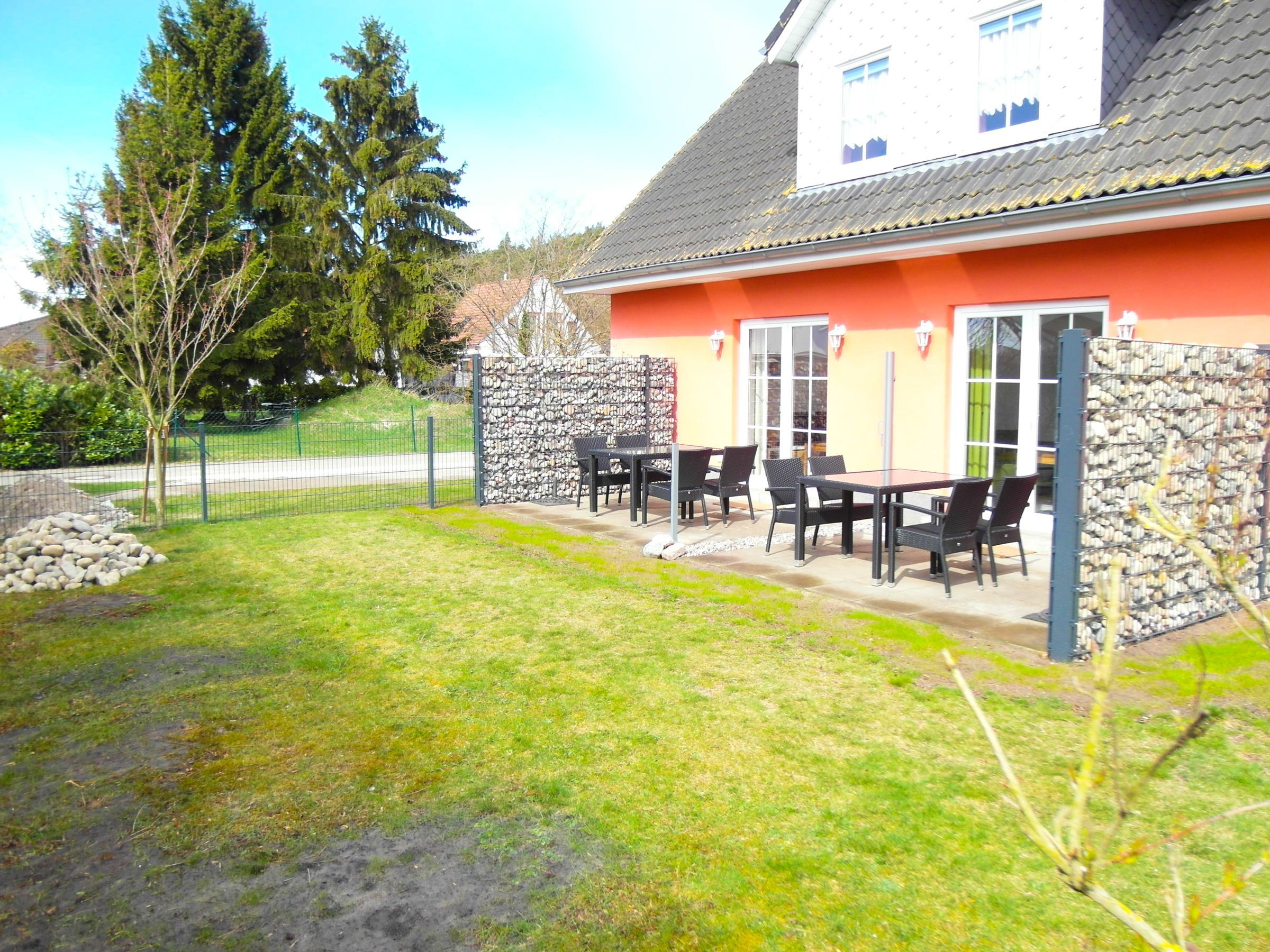 Jede Wohnung verfügt über einen Küchenbereich, ferner ein Bad, die Wohnung im OG sogar über 2 Bäder. Die Schlafzimmer verfügen je über ein Doppelbett. Für Ihre Kleinen halten wir 2 Kinderbetten wie auch 2 Hochstühle vor. Das Haus befindet sich auf einem separaten Grundstück. Auf der Wiese finden Sie ausreichend Platz für Sport und Spiel. Auch einen kleinen Spielplatz für Ihre Kleinen gibt es hier.