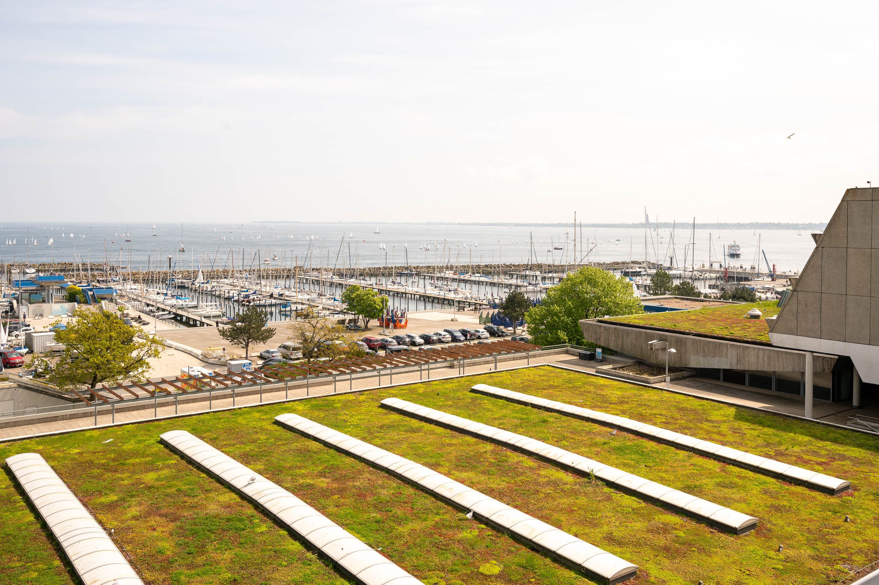 Von der Erhöhung können Sie vom 6qm² großen Balkon, welcher mit einer Gartenbank und einem Balkontisch ausgestattet ist, den gesamten Hafen überblicken und den ganzen Tag die Schiffe auf der Ostsee beobachten.