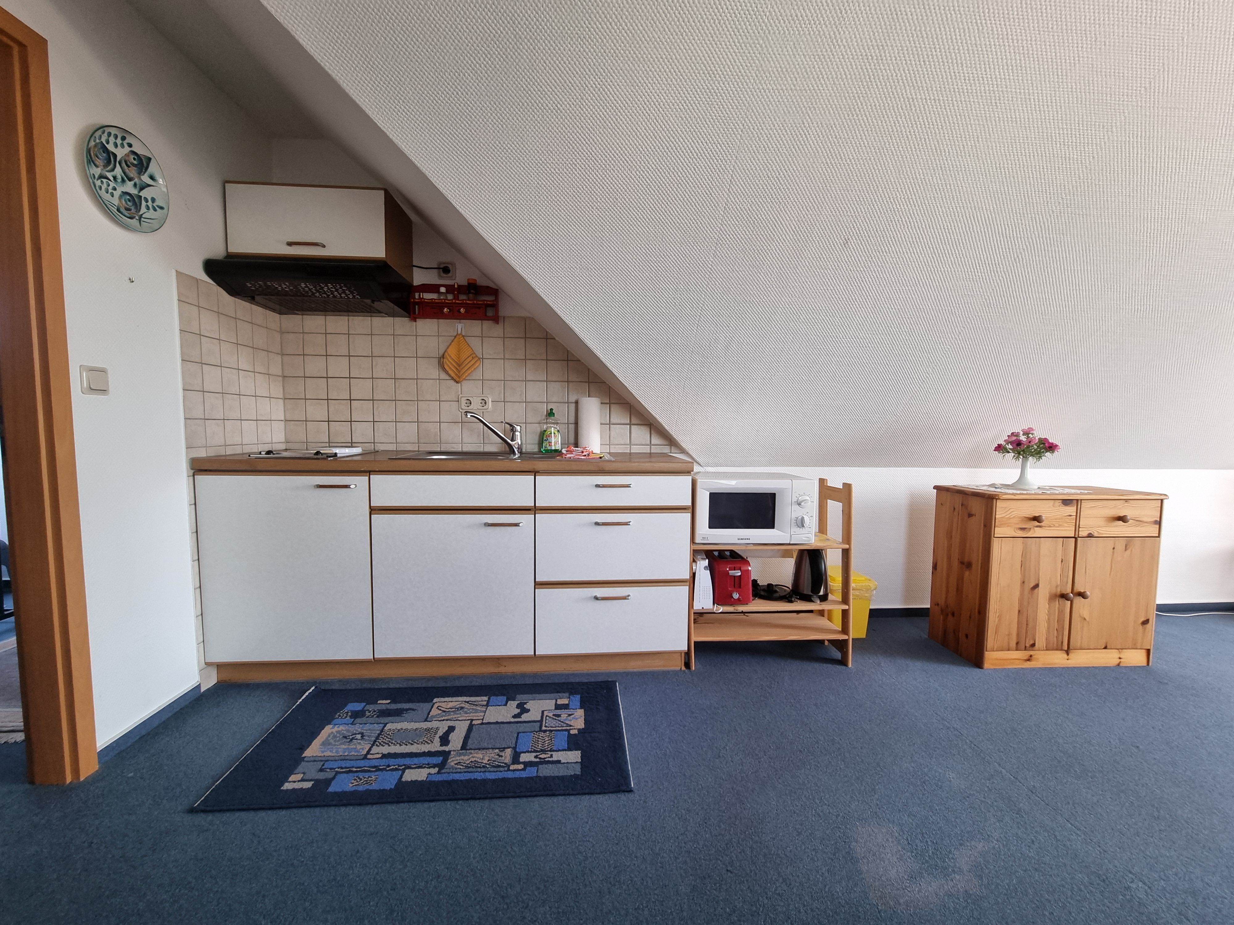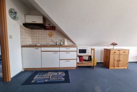 Die Wohnungen sind optimal für Single, Paare oder Reisepartner geeignet. Die Studio-Apartments liegen im Obergeschoß des Ferienhauses. Sie bestehen aus einem großen kombinierten Wohn-/Schlafzimmer, kompl. ausgestatteter Küche und Tageslichtbad.