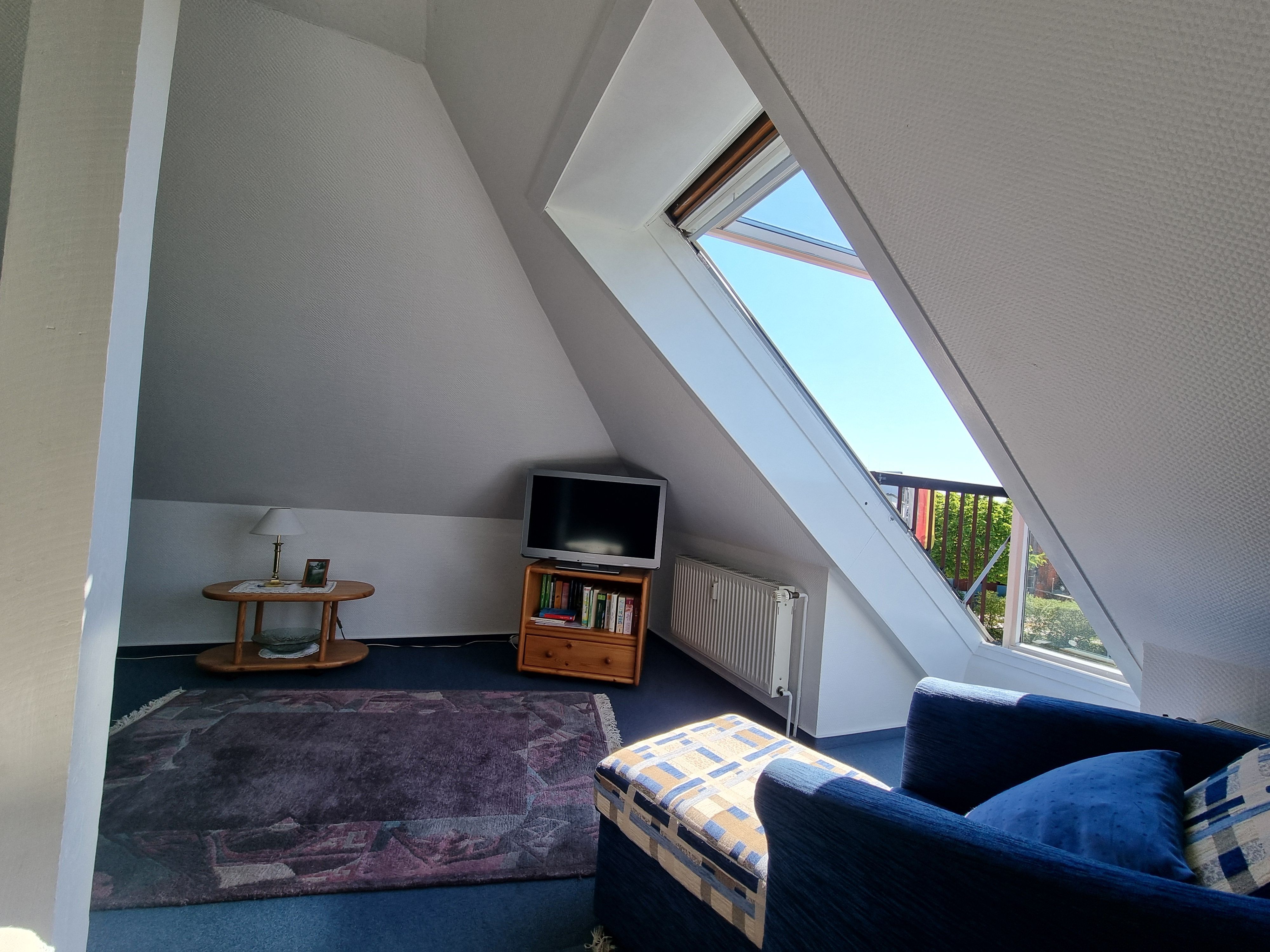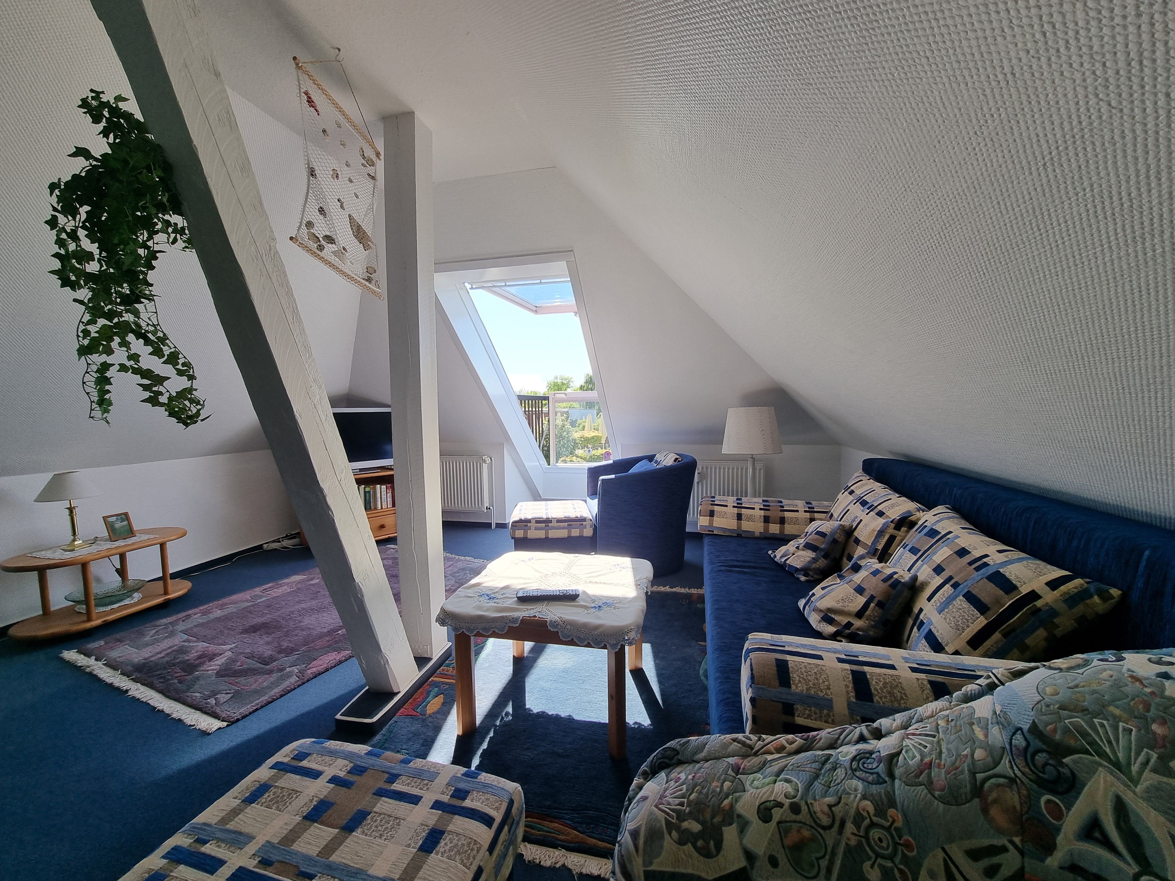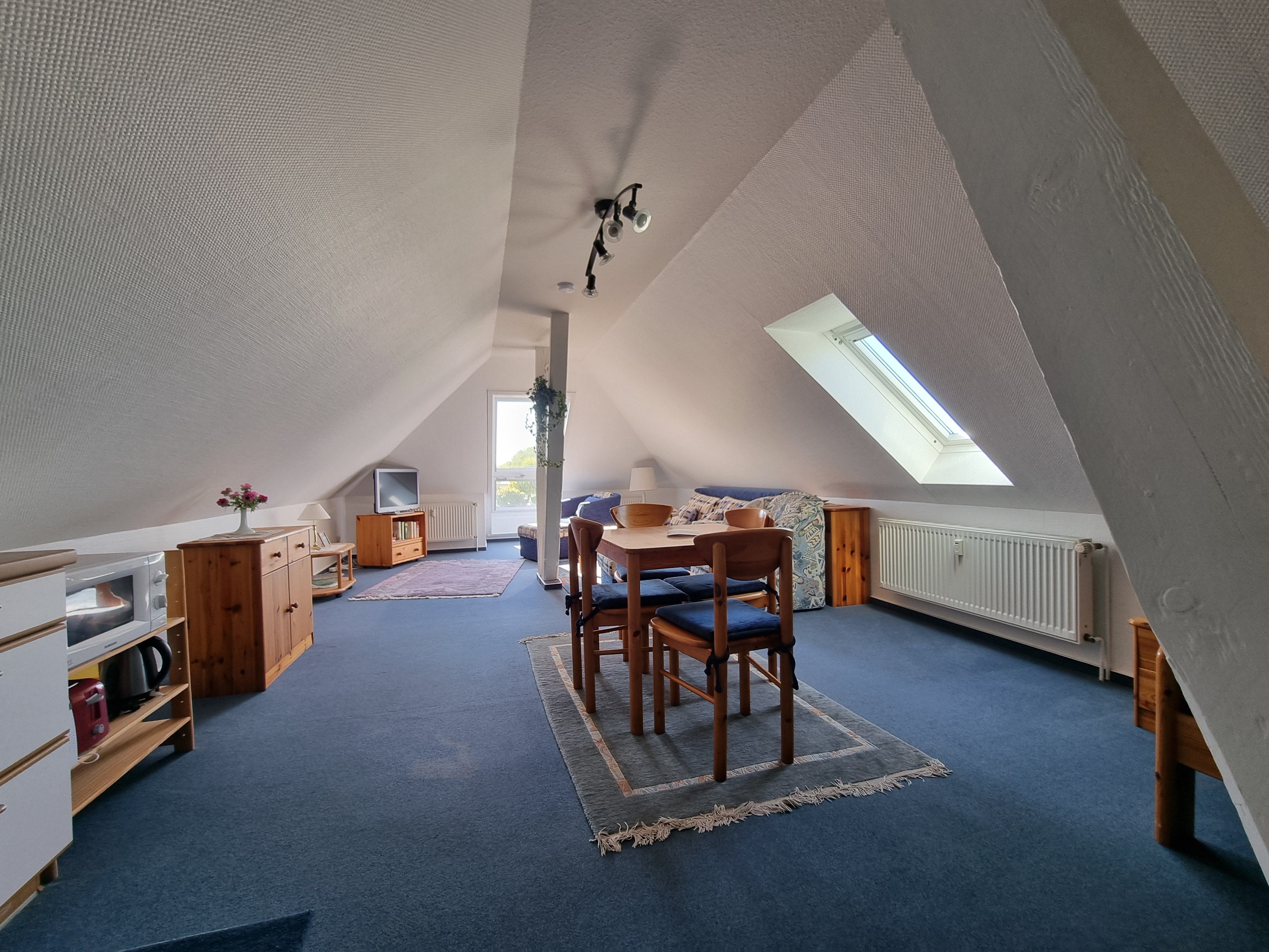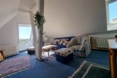 • Wohnzimmer mit schöner Ausstattung und viel Platz im Spitzbogen