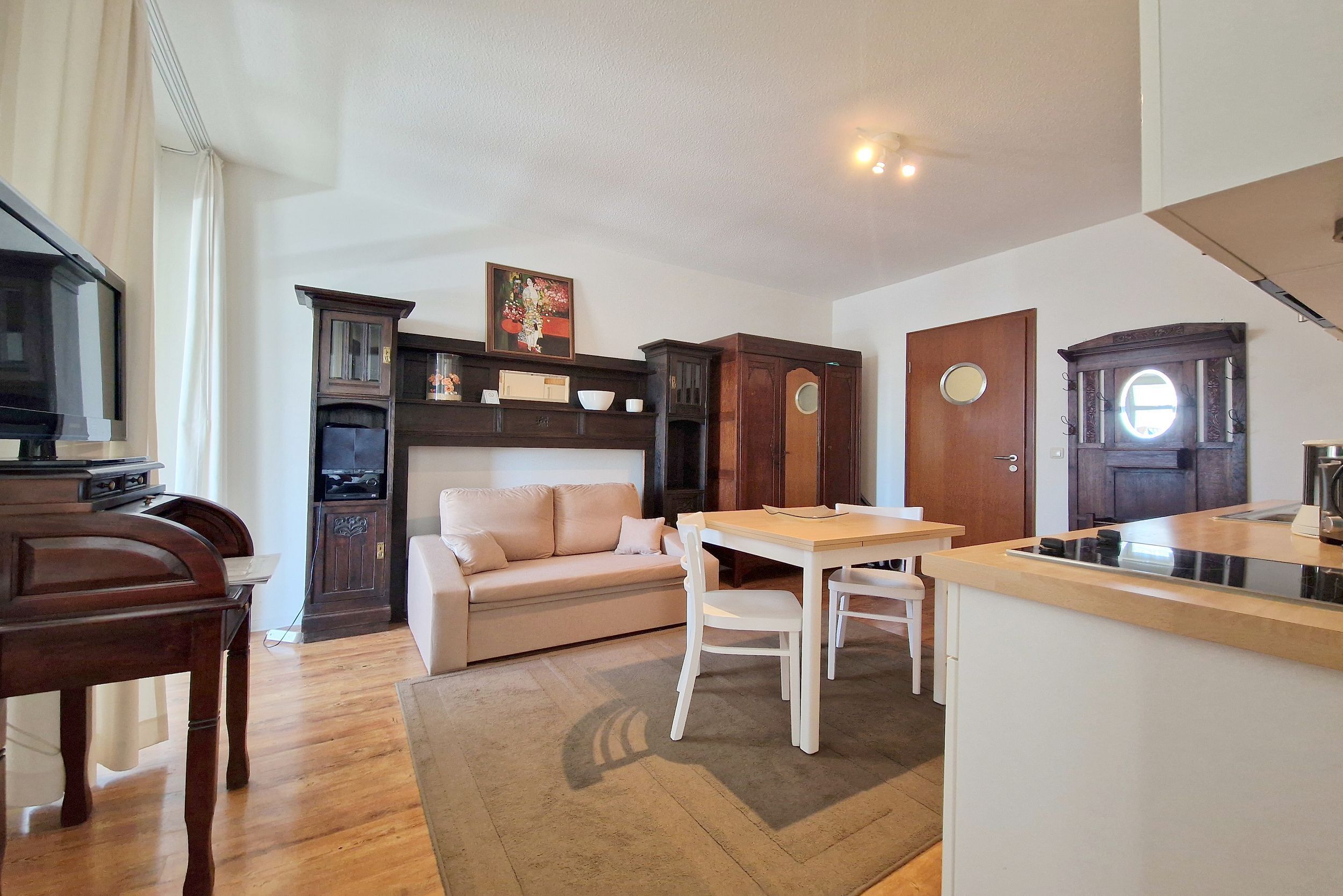 Die Ferienwohnung Nr. 19 liegt im 3. Obergeschoss (über Fahrstuhl erreichbar). Sie ist ca. 35qm groß und bietet Platz für 2 Erwachsene und ein Kind bis 2 Jahre.