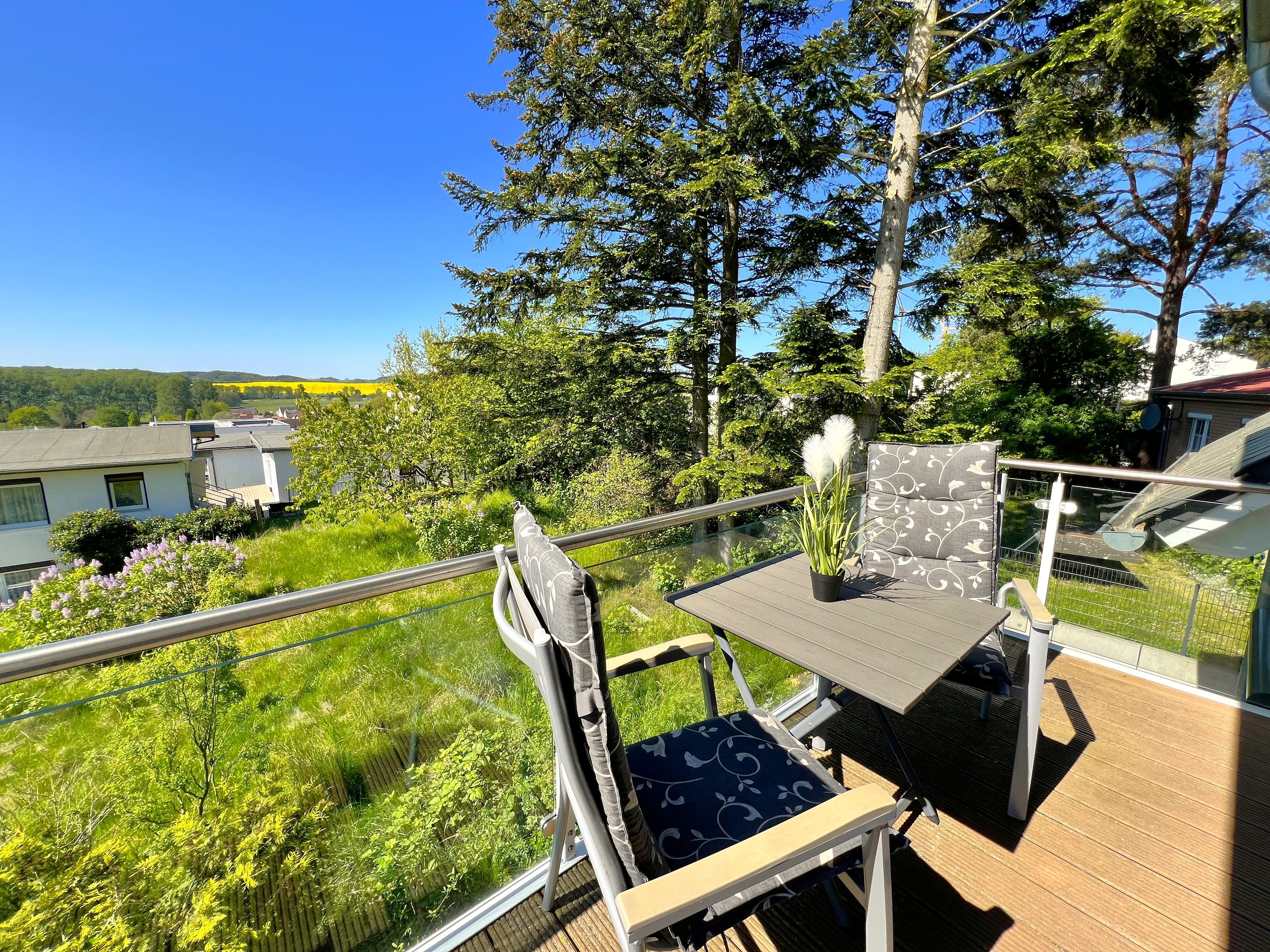 Der Balkon lädt zum Entspannen ein und bietet einen herrlichen Blick ins Grüne. Die Lage auf dem Klünderberg, in der Nähe des Kleinbahnhofs, verspricht Ruhe und Erholung.