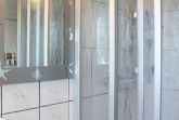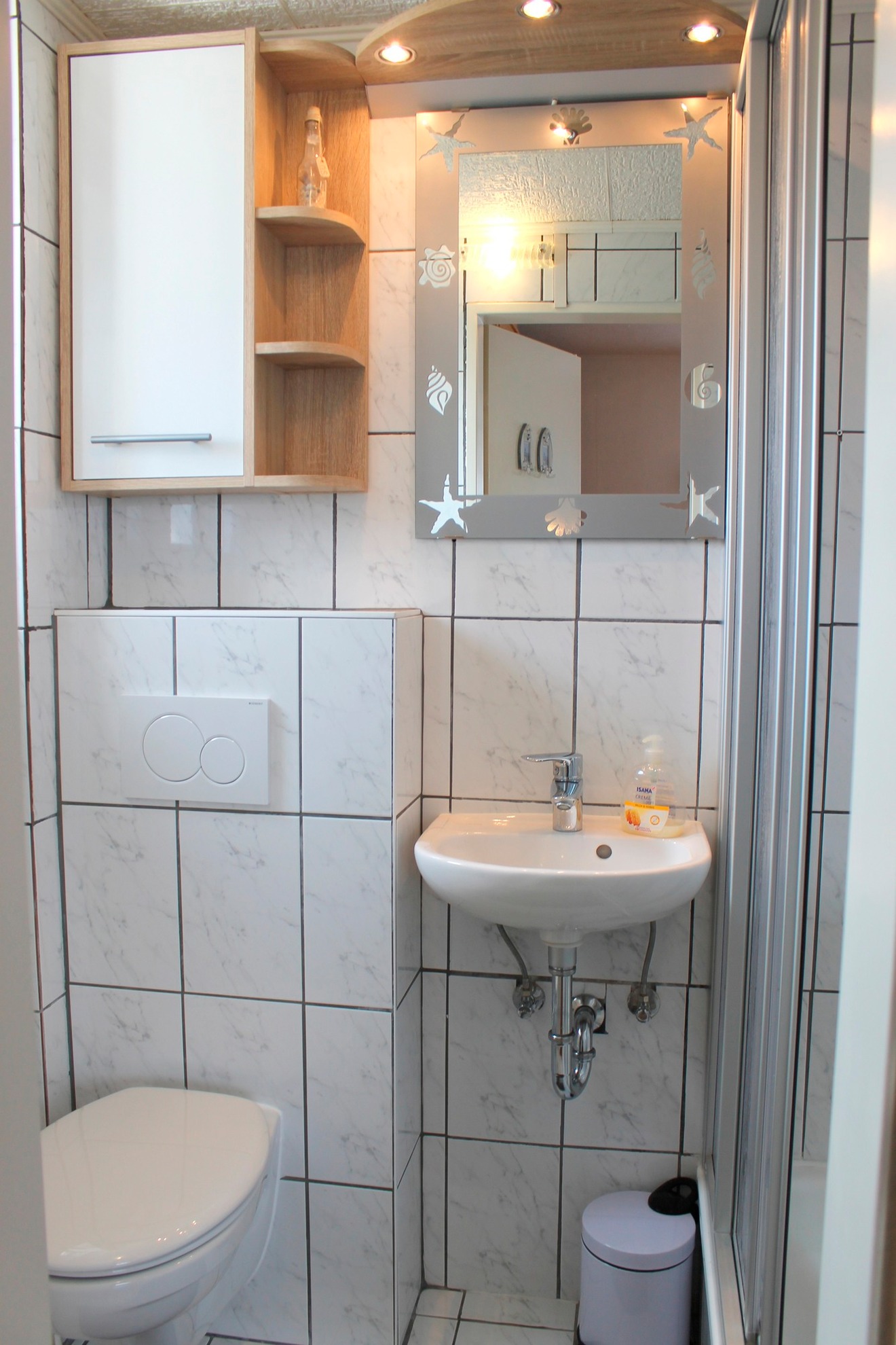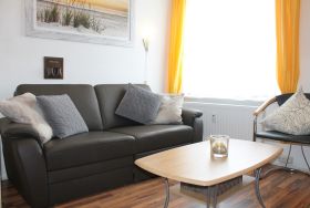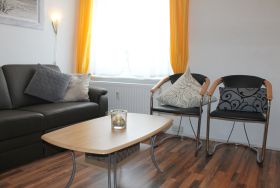 Die Wohnfläche der Ferienunterkunft beträgt ca. 35 m² und verteilt sich auf ein Wohnzimmer, eine separate Küche sowie das Schlafzimmer und das Badezimmer. Das Wohnzimmer ist mit einer Couch, Flachbild-Sat-TV und Radio ausgestattet. Die Couch dient auch als Schlafgelegenheit (1,5 x 2,00 m) für eine weitere Person. Neben dem kleinen Tageslicht-Badezimmer mit Dusche/ WC gibt es eine Küche mit einer Essecke - diese ist u.a. mit Gefriermöglichkeit, Geschirrspüler, Mikrowelle, elektrischem Tischgrill und Wasserkocher eingerichtet. Das separate Schlafzimmer verfügt über ein Doppelbett (1,60 x 2,00 m) und Sat-TV. Ebenso ist ein Uhrenradio vorhanden.