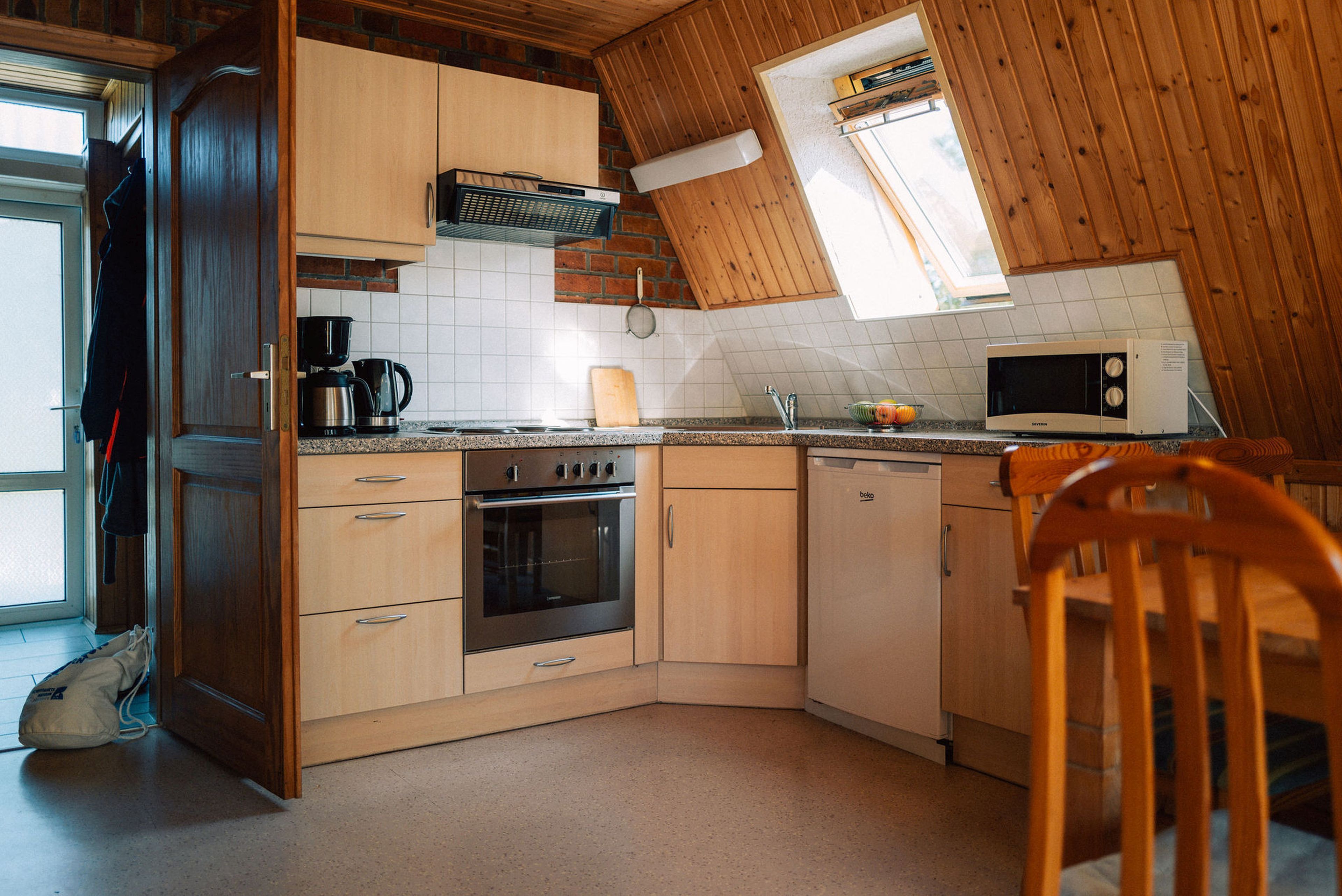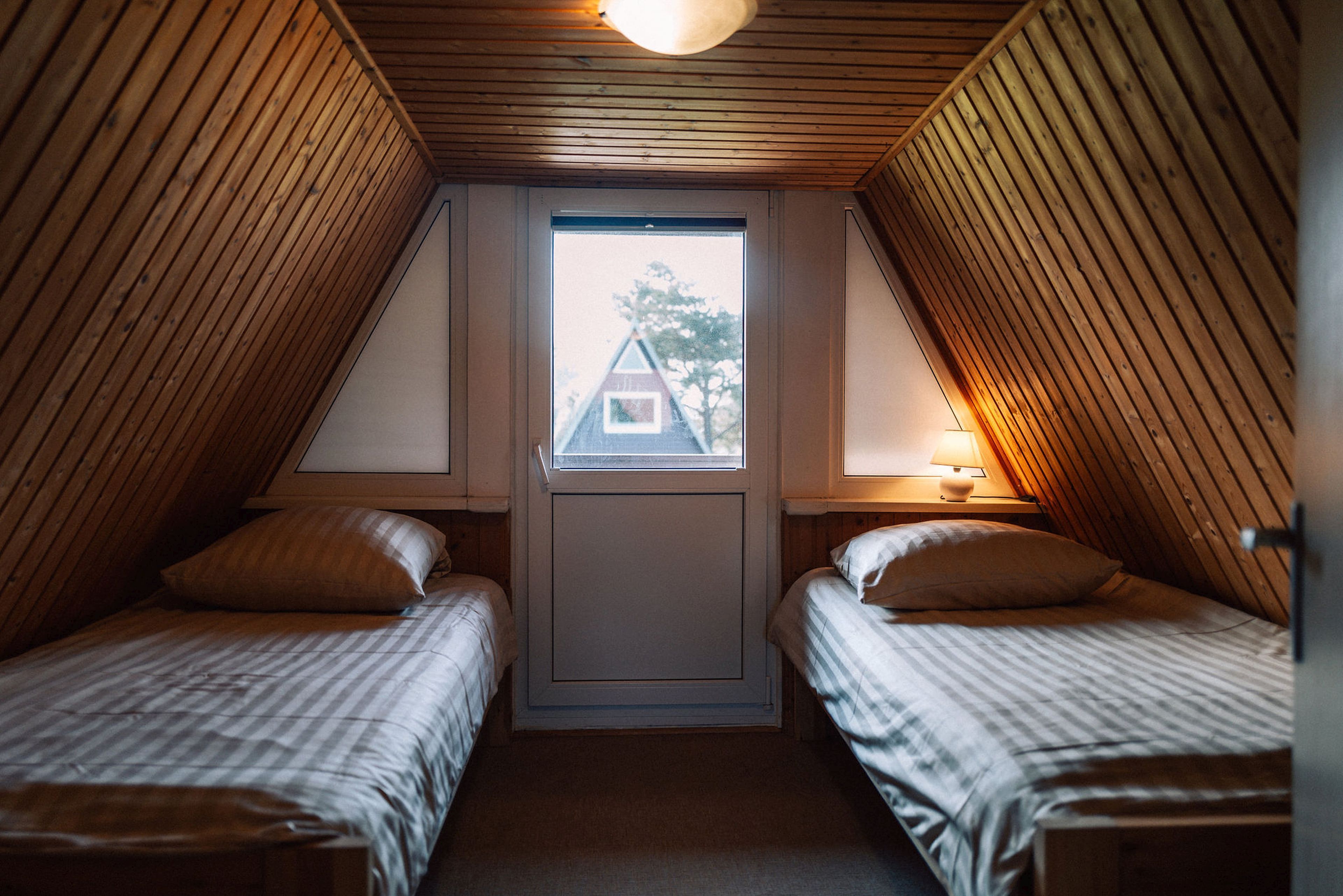 Eine steile Raumspartreppe führt zu den zwei Schlafräumen - ein Schlafzimmer mit Doppelbett, ein Schlafzimmer mit zwei Einzelbetten. Die Bettwäsche ist inklusive. Handtücher bitte mitbringen!