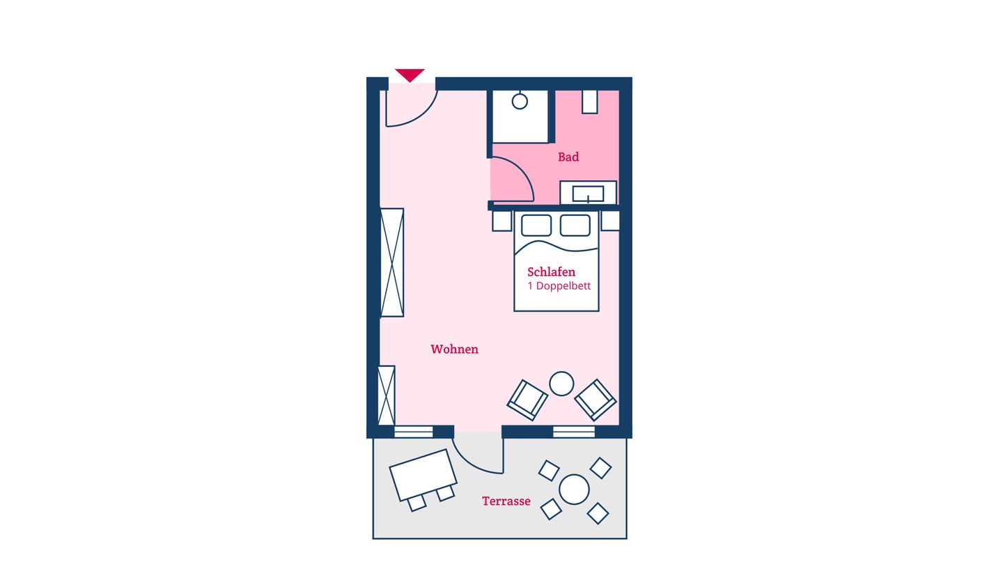 Das Appartement 1 ist in ein Wohn-Schlafzimmer und ein Duschbad unterteilt und bietet somit komfortabel Platz für bis zu 2 Personen zuzüglich einer Kleinkinderaufbettung. Zudem steht Ihnen eine eigene Terrasse zur Verfügung.