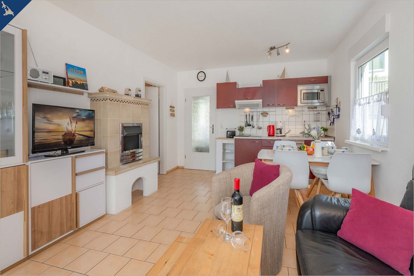 Diese liebevoll eingerichtete Ferienwohnung auf Usedom bietet mit rund 50 m² Platz für bis zu 4 Personen und überzeugt durch eine ruhige, naturnahe Lage – nur wenige Schritte vom Strand (250 m) entfernt. Umgeben von grüner Landschaft und einem gepflegten Garten, ist das Urlaubsdomizil ideal für Familien, Paare oder kleine Gruppen. Die moderne Ferienwohnung liegt im Erdgeschoss und verfügt über eine gemütliche, überdachte Terrasse mit Gartenmöbeln und Windschutz – perfekt für sonnige Frühstücke oder entspannte Abende im Freien. Ein Strandkorb am nahegelegenen Strand rundet das Urlaubsgefühl ab.