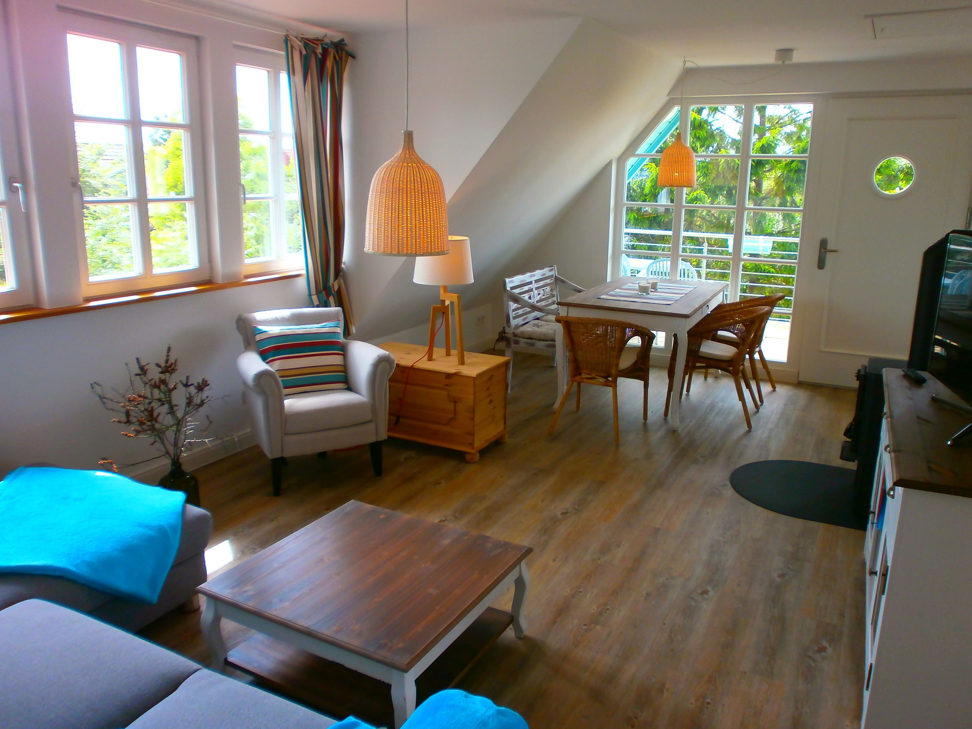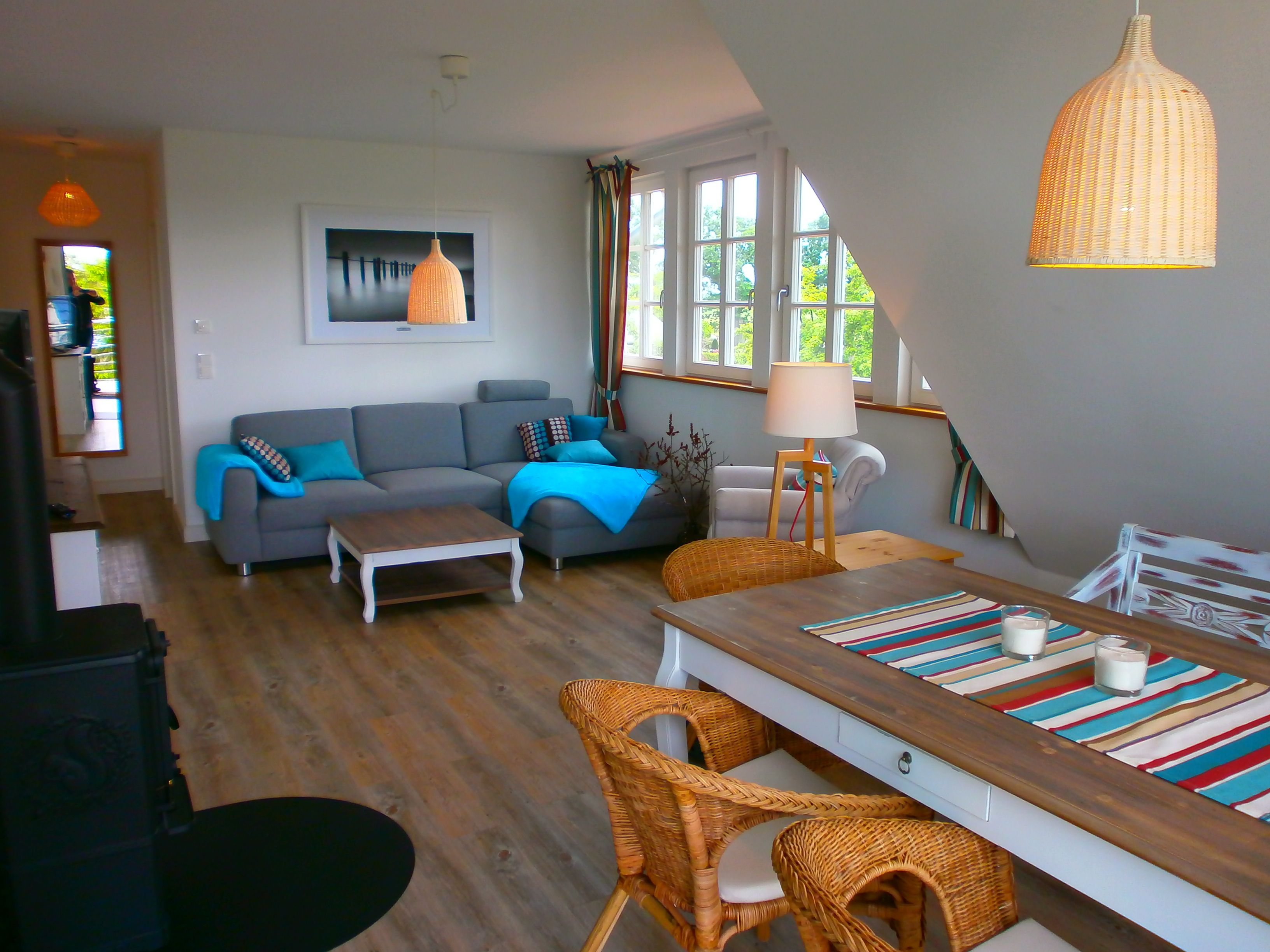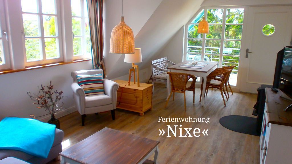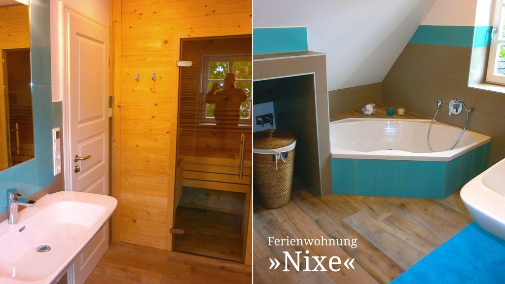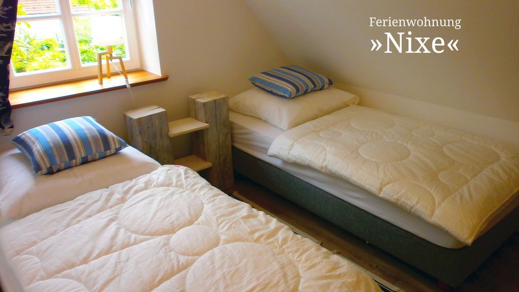 Unsere Ferienwohnung NIXE befindet sich im Dachgeschoss und ist über die Außentreppe erreichbar. Wir haben unsere NIXE großzügig und individuell eingerichtet. Sie finden einen gemütlichen Wohn- und Essbereich, eine voll ausgestattete Küche, zwei Schlafzimmer und ein großes Bad mit Wanne, Dusche und Sauna. Ein wunderschön gestaltetes Wohnzimmer mit Schlafcouch, Essecke, Kamin und Flachbild-Sat-TV lädt zum Verweilen ein. Die gesamte Wohnung ist mit WLAN ausgestattet. Die moderne Küche ist mit Spülmaschine, Cerankochfeld, Backofen, Mikrowelle, Kaffee- und Küchenmaschinen ausgestattet und lässt keine Wünsche offen. Unsere Unterkunft ist für Monteure nicht geeignet. Handtücher und Bettwäsche bitten wir mitzubringen. Für Haustiere berechnen wir pro Nacht EUR 20,00.