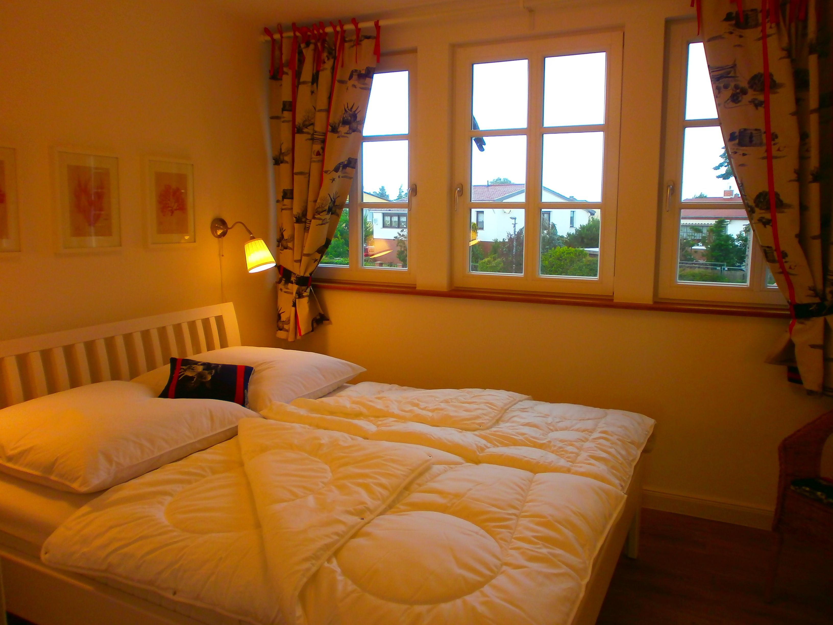 Die moderne Küche ist mit Spülmaschine, Cerankochfeld, Backofen, Mikrowelle, Kaffee- und Küchenmaschinen ausgestattet und lässt keine Wünsche offen. Bei einem Blick in die Natur macht die Küchenarbeit gleich doppelt so viel Spaß. In der Ferienwohnung finden Sie zwei Schlafzimmer. Das Elternschlafzimmer ist mit einem großen Doppelbett im Landhausstil (1,60 x 2,00 Meter), einem geräumigen Schrank und Sideboard ausgestattet. Zusätzlich kann ein Zustellbett für ein Kind im Schlafzimmer aufgestellt werden. Das kleinere Schlafzimmer ist ausgestattet mit zwei einzeln stehenden Boxspringbetten (0,90 x 2,00 Meter), die zum Zusammenstellen geeignet sind. Ferner befindet sich ein geräumiger Kleiderschrank im Zimmer. Einen Ganzkörperspiegel finden Sie im Flur. Im geräumigen Badezimmer finden Sie eine großzügige Dusche, eine Eckbadewanne, einen Waschtisch sowie eine Toilette. Die Sauna lädt zur Entspannung ein. Beim Einschalten des Lichts ertönt automatisch das integrierte Radio. Die Ferienwohnung steht am Tag der Anreise ab 16:00 Uhr zur Verfügung. Um diese für die nachfolgenden Gäste vorbereiten zu können, bitten wir Sie, die Wohnung am Abreisetag bis 10:00 Uhr zu räumen. Die Ferienwohnung verfügt über einen PKW-Stellplatz. Dort ist es möglich Ihr E-Auto aufzuladen. Es sind Ladesäulen für ein TESLA-Fahrzeug sowie für ein anderes Elektroauto vorhanden.