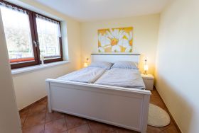 Die gemütliche Erdgeschosswohnung im Bootshaus Freest ist ideal für bis zu 4 Personen und ein Kleinkind bis 2 Jahre. Hunde sind bei uns herzlich willkommen, sodass die ganze Familie den Urlaub genießen kann! Diese Ferienwohnung verfügt über zwei komfortable Schlafzimmer, eines mit einem gemütlichen Doppelbett (180x200) und das andere mit zwei Einzelbetten (90x200). Das Wohnzimmer lädt mit einem bequemen Sofa und einem TV zum Entspannen ein. Die offene Küche ist voll ausgestattet und bietet alles, was du für die Zubereitung köstlicher Mahlzeiten benötigst. Hier stehen dir ein Herd, Backofen, Mikrowelle, Geschirrspüler und Utensilien des täglichen Bedarfs zur Verfügung. Das Bad ist mit einer Dusche ausgestattet und sorgt für erfrischende Momente nach einem erlebnisreichen Tag. An sonnigen Tagen kannst du die Terrasse mit eigenem Grill nutzen und den Tag bei einem gemütlichen Grillabend ausklingen lassen. Genieße die ruhige und naturnahe Umgebung und entdecke die zahlreichen Freizeitmöglichkeiten, die die Region zu bieten hat.