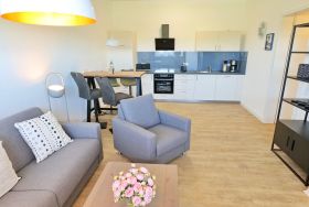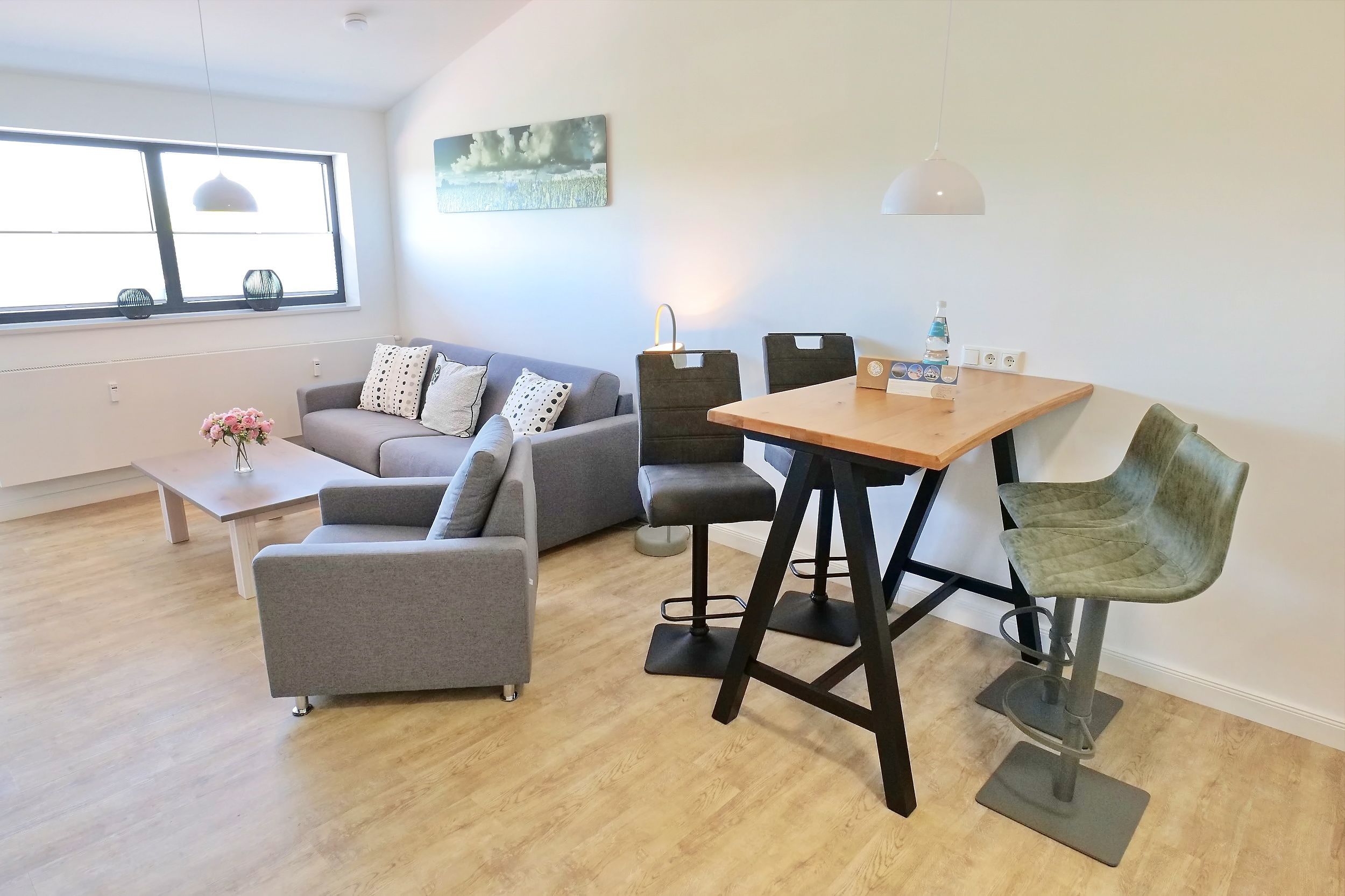 Das 3-Zimmer Domizil Abendsonne 30, verwöhnt mit einer saisonal möblierten Dachterrasse, von der Ihr Blick über den Golfplatz und weiter in Richtung Ostsee schweift. Die stilvoll eingerichtete Ferienwohnung besitzt eine geräumige Wohnfläche von 65qm und kann mit bis zu 4 Personen bewohnt werden. Die hochwertig eingerichtete Wohneinheit begrüßt die Urlaubsgäste mit einem offenen Wohn-/Essbereich.