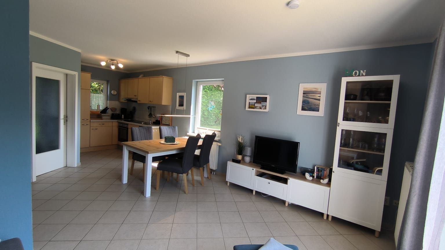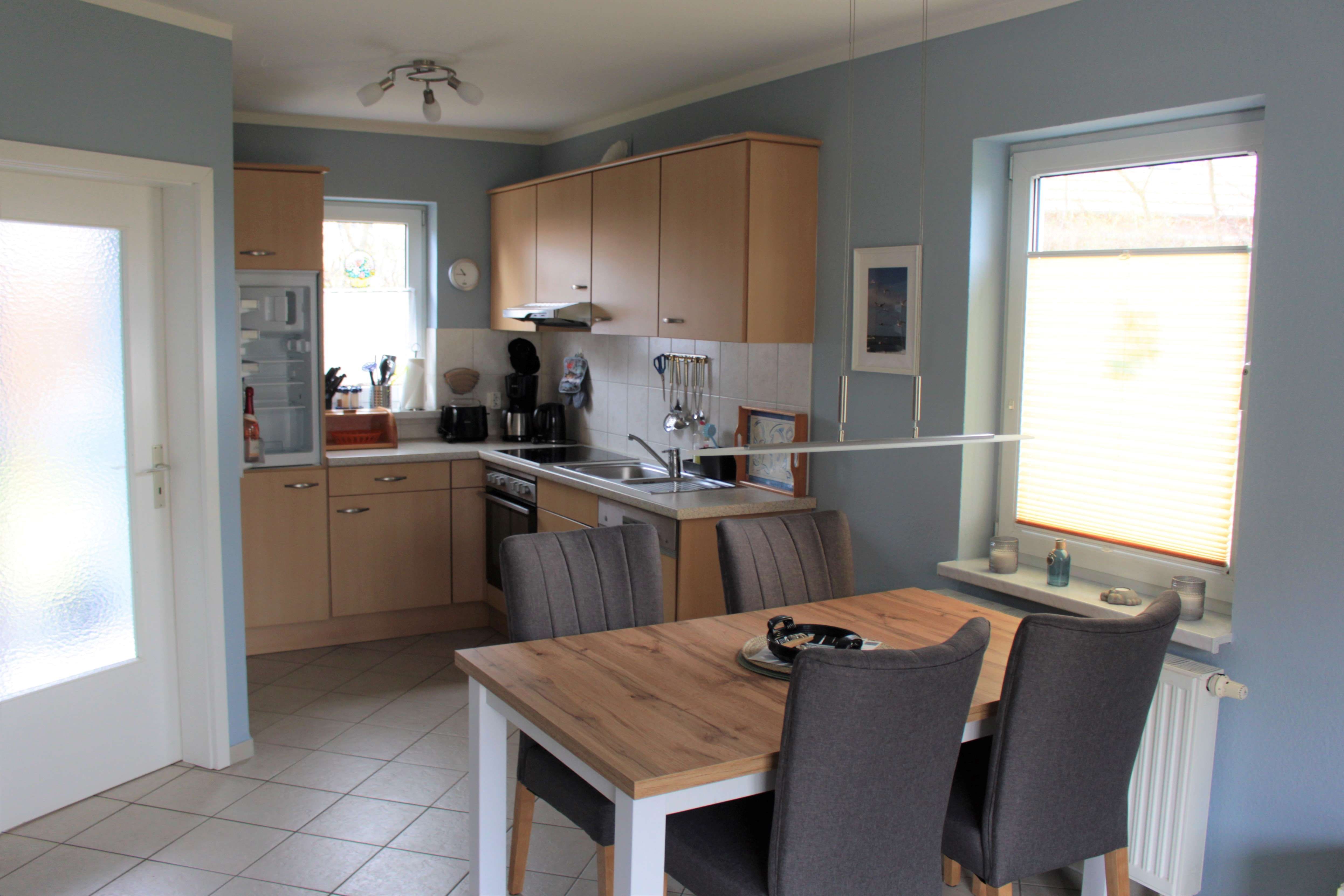 Im Erdgeschoss gibt es einen schönen Wohnbereich mit einer voll ausgestatten offenen Küche, sowei ein Gäste-WC.