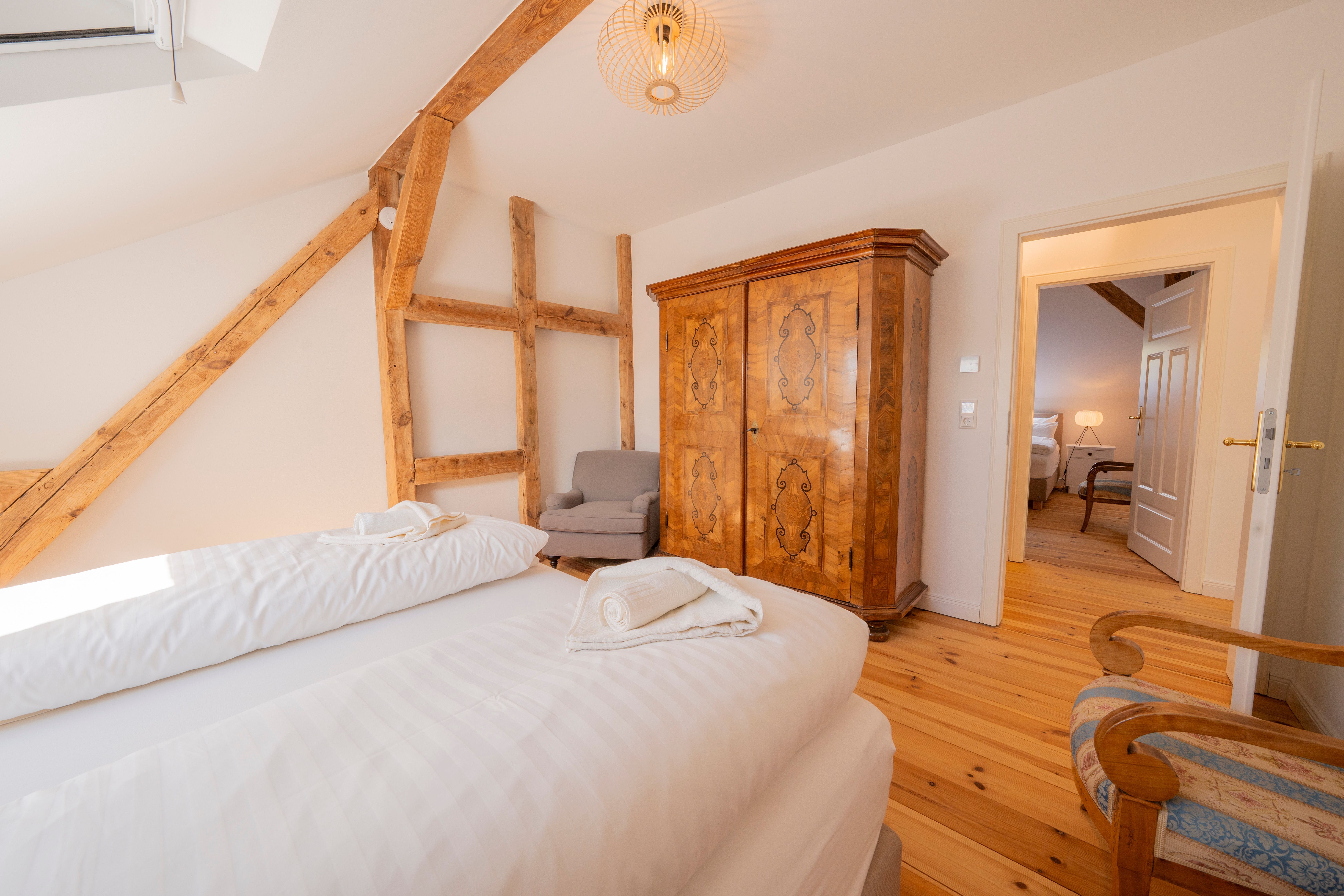 Bei Bedarf können Sie zusätzlich die 140 m² große Ferienwohnung im Erdgeschoss für bis zu 6 Personen dazu buchen. Dies macht den Gutshof zu einer idealen Unterkunft für größere Gruppen oder Familienfeiern.